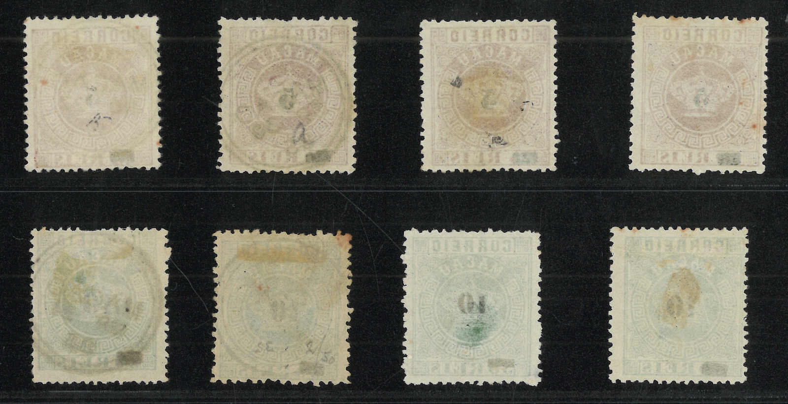 1887年澳門路易士一世舊全(楊目32-41),另附一枚刷色較淡的25厘士,銷Direccao do Correio de Macau日戳。(Image 1)