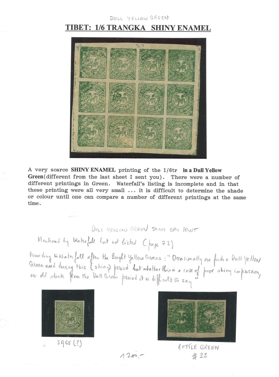 A collection of 1912 Tibet 1st issue 1/6tr, containing 10 singles, multiples and complete sheets, showcasing different shades including the scarce shiny enamel. All mint.