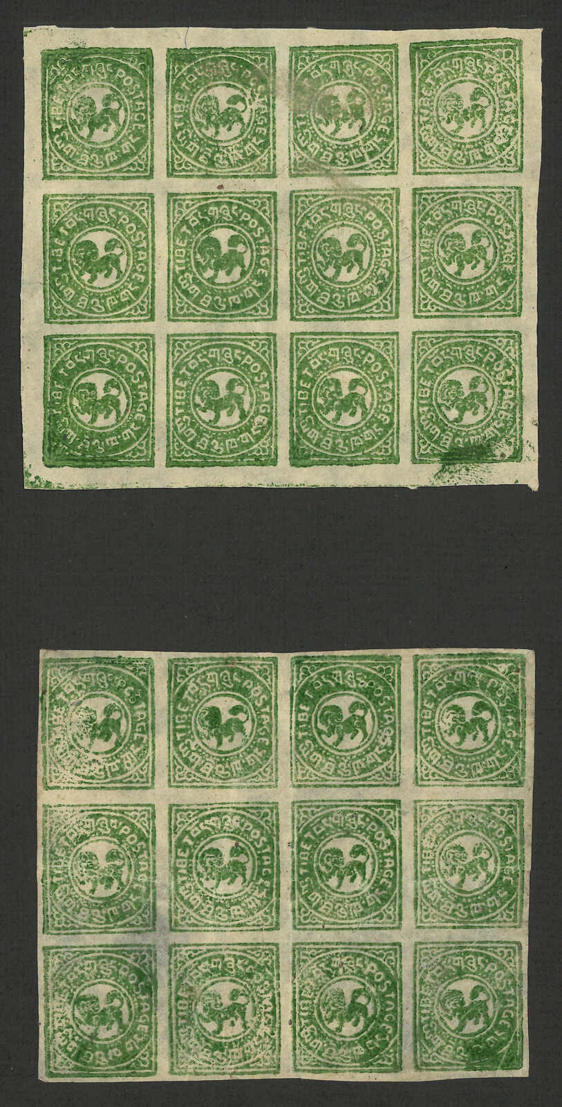 1933年西藏獅圖第三版全套,十二方連5全張,全新。(Image 1)