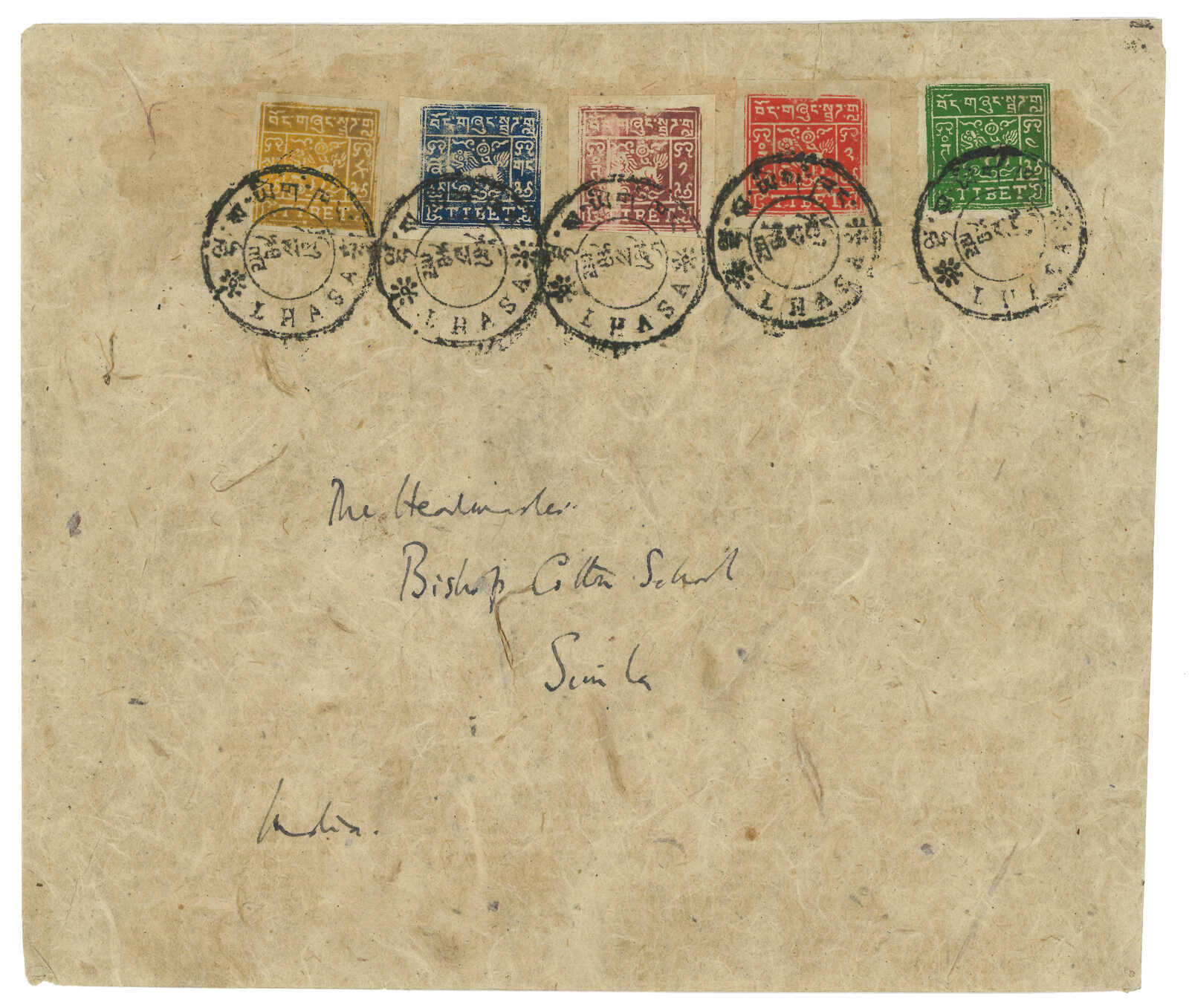 1930s a philatelic cover from Lhasa to Simla, f.w. Tibet 2nd issue set of 5