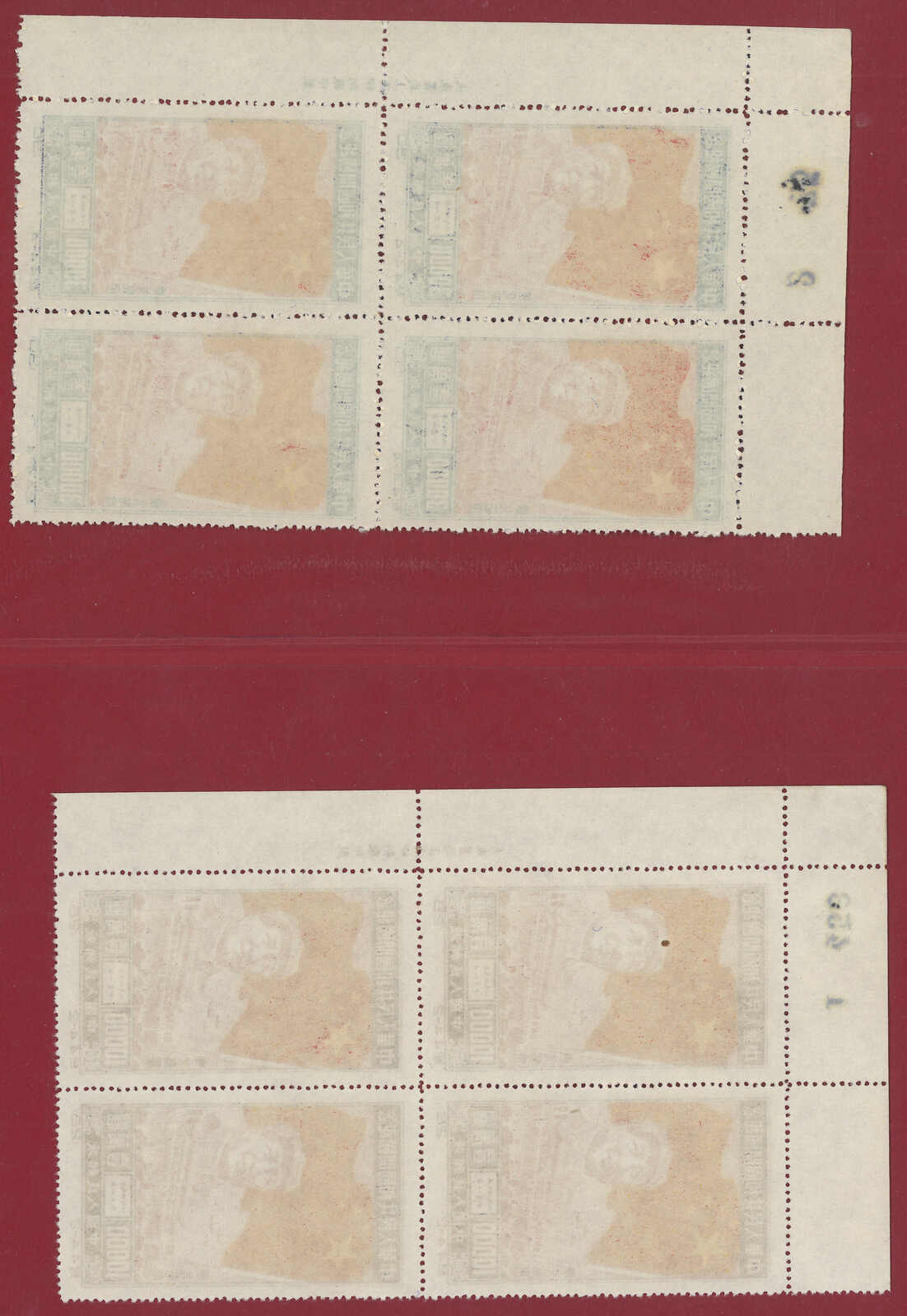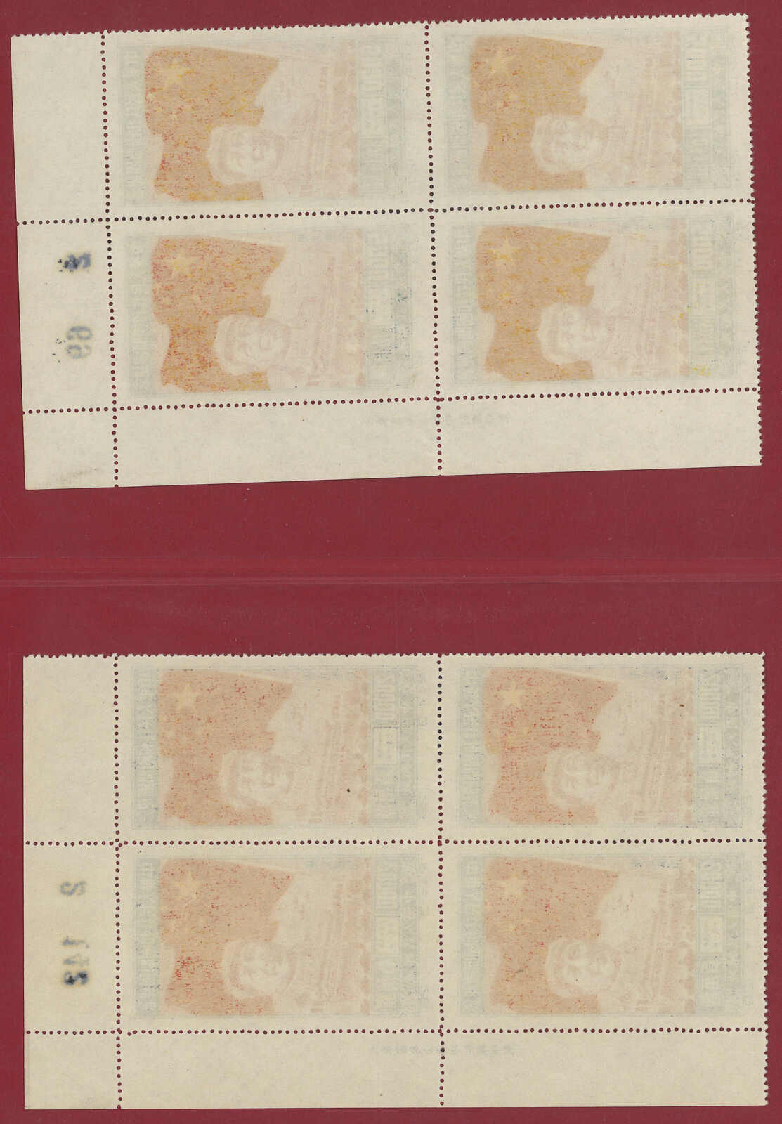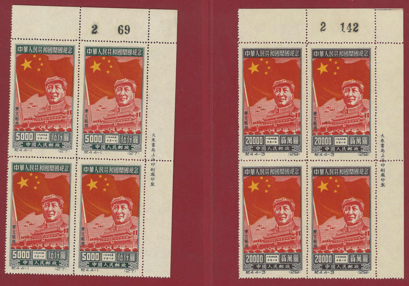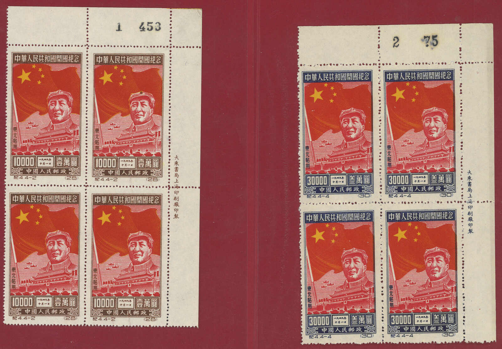 1950 C4NE Inauguration of PRC original print complete set in block of 4 with top right corner margin. MNH. Superb condition.