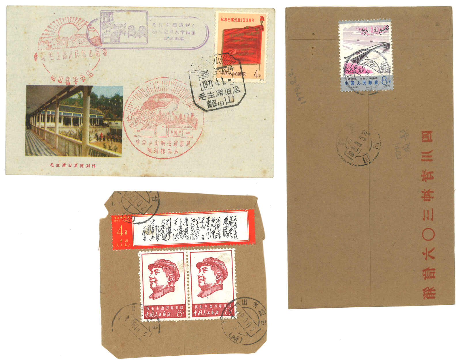 1960s a group of 9 covers and piece during Cultural Revolution, f.w. W2, W4, W7 and other C, N, T, R series odd values. Partly with Mao's quotation. One cover addressing to Zhang Chunqiao.