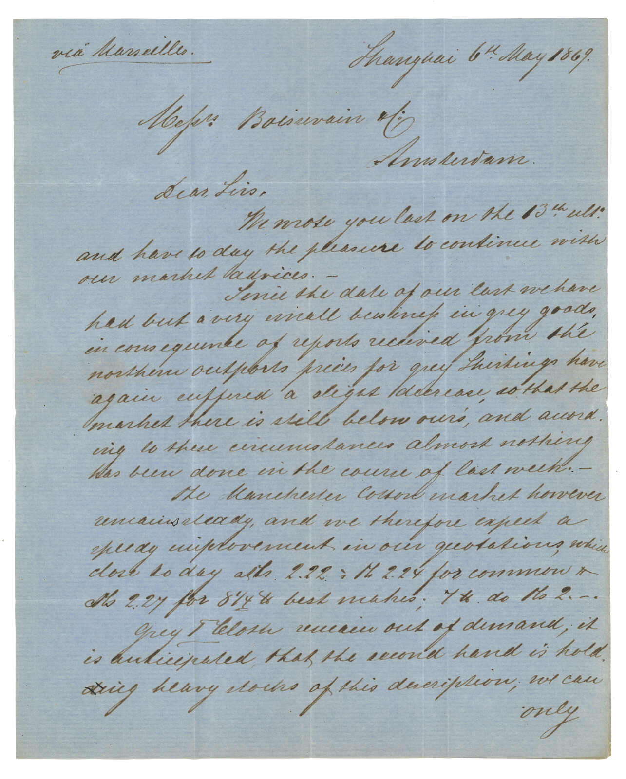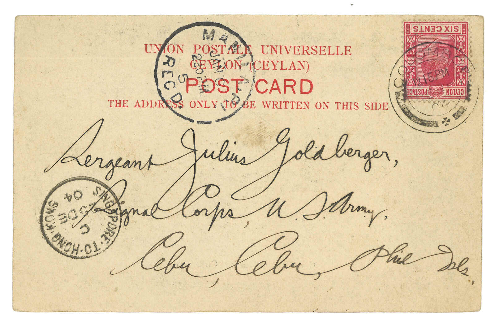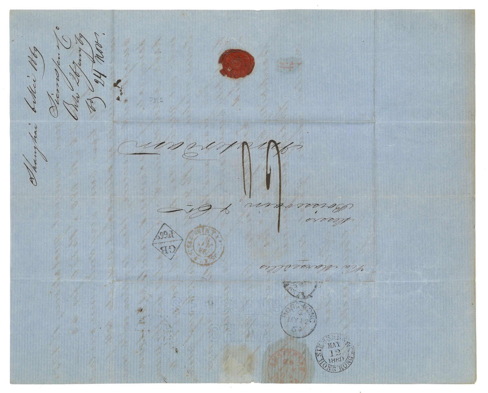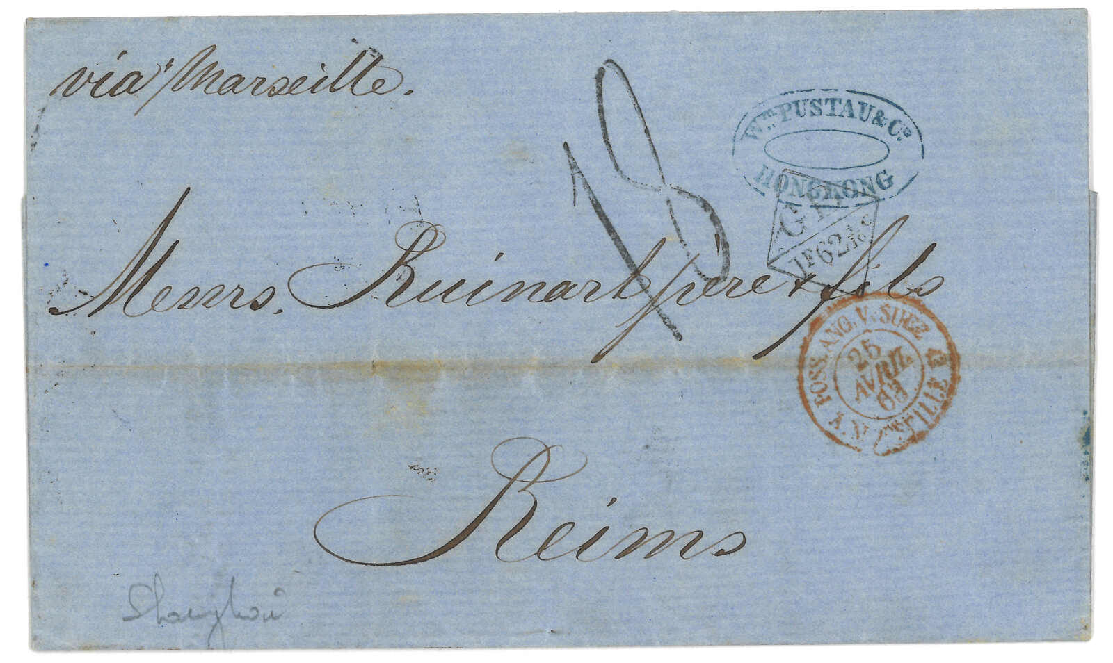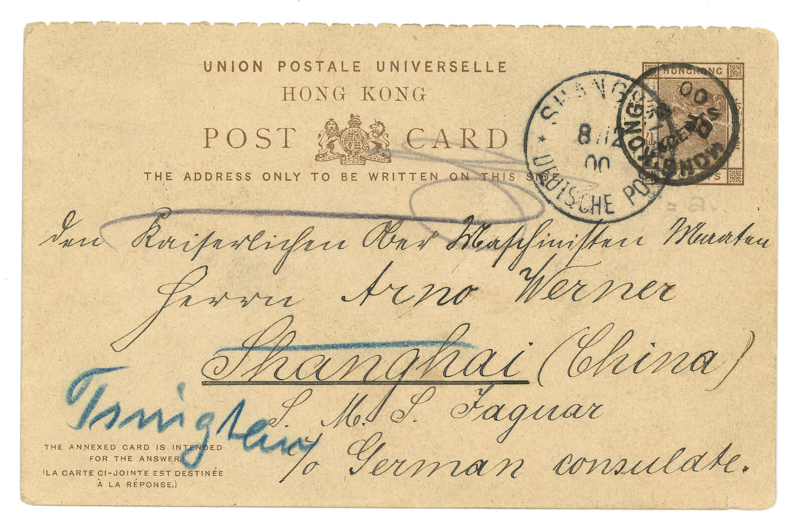 3型日戳。3.27經香港。3.28抵廣州英局,鈐少見之Webb Di型(A字)日戳。Webb指D型日戳大多為B字,故A字稀罕難得。自俄國進口更是錦上添花。(Image 1)