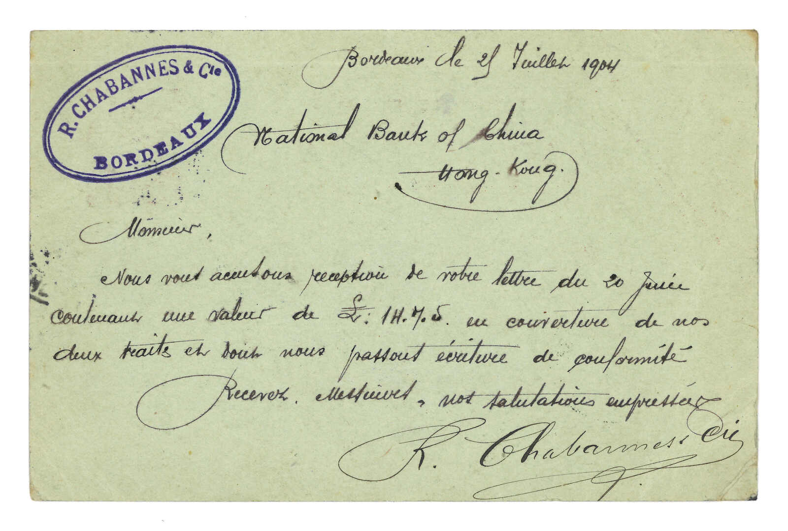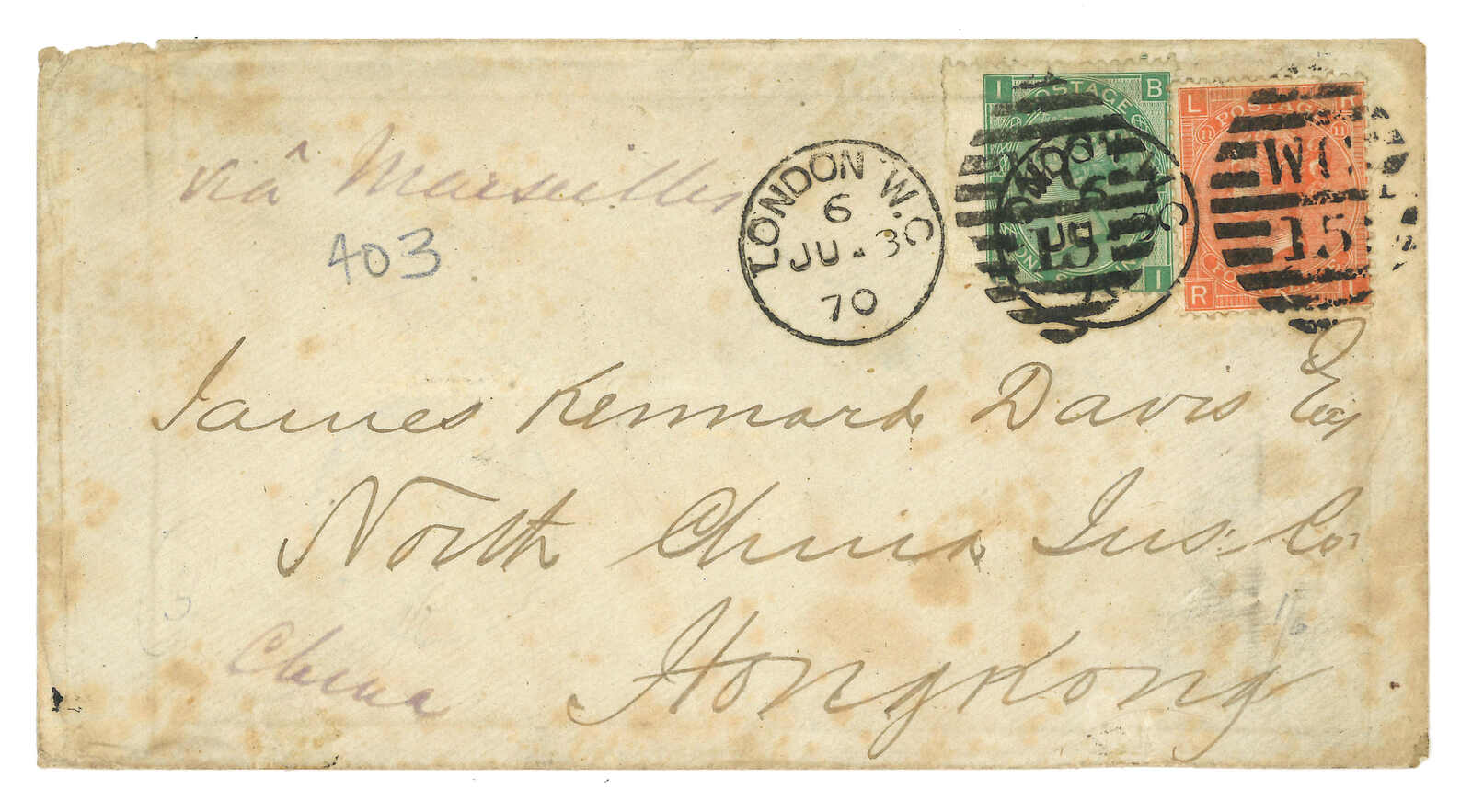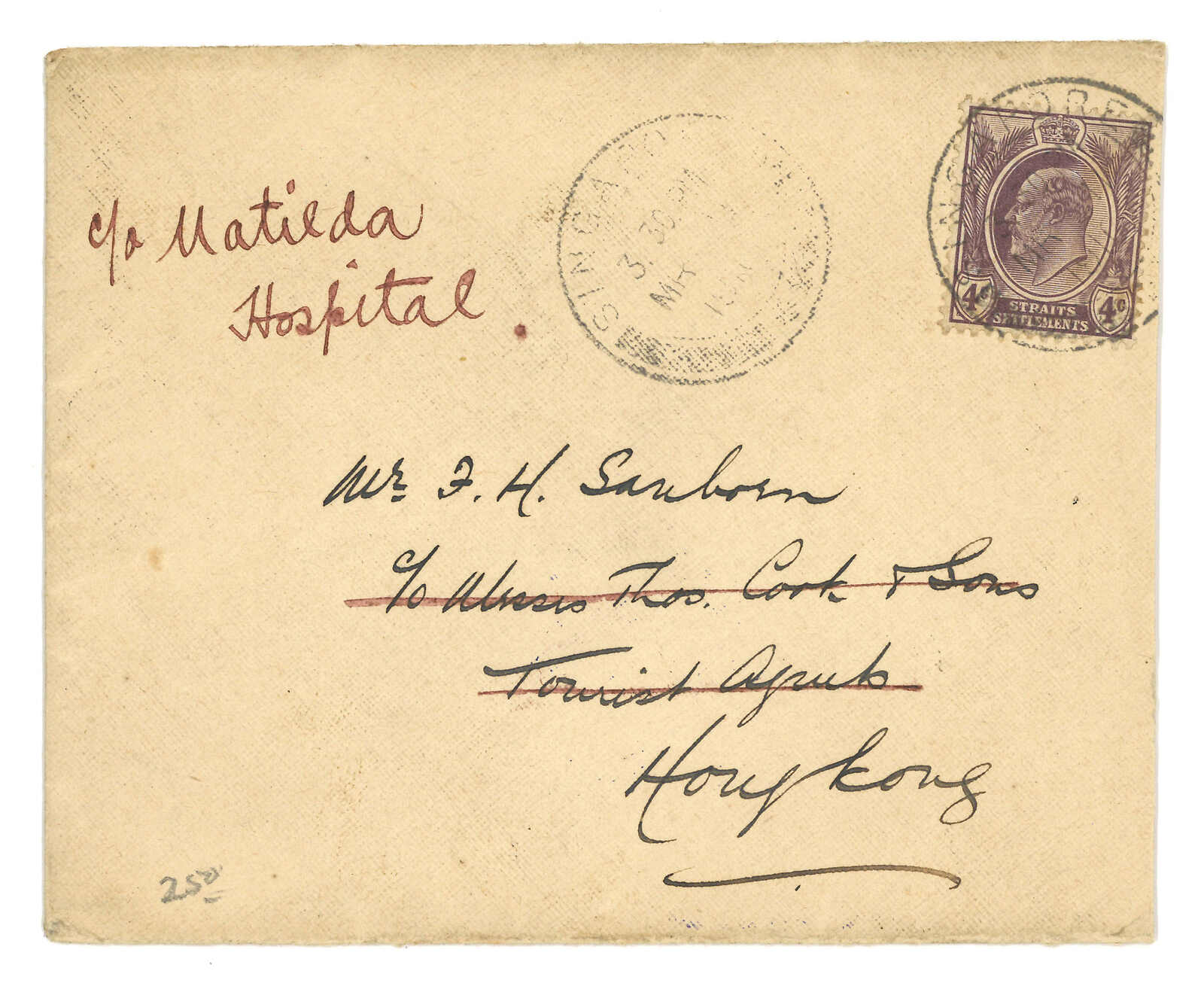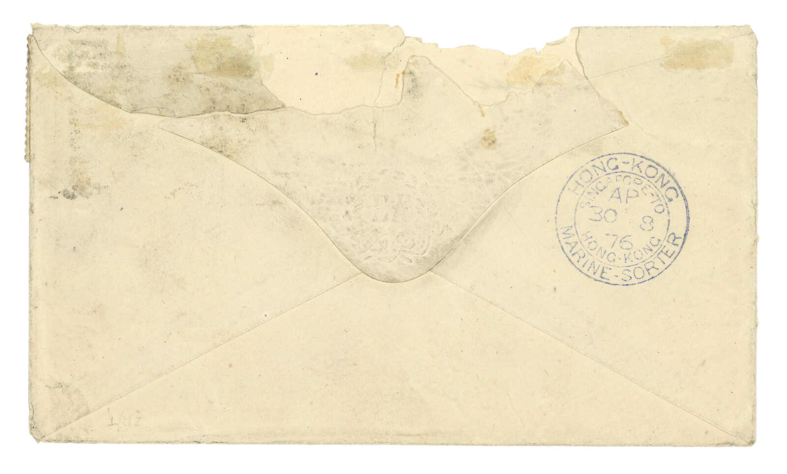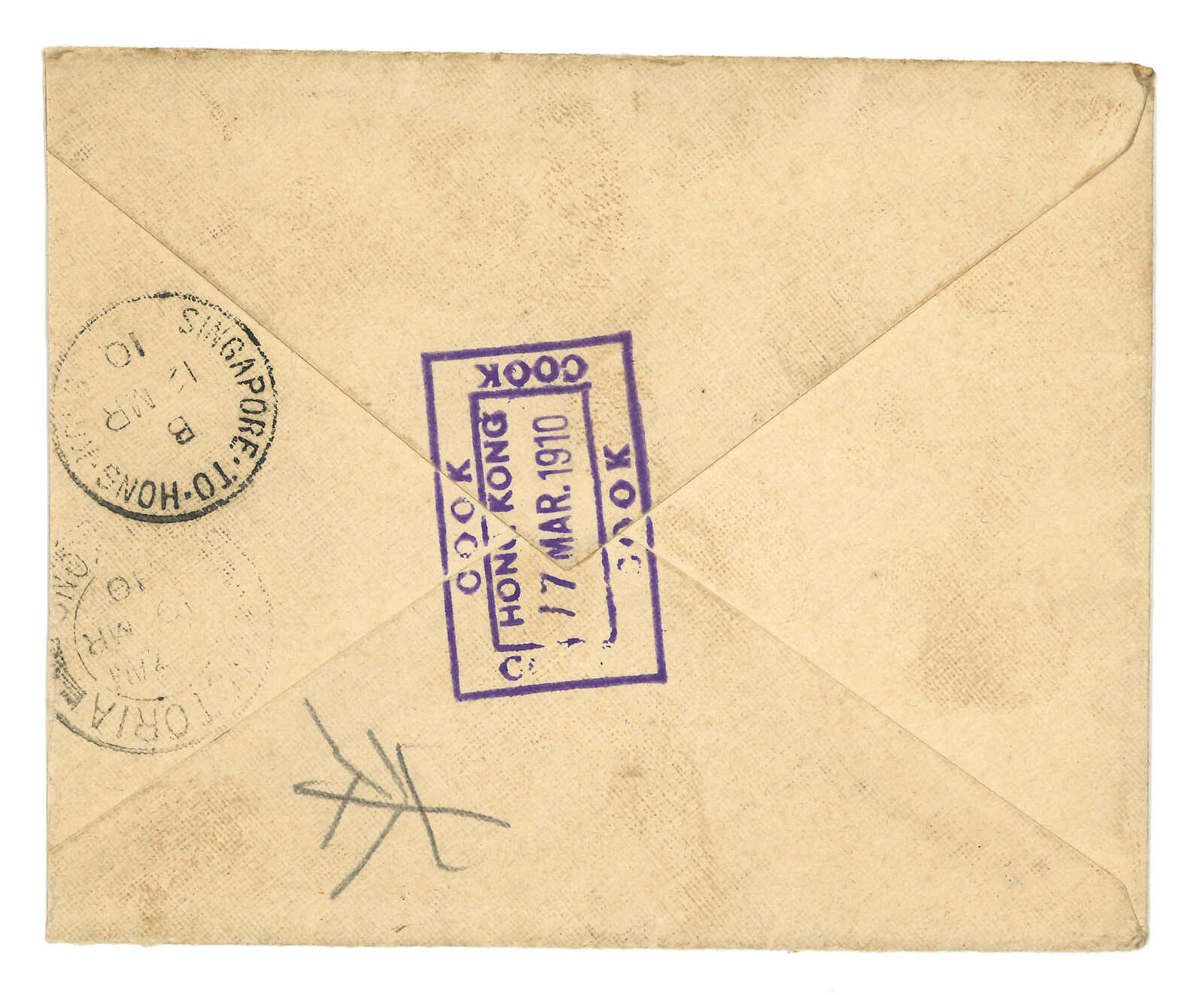 銷倫敦日戳。4.11鈐新加坡至香港海上分揀戳。4.18抵廈門英局。(Image 1)