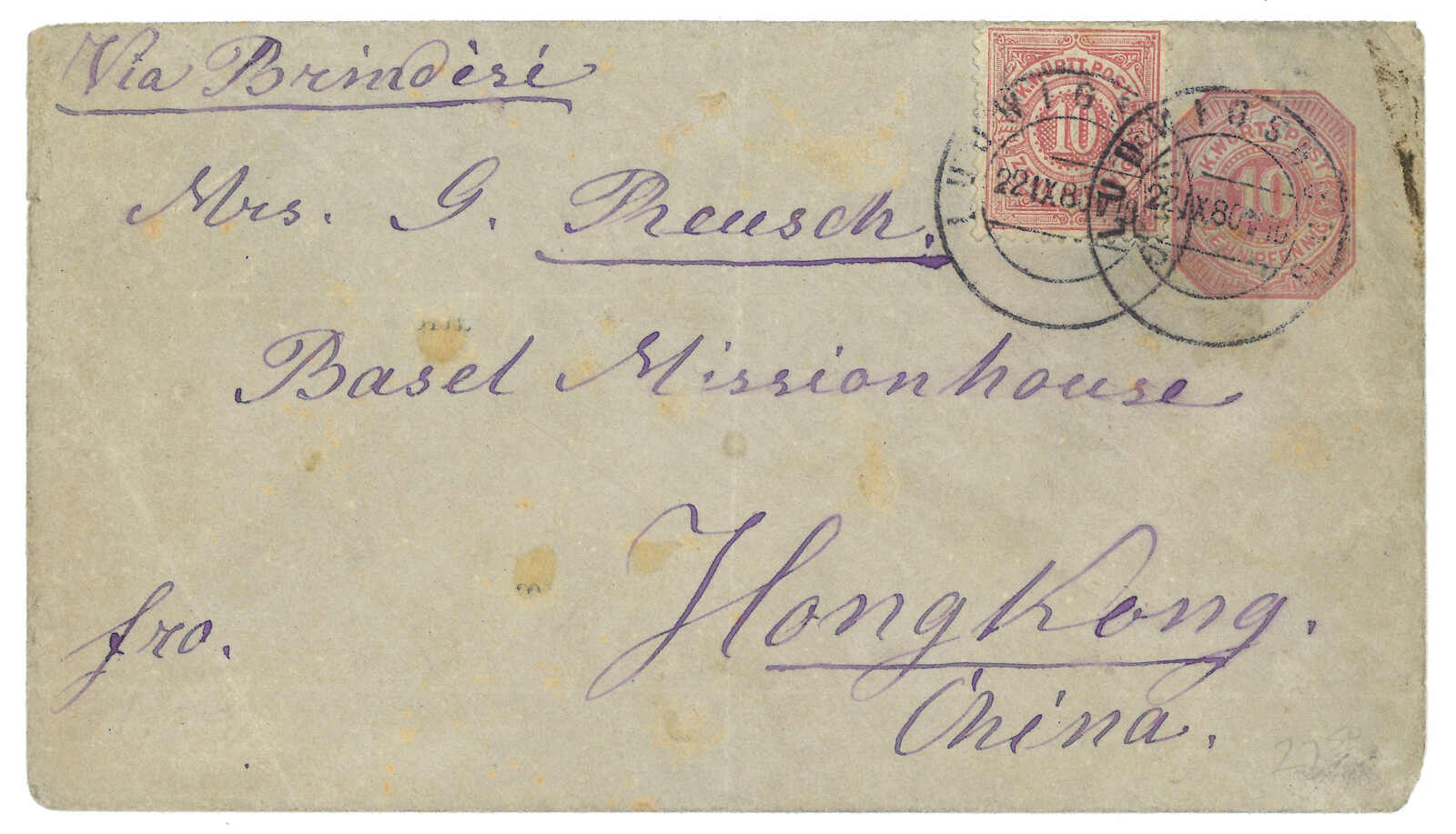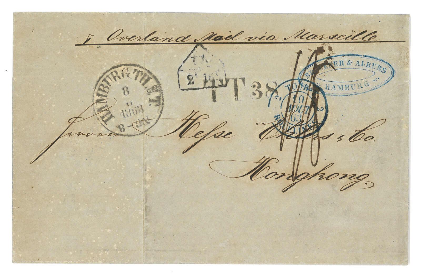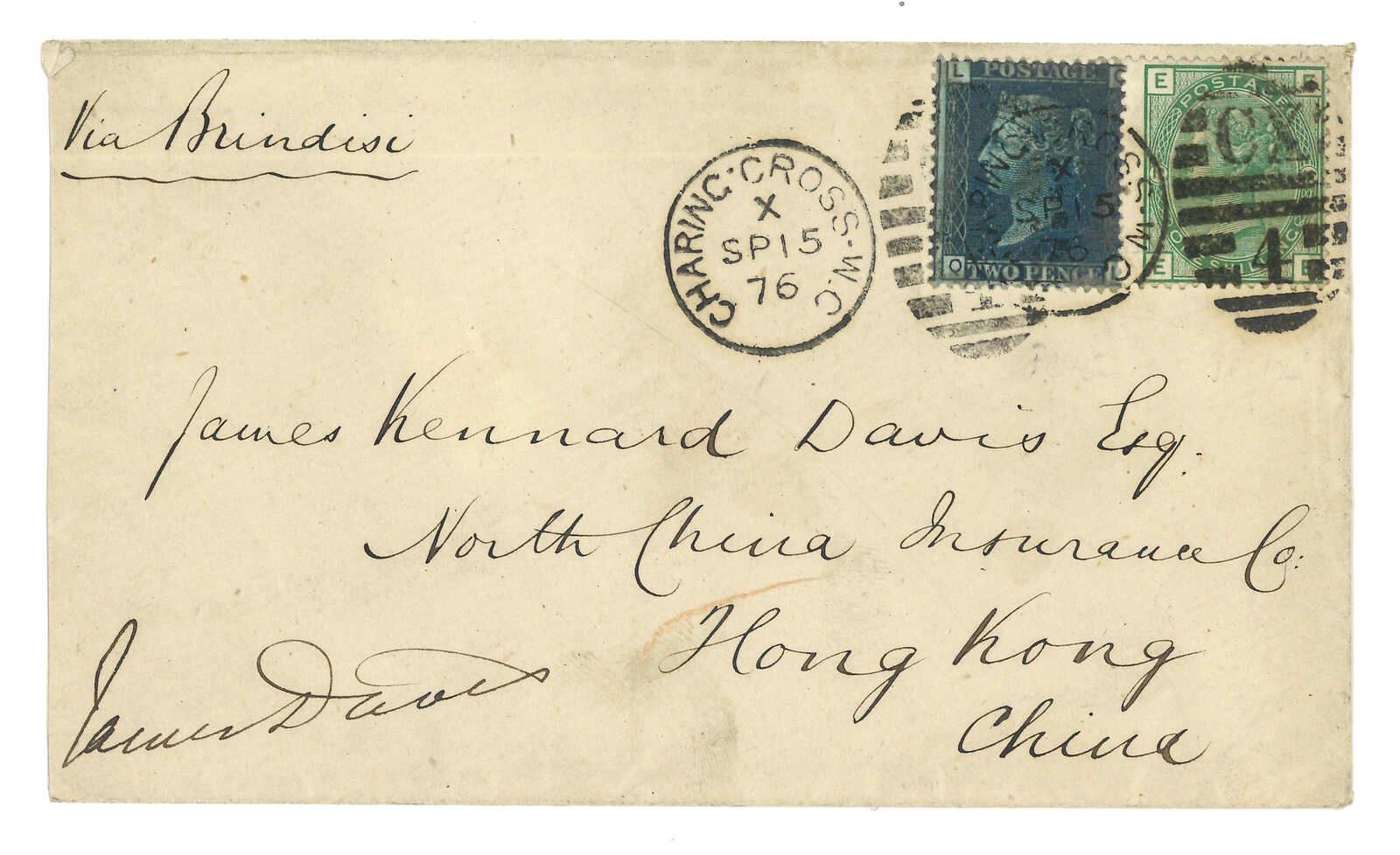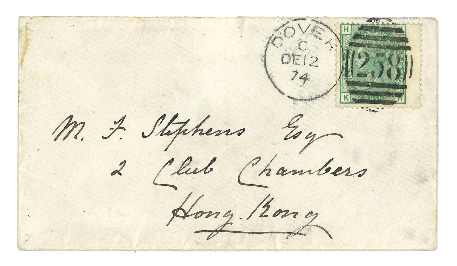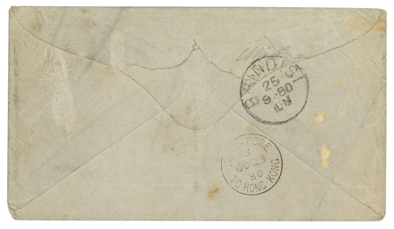 double-arc cds on reverse. Transit Hong Kong. Webb only recorded about half-a-dozen examples of type 1 h.s. Nice early cover of Canton BPO.