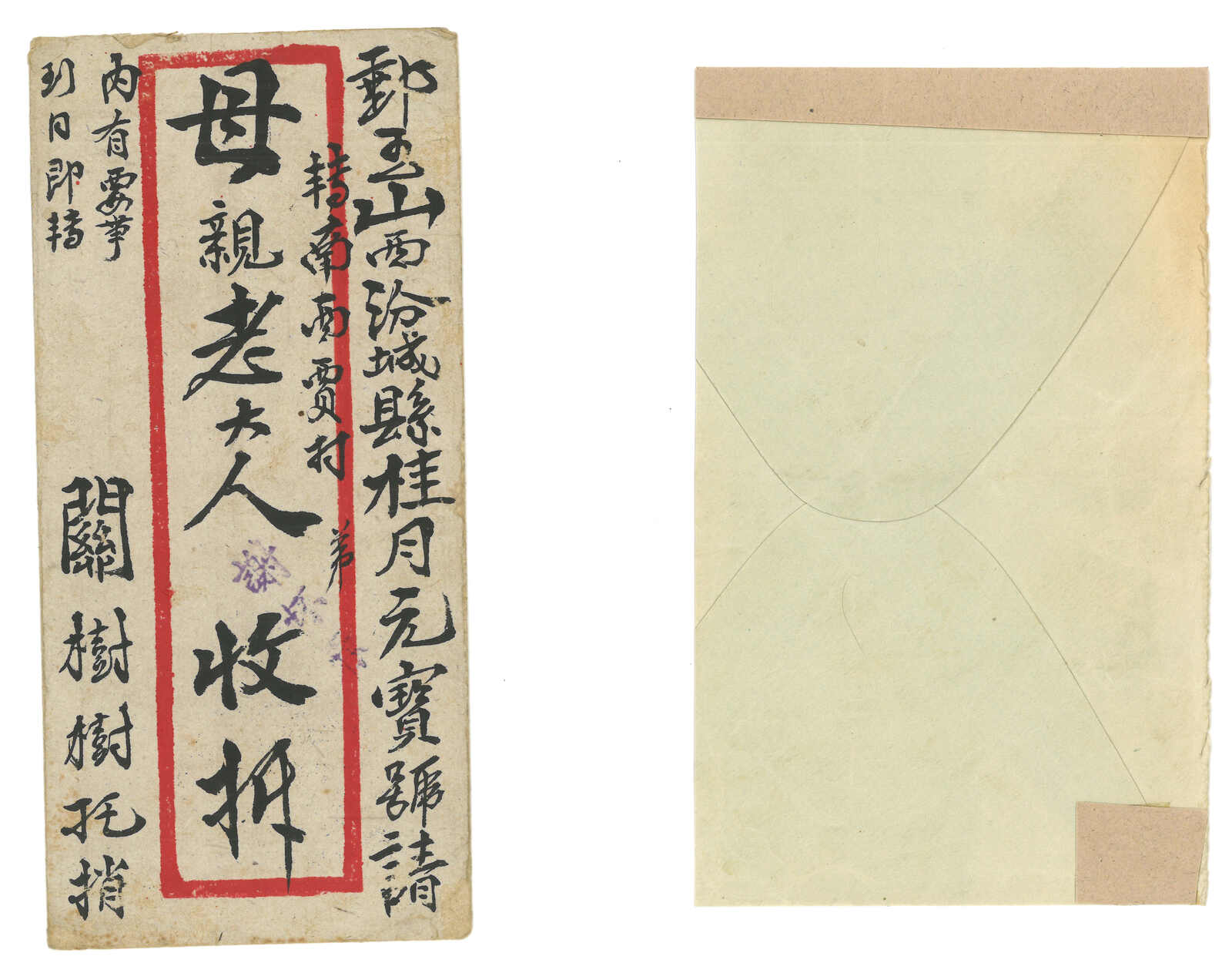 airmail cover from Northwest China after liberation. Cover opened out for display.