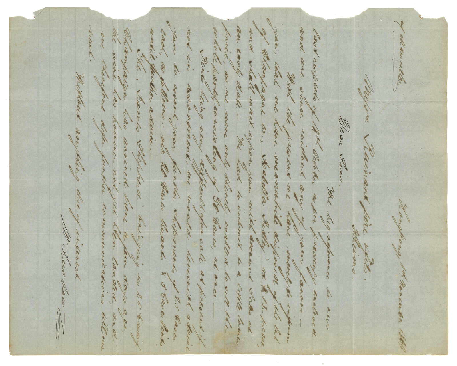 1854.9.9 廣州經直布羅陀郵政代理Michael Power寄加的斯。郵簡,寫有郵資“4”,正鈐少見之Webb 1型“CANTON /