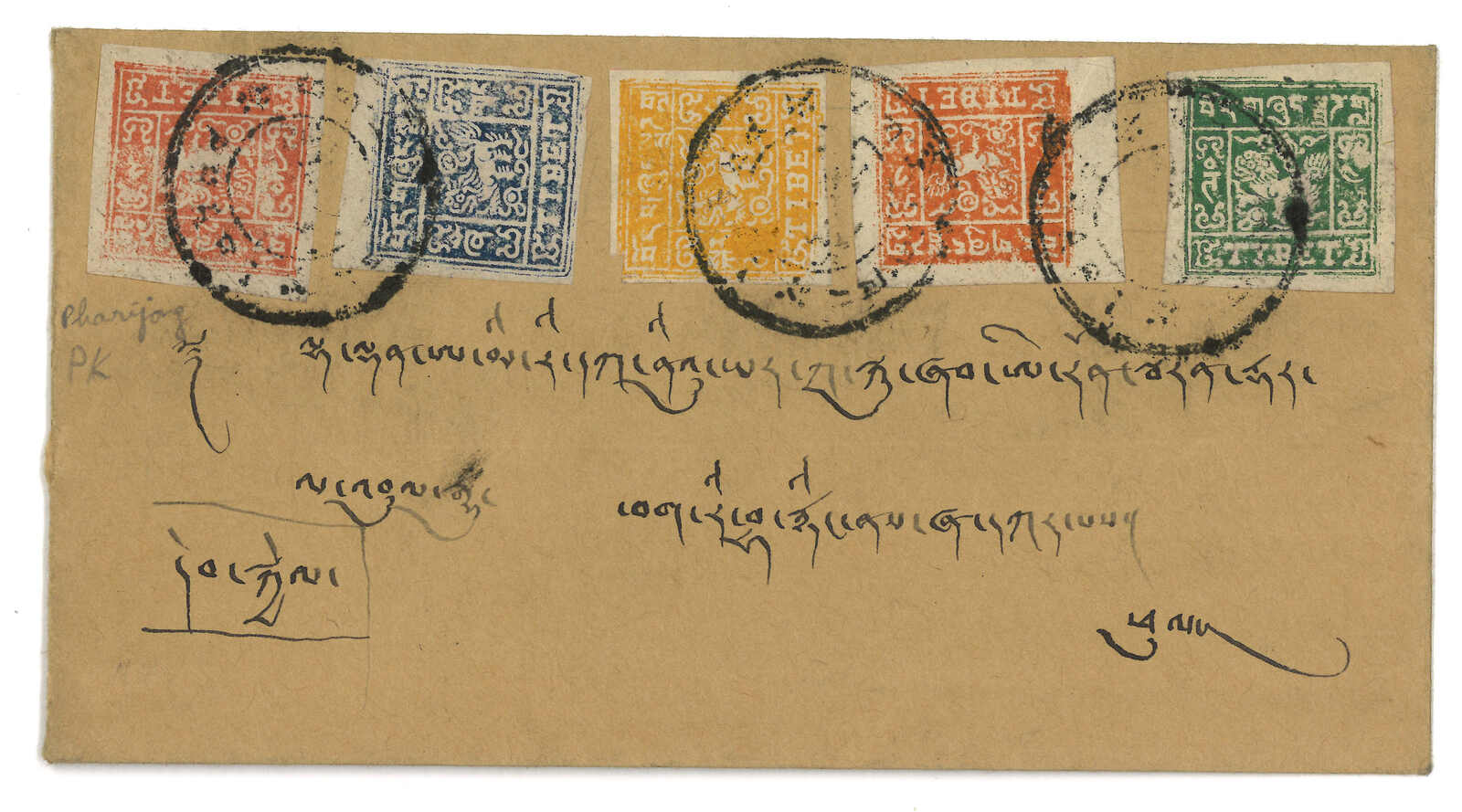 1930s Lhasa to Kashmir, f.w. Tibet 3rd issue x5.