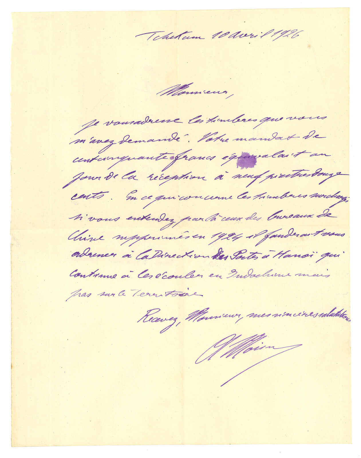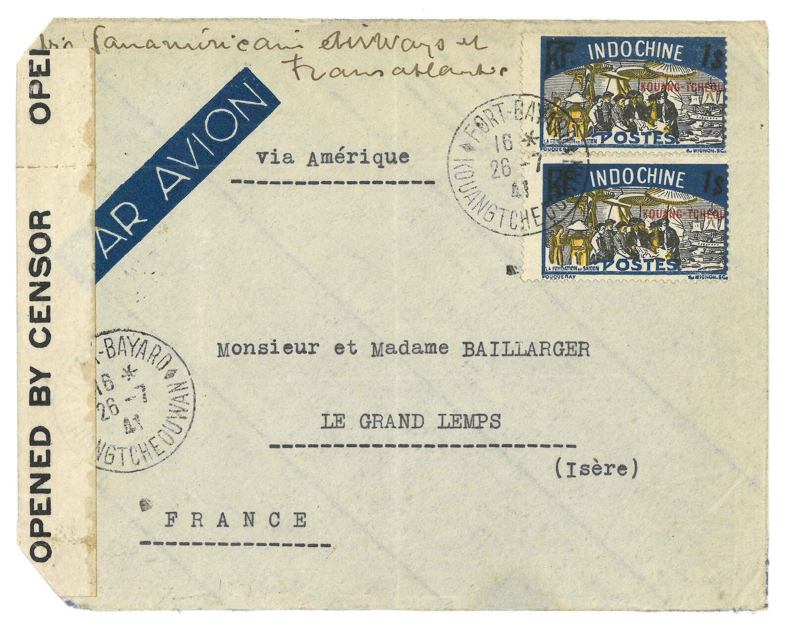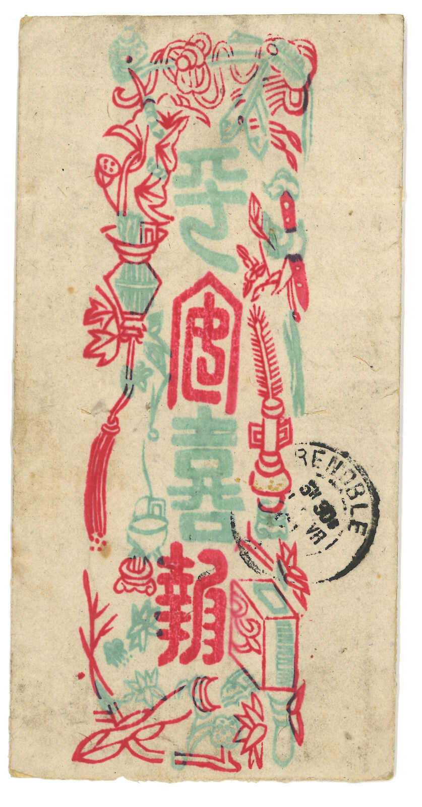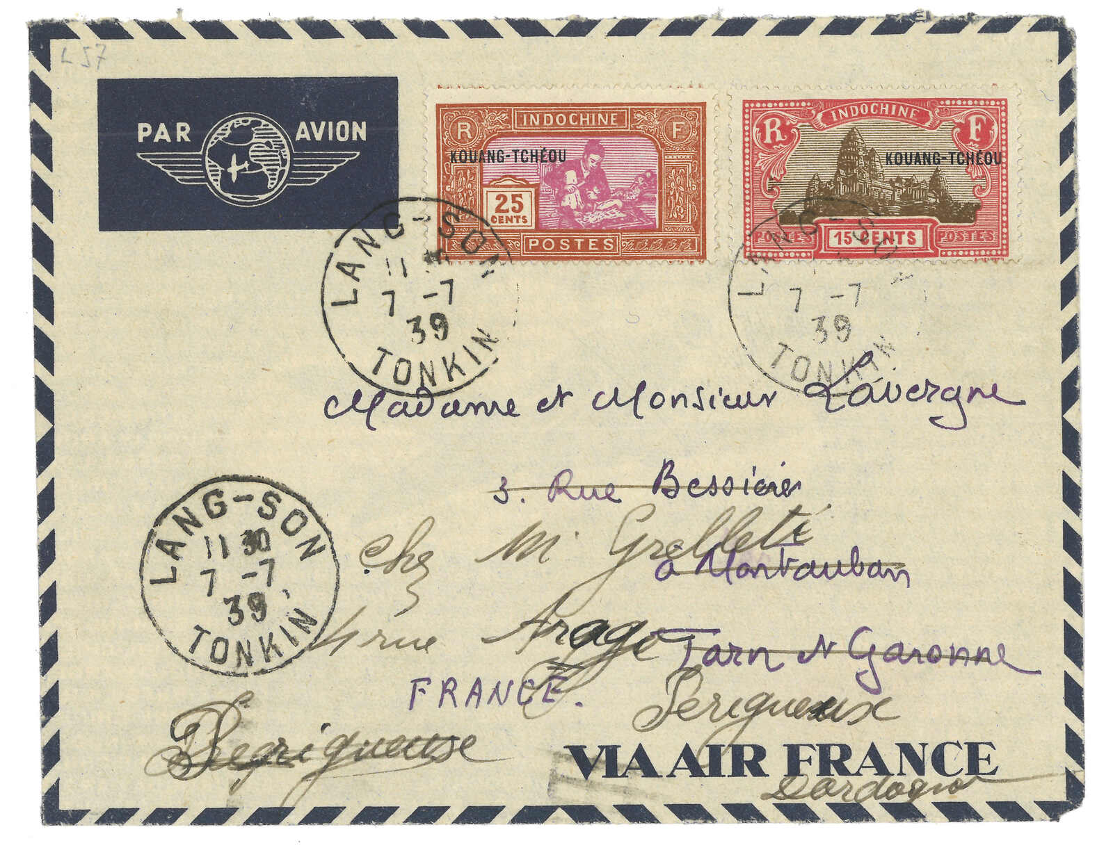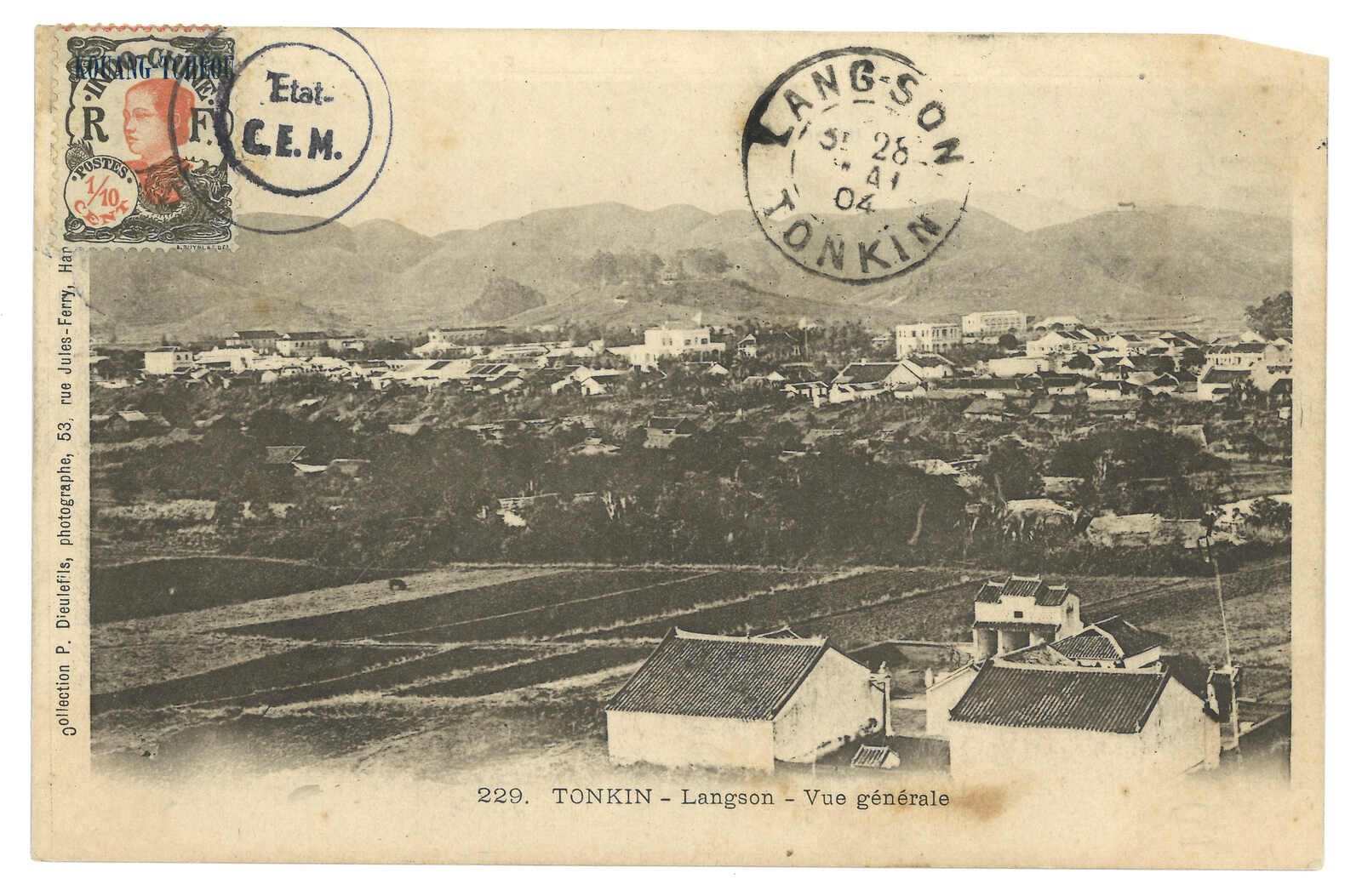 法國戰艦Tiger寄法國。對華遠征軍加蓋於馬達加斯加遠征軍信卡,當Salazie號離開西貢時鈐東京遠征軍5局10.1日戳,旁帶指揮官加簽。10.25抵法國。Salazie號送遞了首批由法軍寄出之郵件。存世之法國信卡例子不過數件。(Image 1)