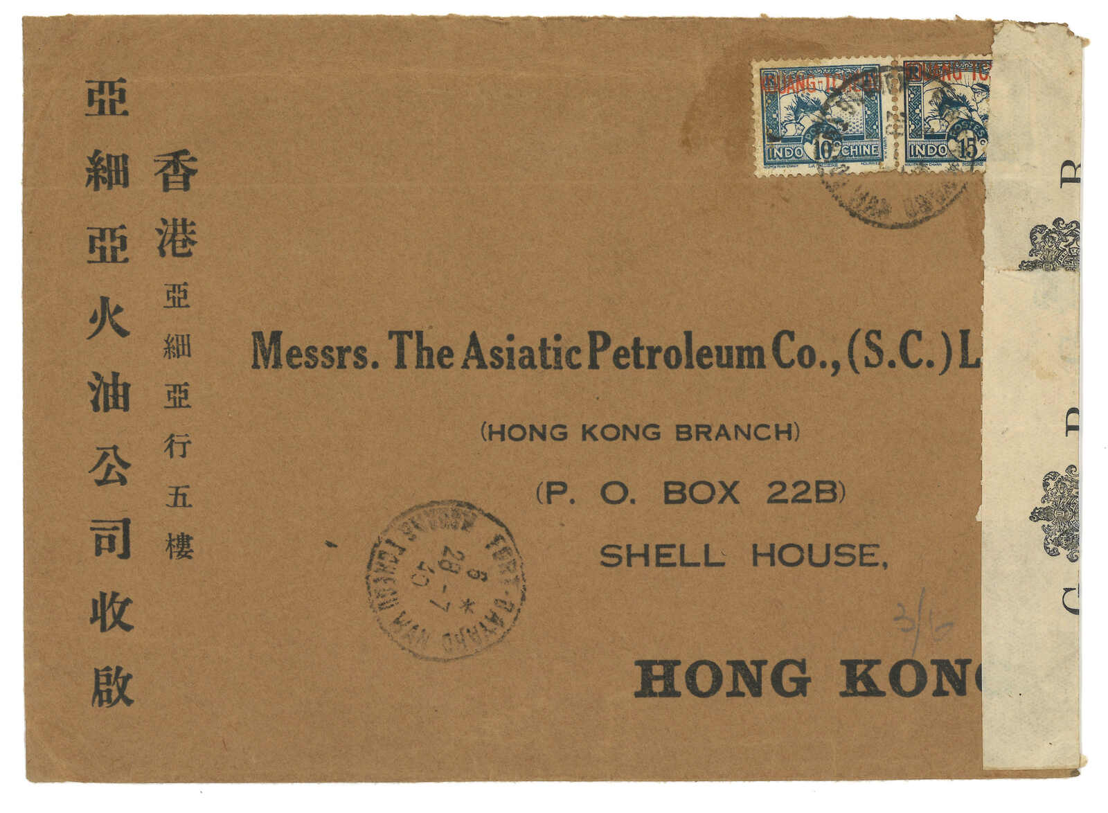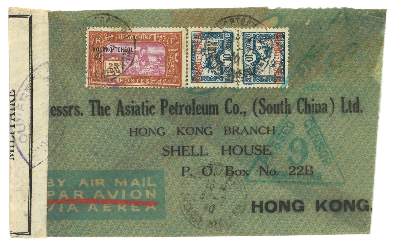 Nov), Shanghai Chinese PO (15 Nov). Arrived with Peking FPO “PEKIN / Corres Aux Armees / CS / ces” (25 Nov) cds. Extremely scarce example of Belgic military mail in China, not to mention the Hong Kong to Shanghai marine sorter.