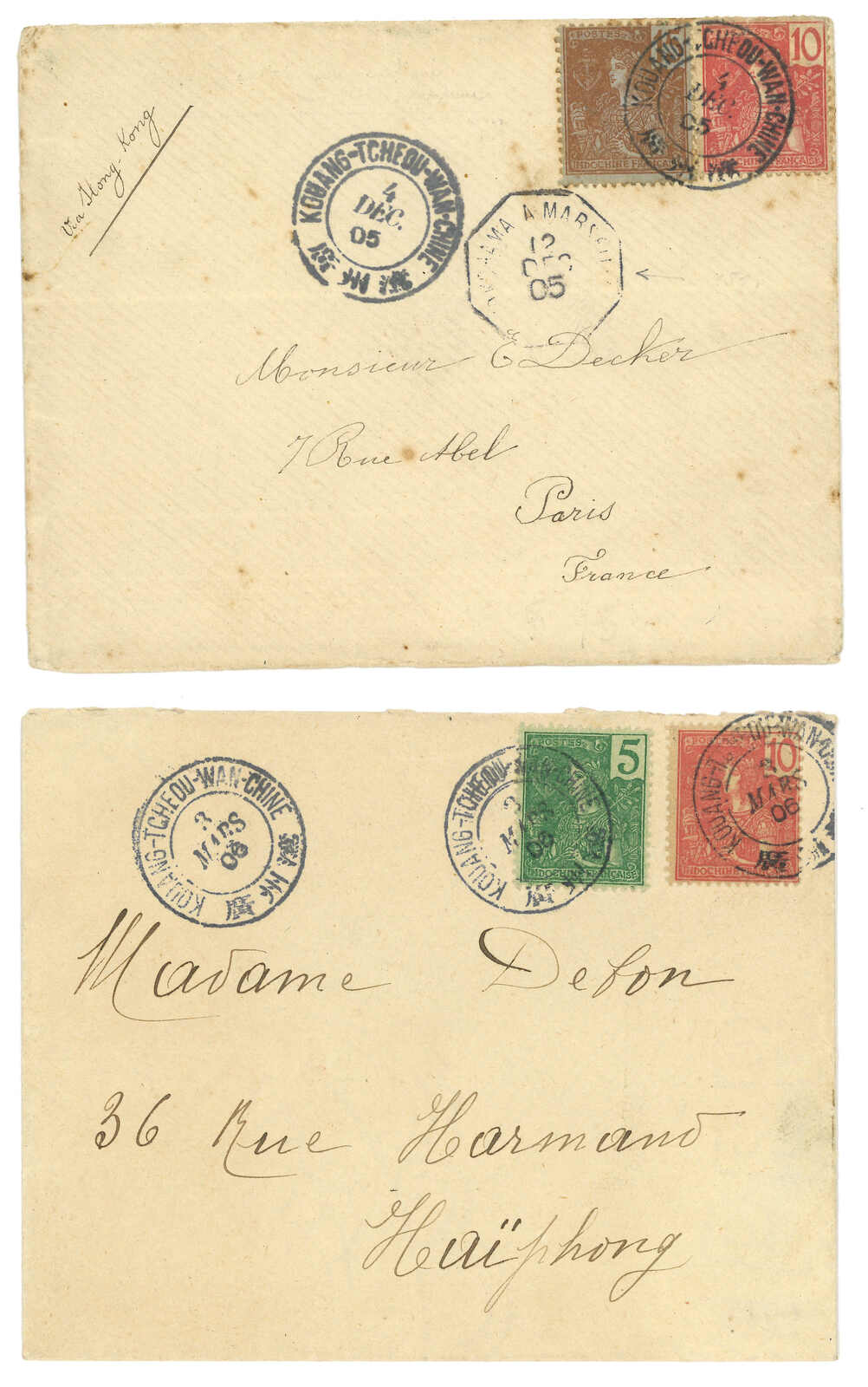 1900-1912 a group of 3 Corps D’Occupation de Chine covers to France, f.w. Peace and Commerce issue or Regular issue, all tied by French miltary PO No. 5 (Tresor et Postes Aux Armees) cds. Including one mourning cover and one