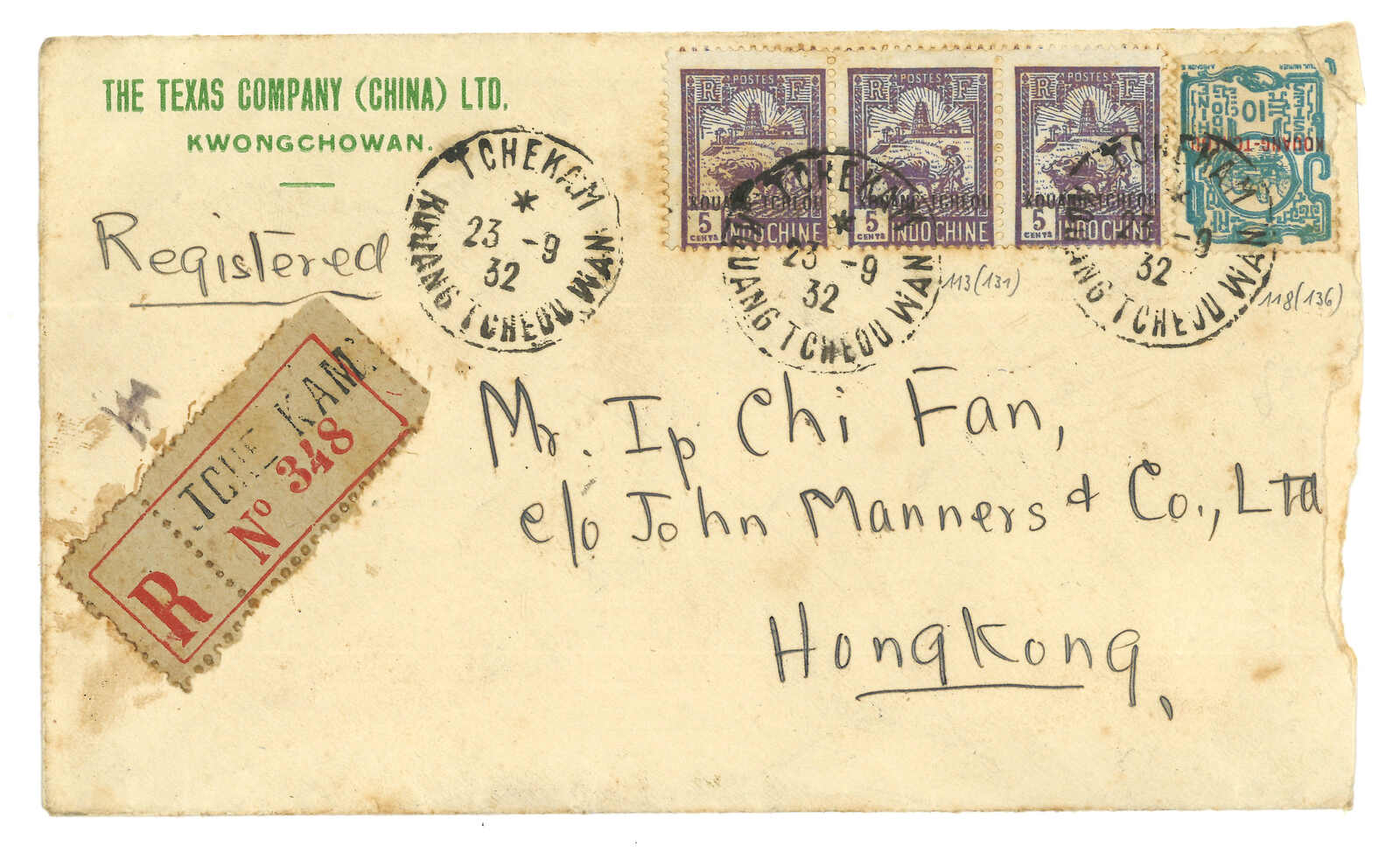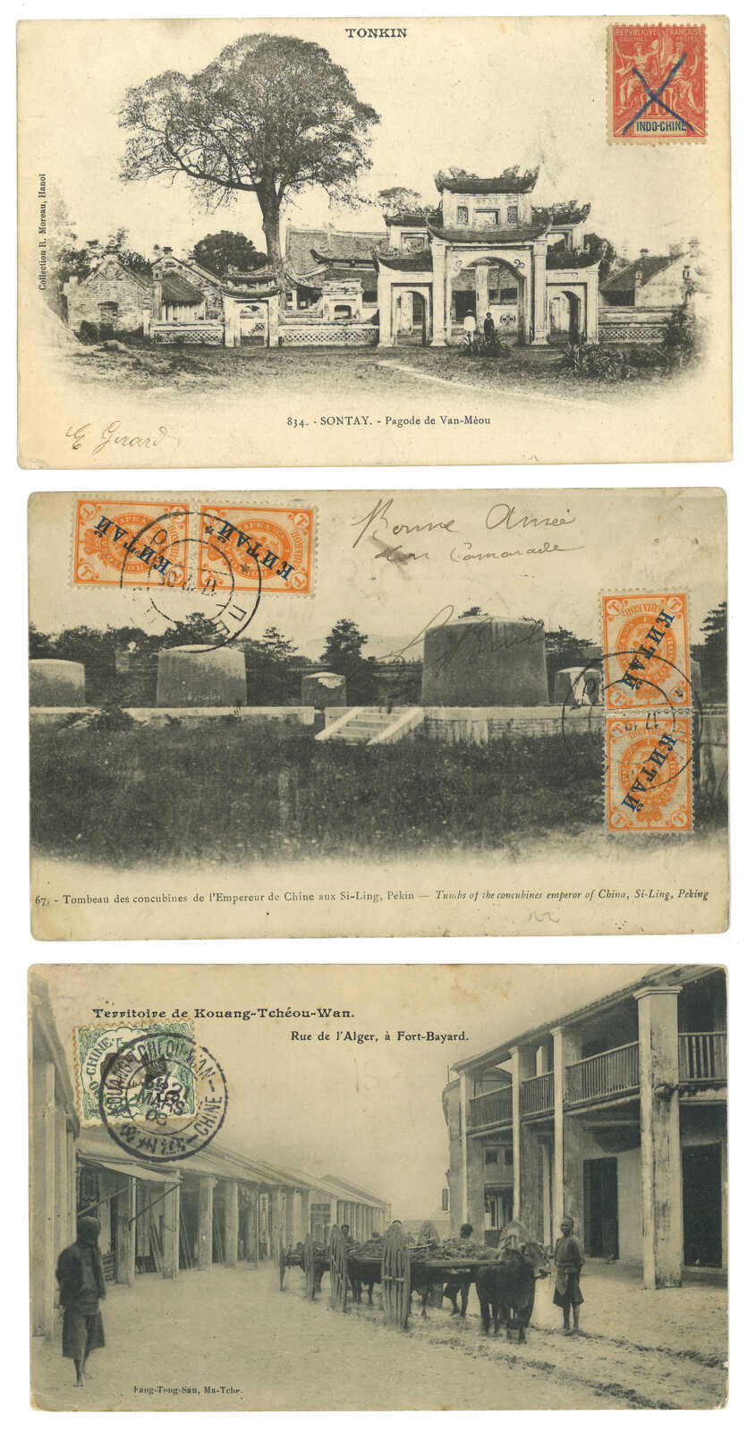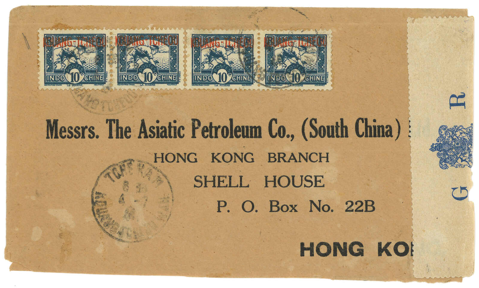 19000至1940年代一組豐富之廣州灣郵政史集藏,包含超過50件封片。部分珍罕品項包含“TCHE-KAM / LE COMMANDANT D'ARMES”圓戳及舖仔日戳等。請預覽。(Image 1)