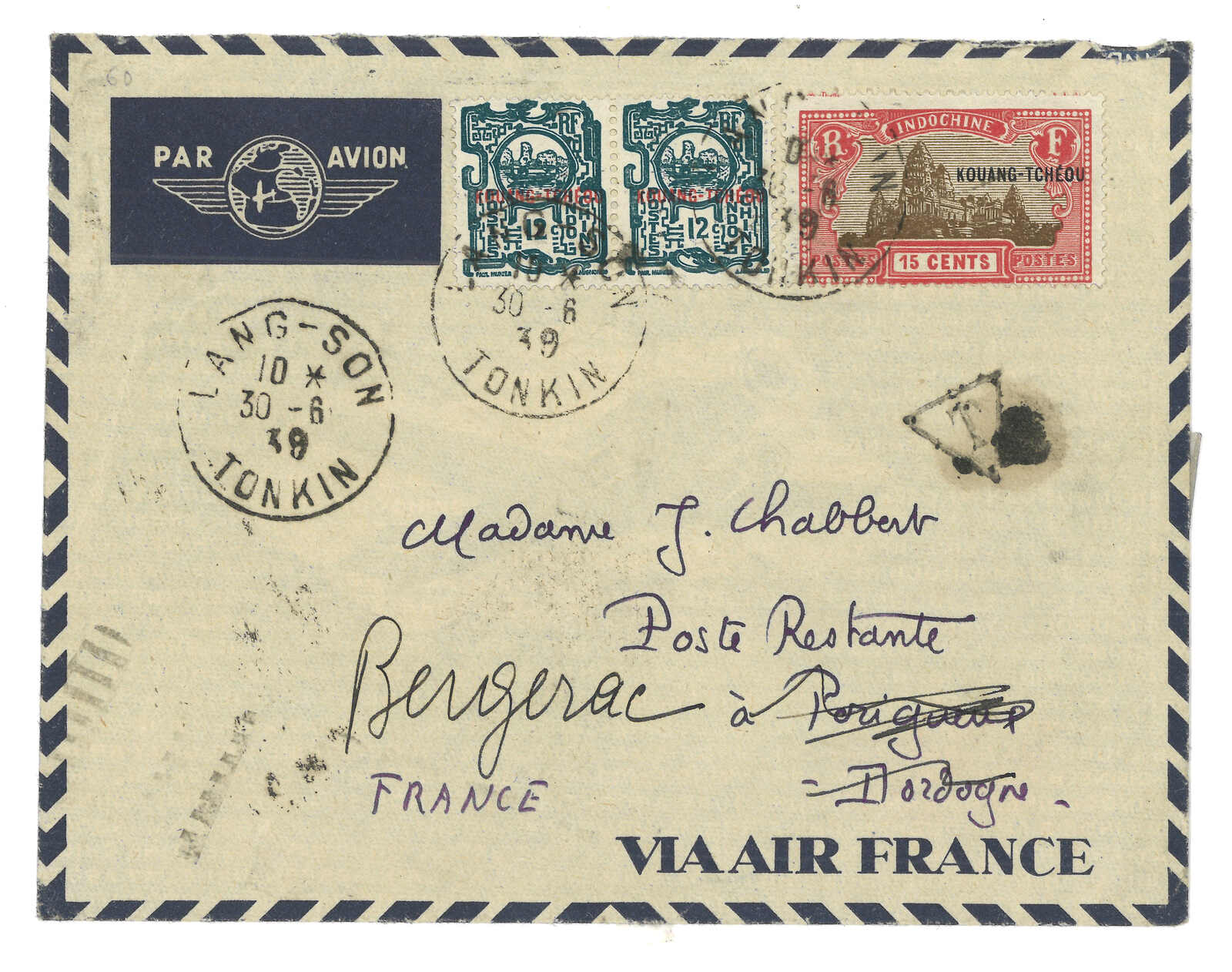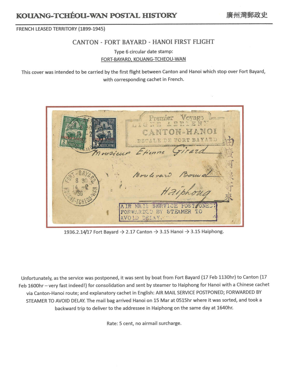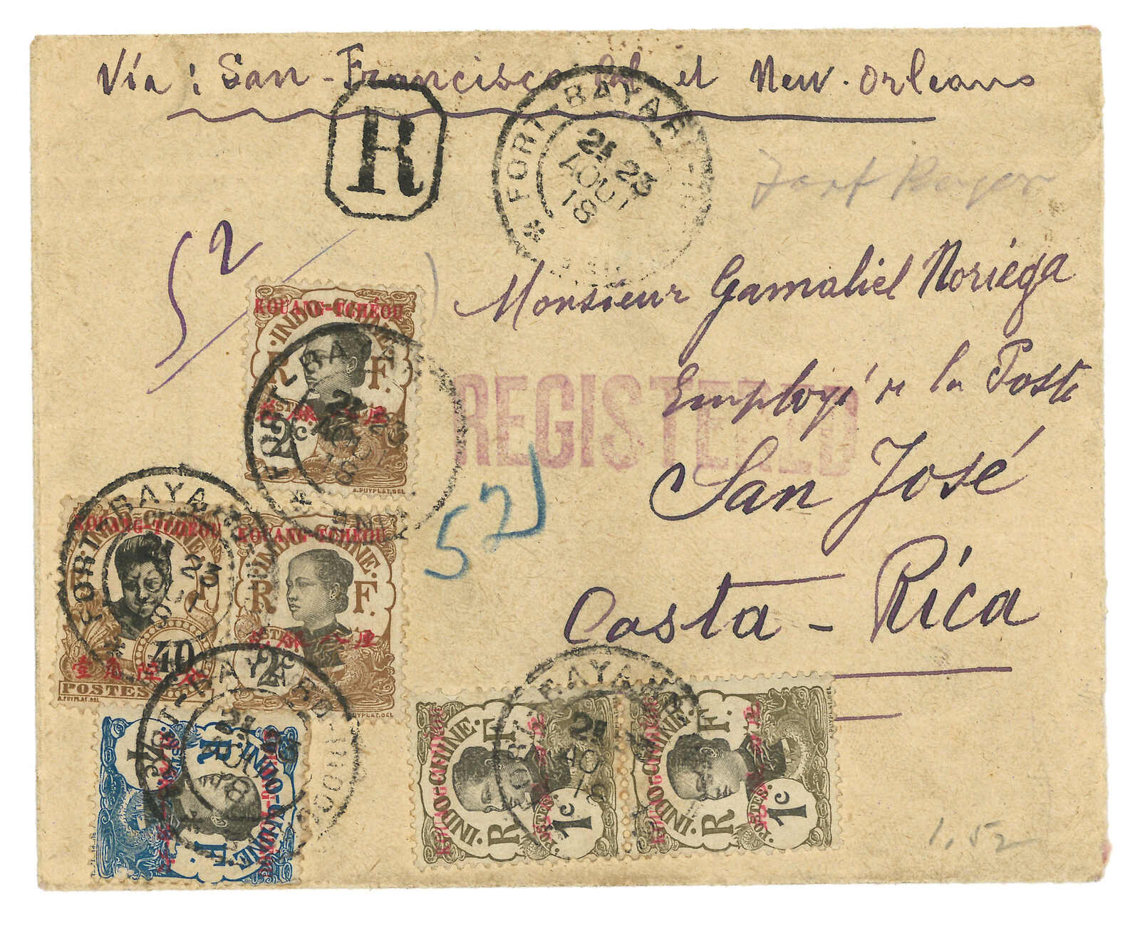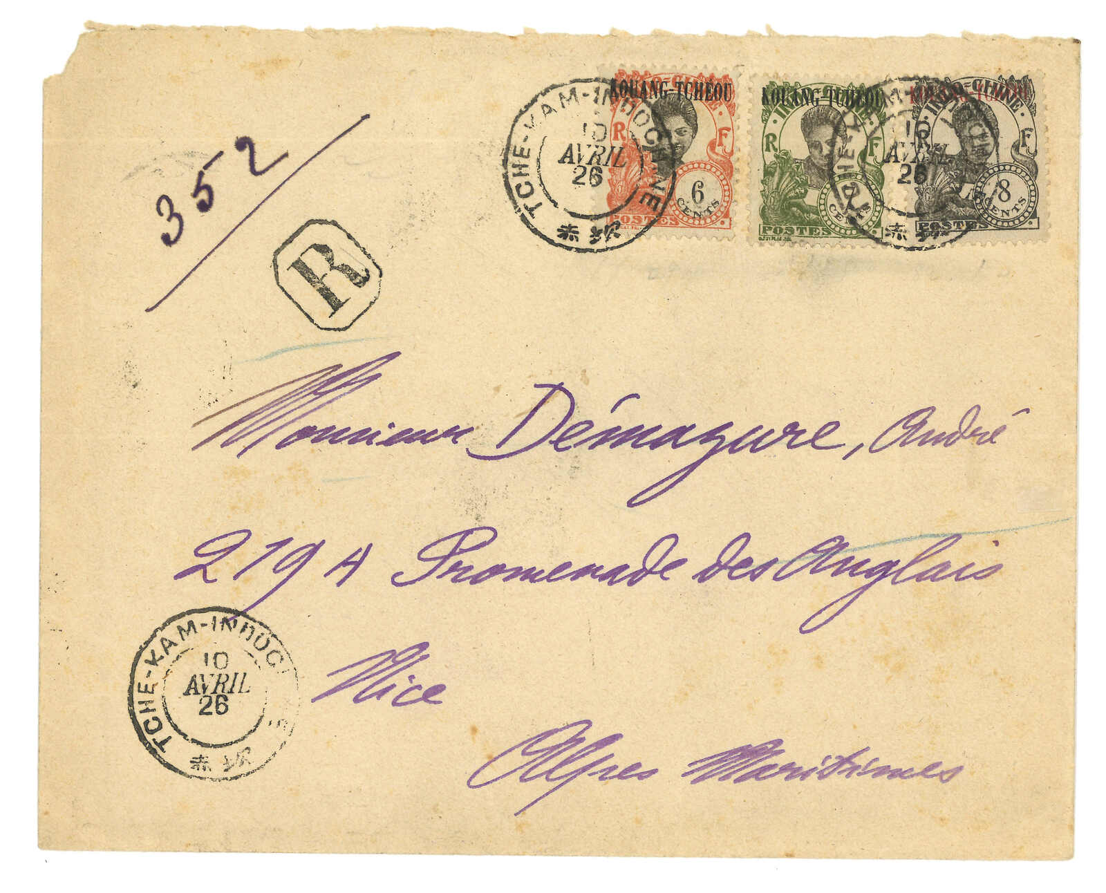 19000至1940年代一組豐富之廣州灣郵政史集藏,包含超過50件封片。部分珍罕品項包含“TCHE-KAM / LE COMMANDANT D'ARMES”圓戳及舖仔日戳等。請預覽。(Image 1)