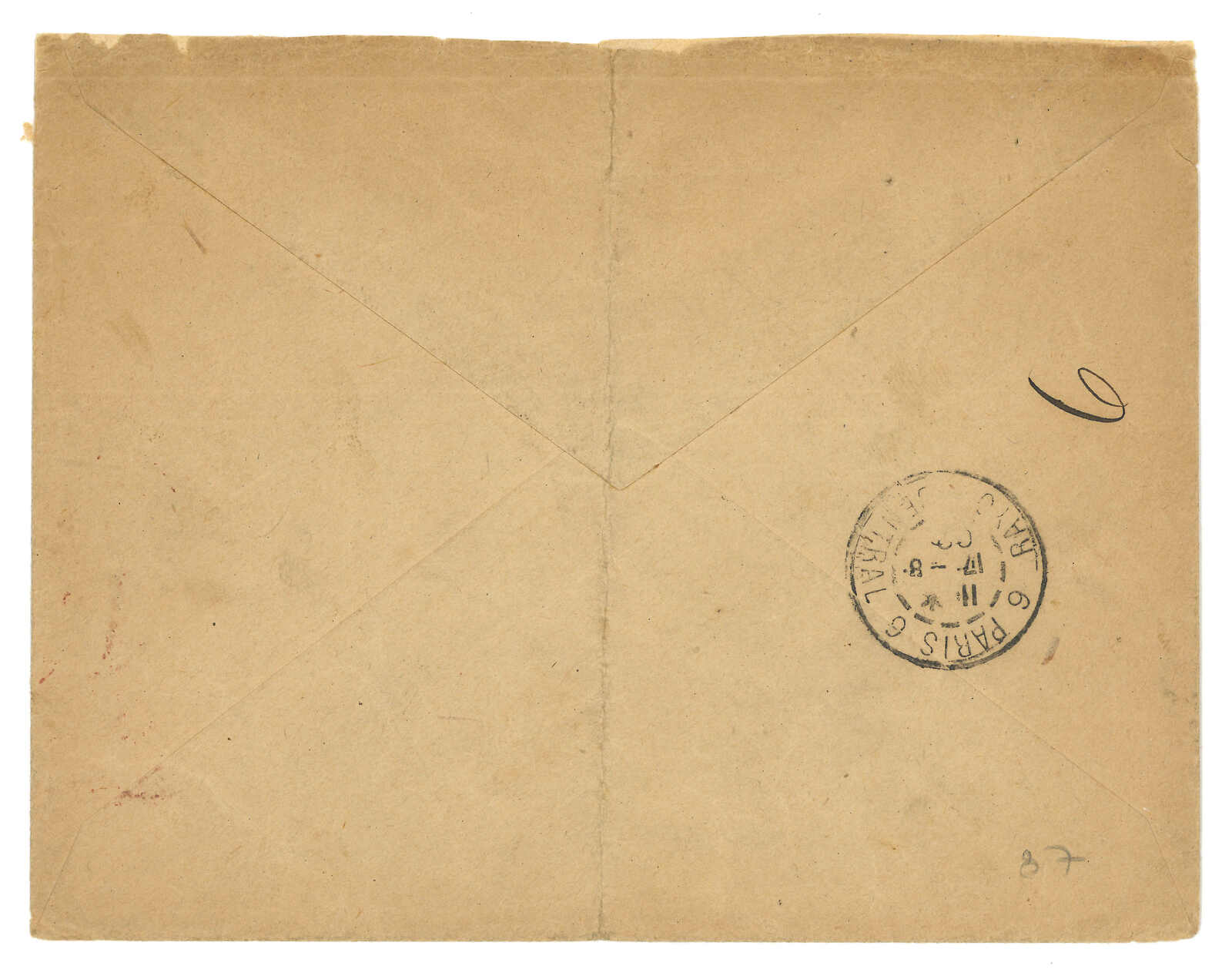 Commandant” circular seal. Arrived France (26 Sep). Exceptional example from a specialized military unit.