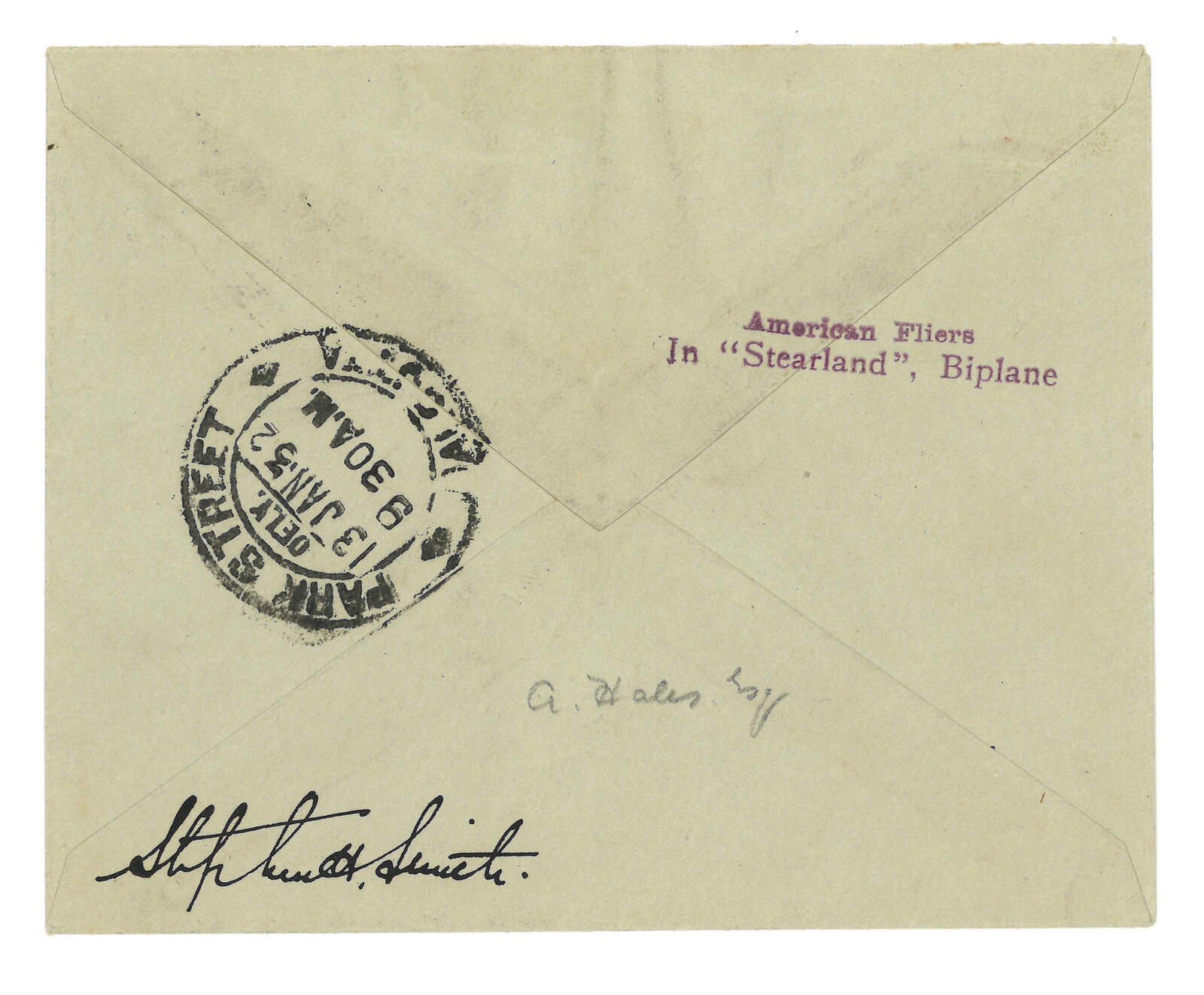 Stearland, Biplane” cachet on both sides.