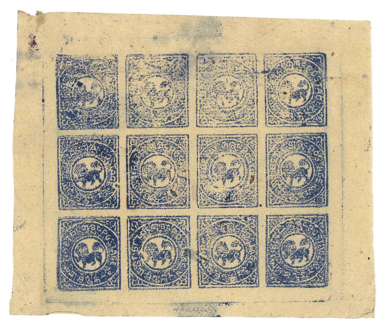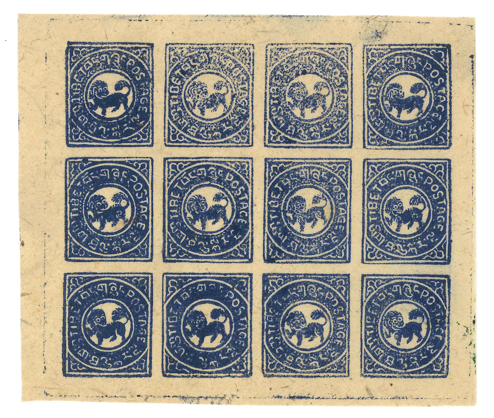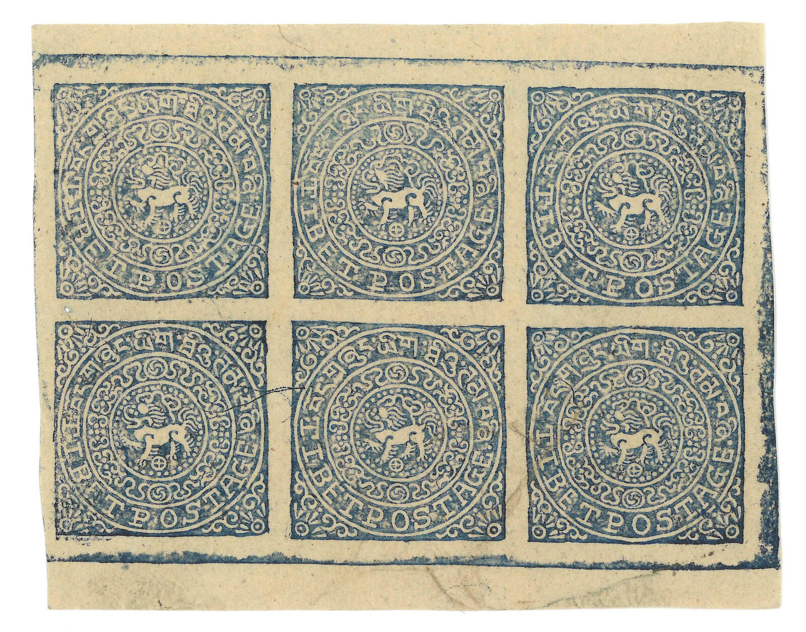 1912 Tibet 1st issue native proof, showing lion facing right which was considered un-Buddhist and thereforewas changed to the more accepted design in official issuance. Extremely scarce. Provenance: Tibet Stampsand Postal