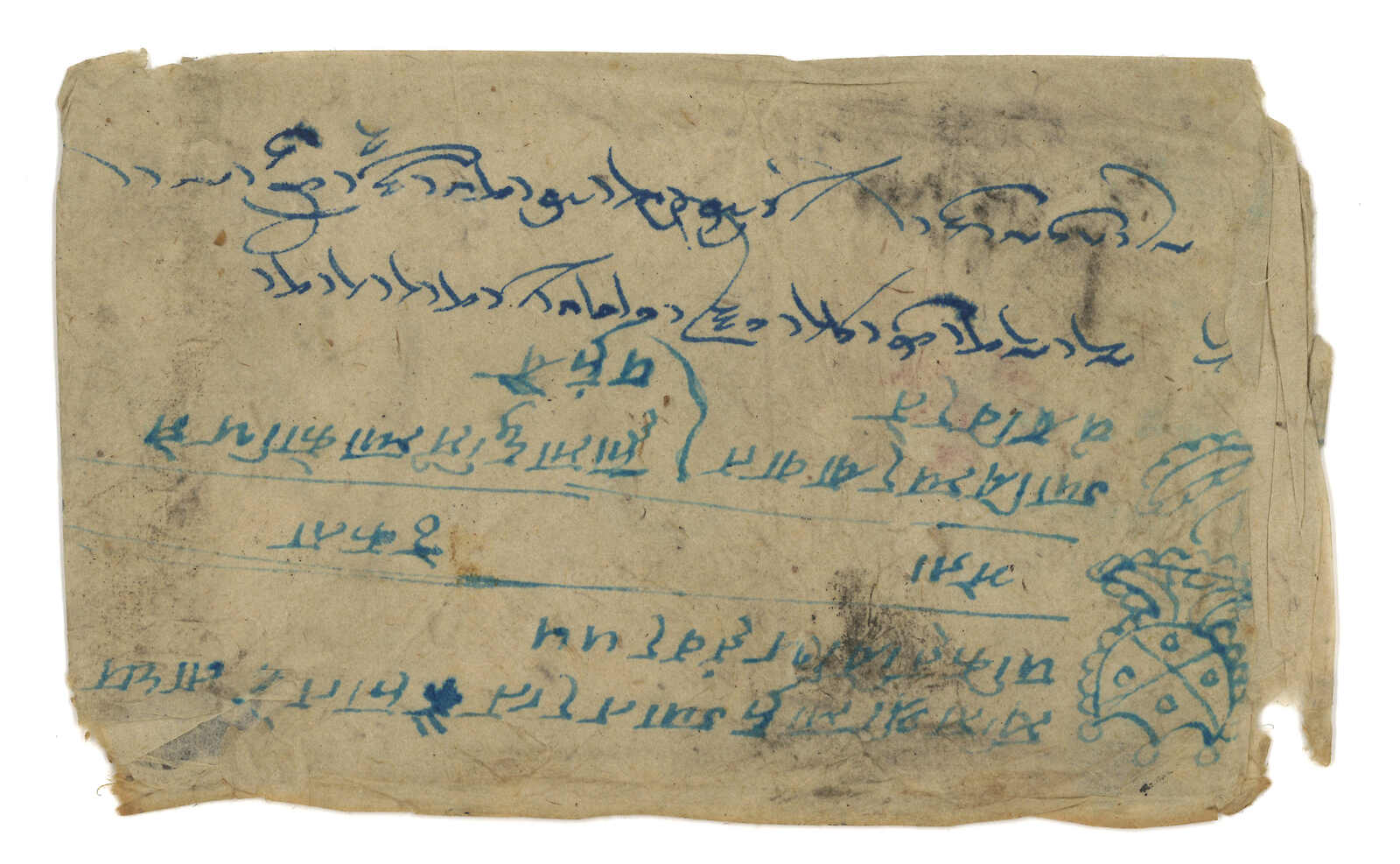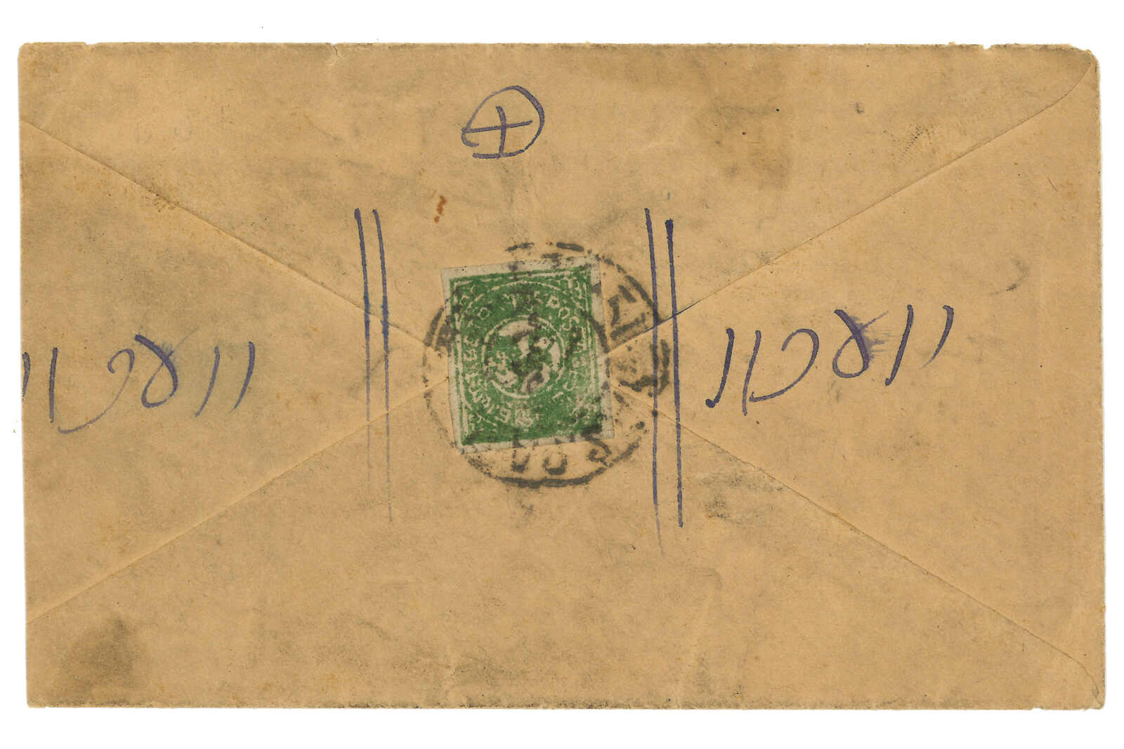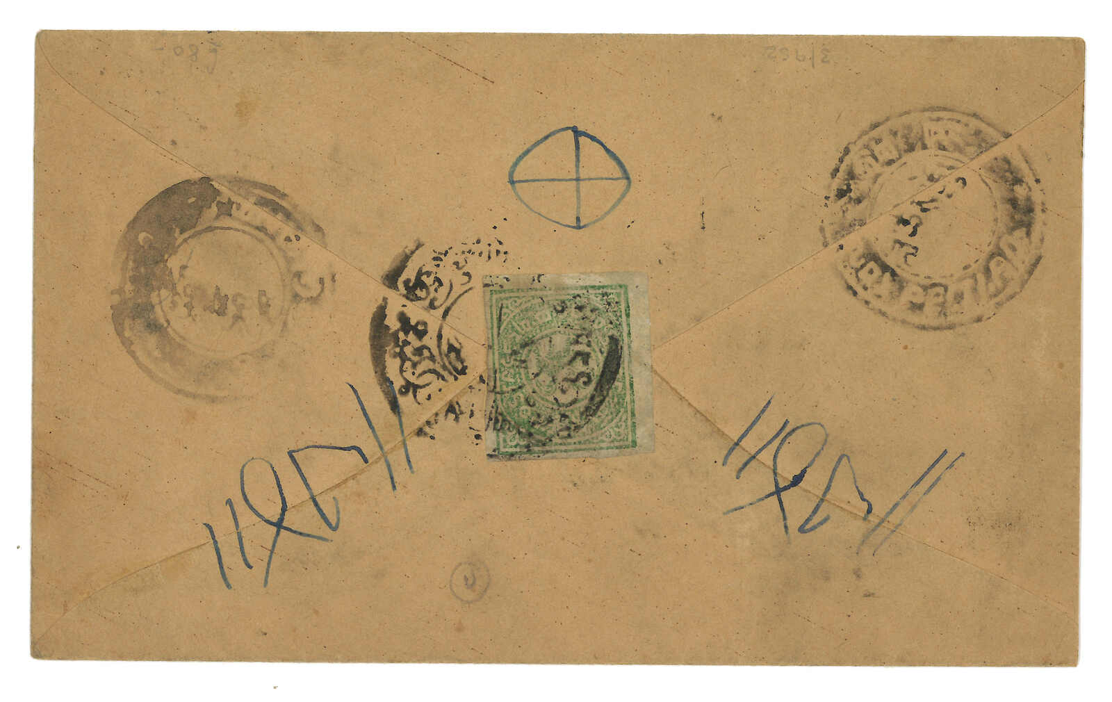 ca 1917 Shigatse to Lhasa, f.w. Tibet 1st issue bright emerald 1/6tr on reverse, tied by Shigatse circular h.s. Transit Gyantse, Penam, Pelti. Nice franking and cancellations.