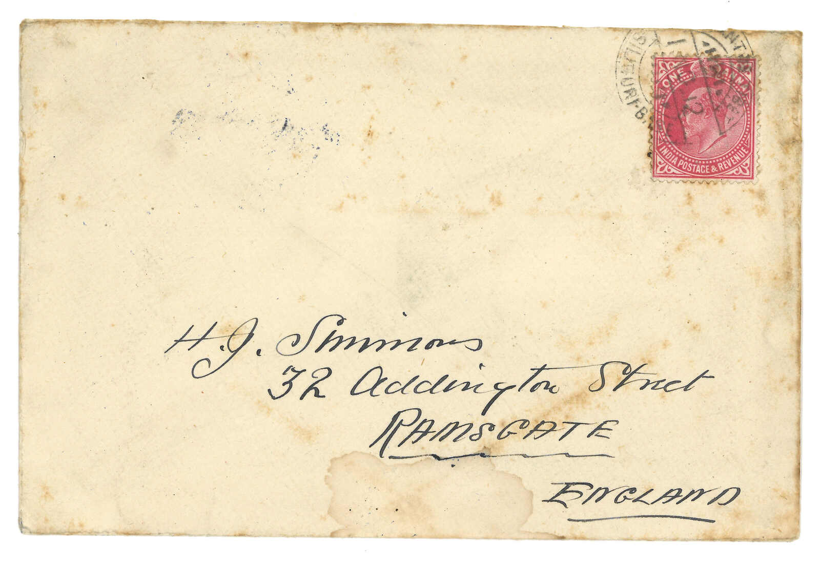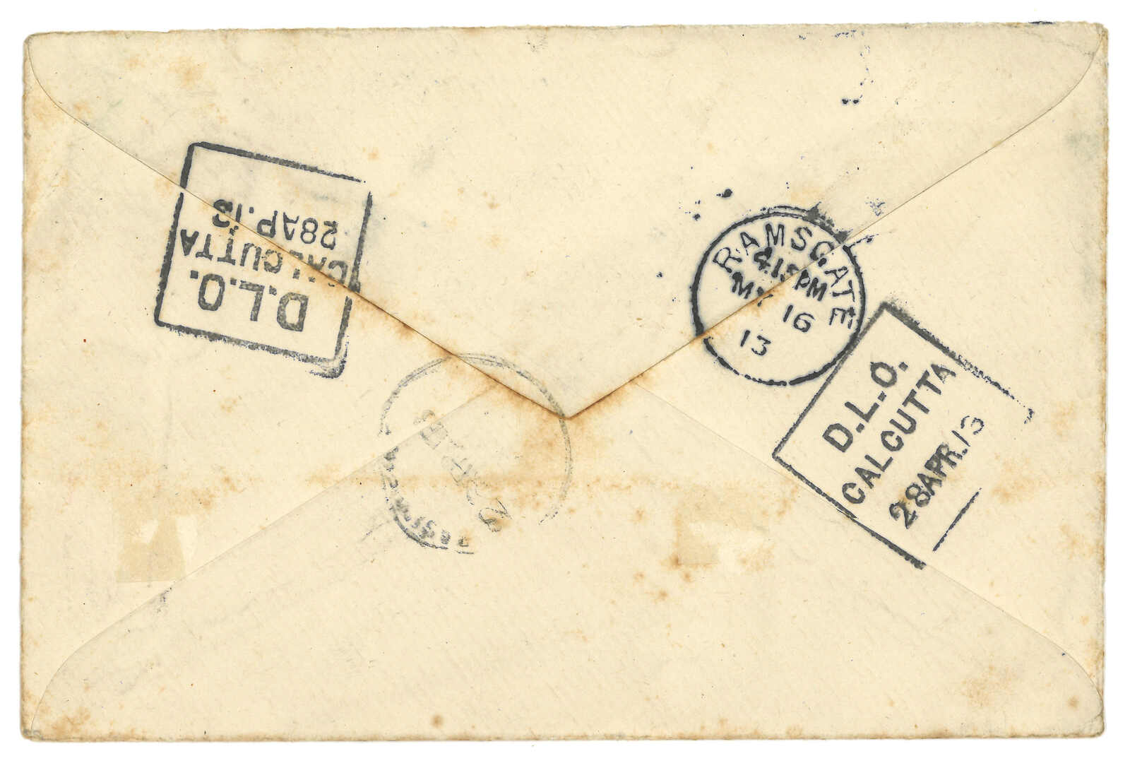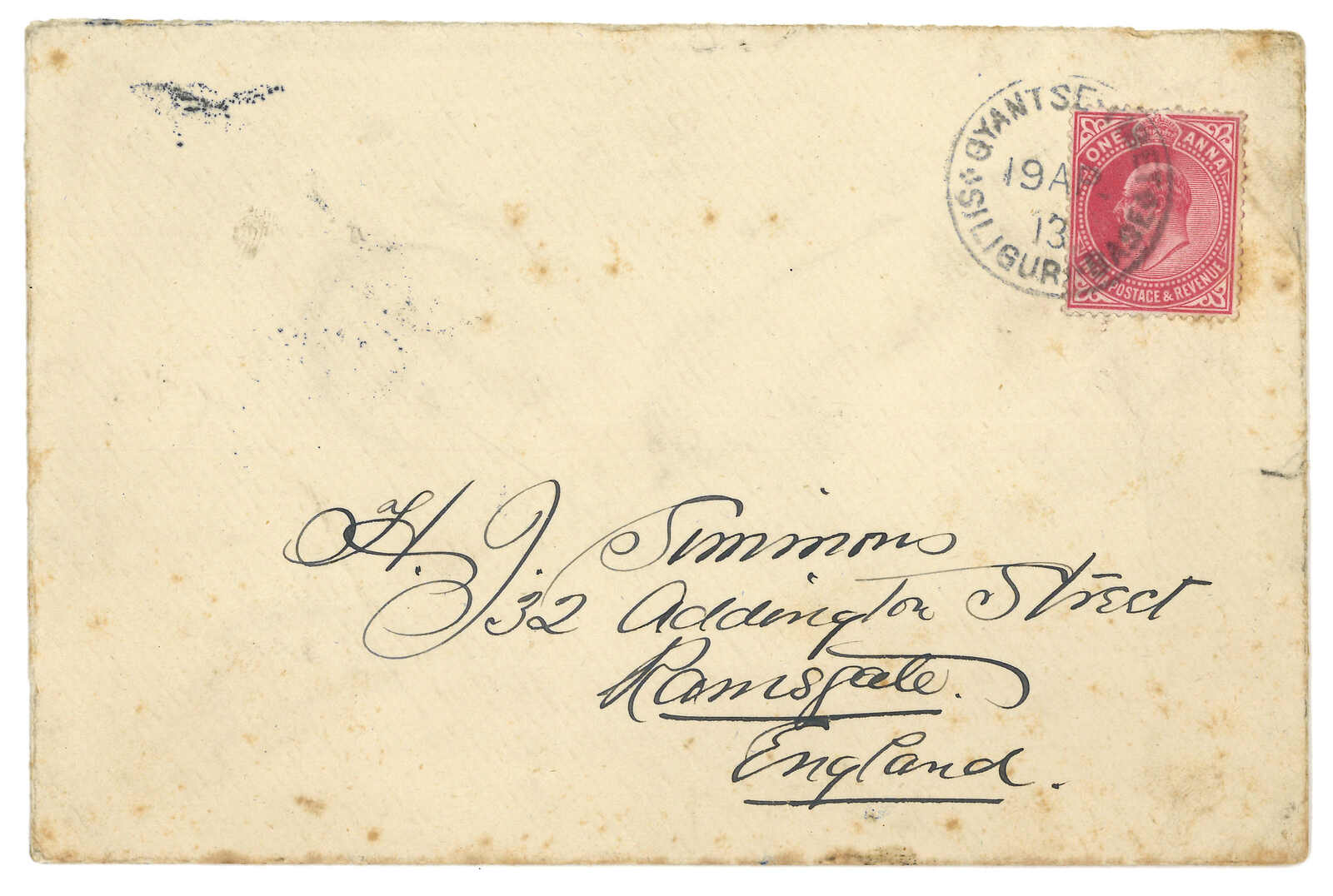 Calcutta”批示。無人認領,3.13離開江孜,抵加爾各答。4.18抵孟買死信局。由於英藏地方郵票不被國際承認,英印郵局承擔了西藏對外通信的部分功能。但同時印度與西藏沒有正式通郵關係,郵件交換需經中間人安排。沒有中間人的進口信件只能退回。(Image 1)