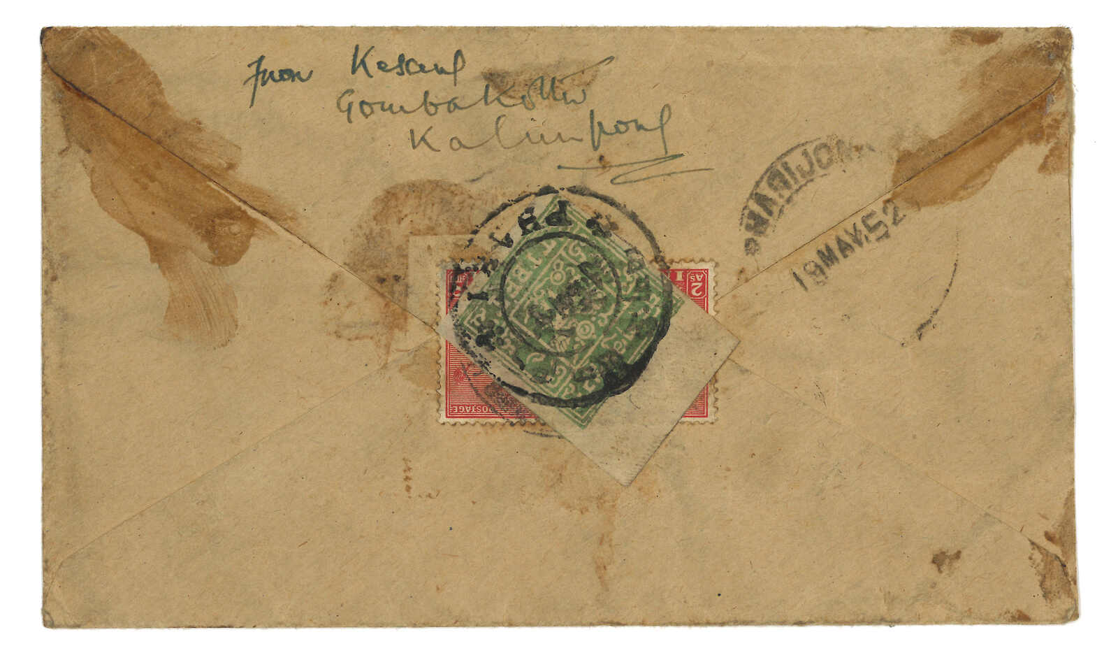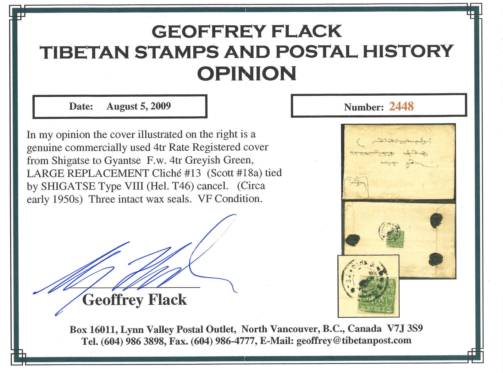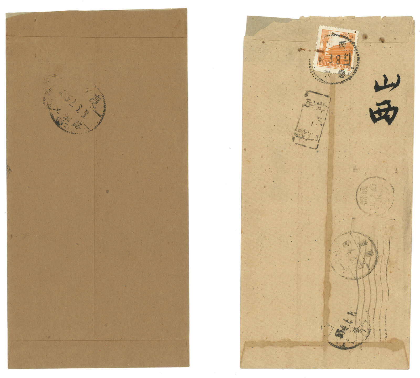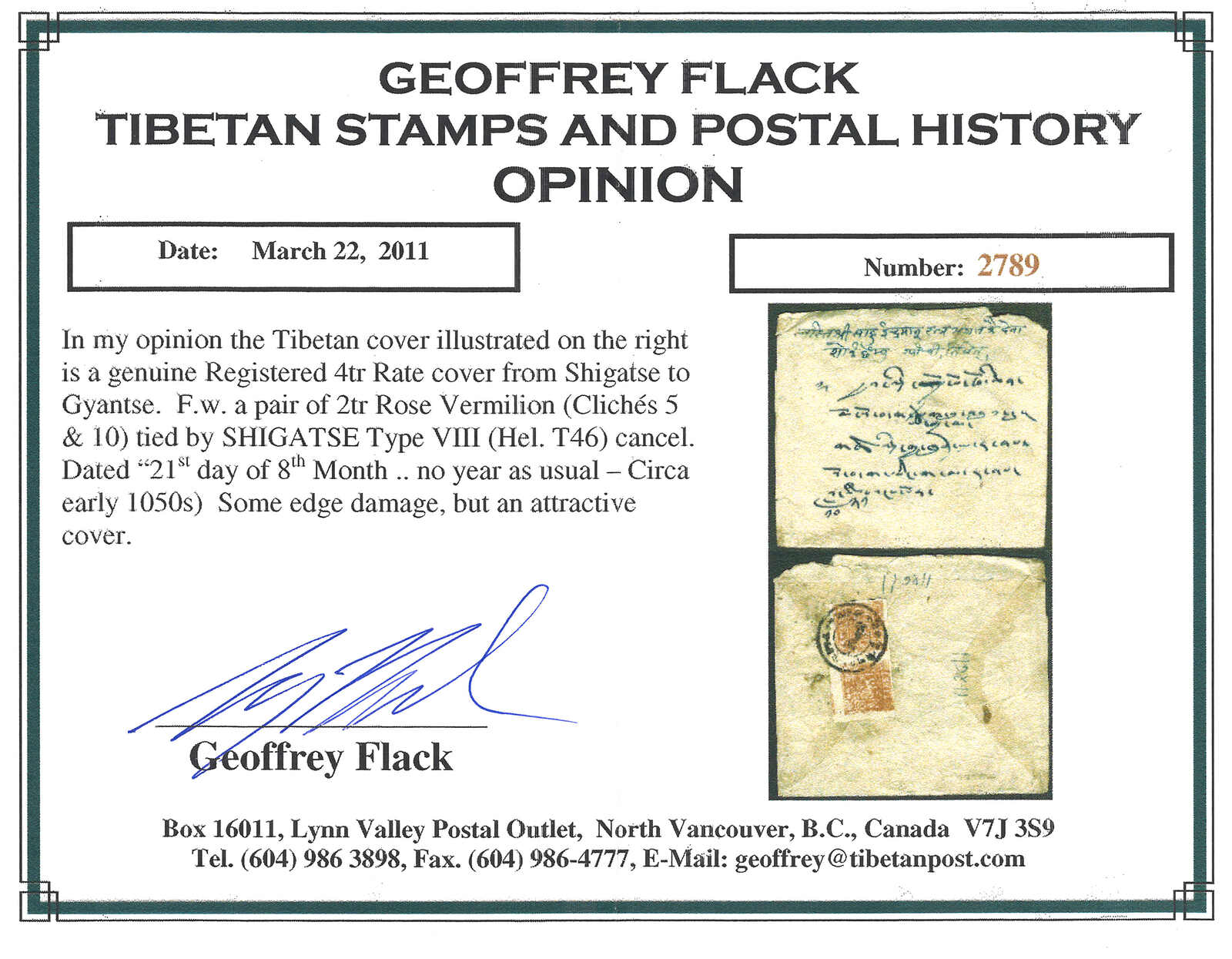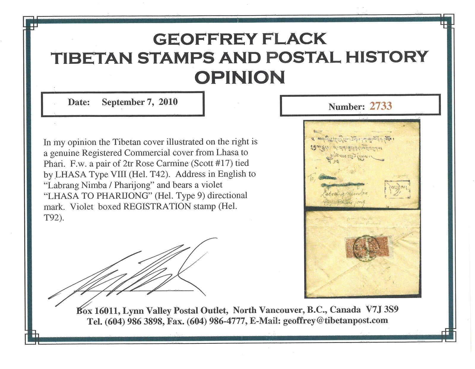 1954年一對由美國及奧國進口拉薩之封片,前者寄郵商Tuladhar,混貼西藏獅圖第二版票。後者鈐B9型彗星日戳。為西藏地方郵政及英印客郵局之晚期例子。(Image 1)