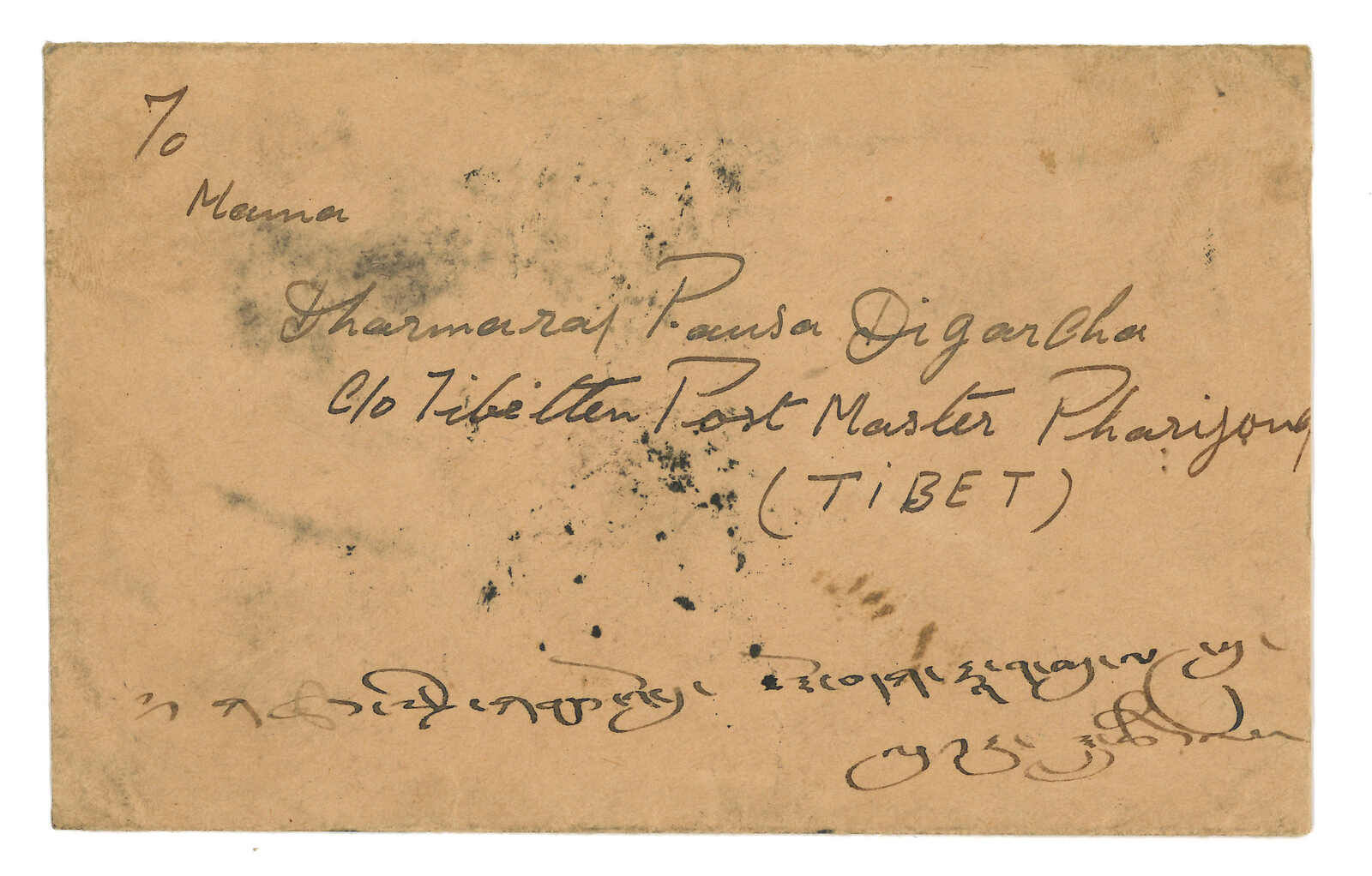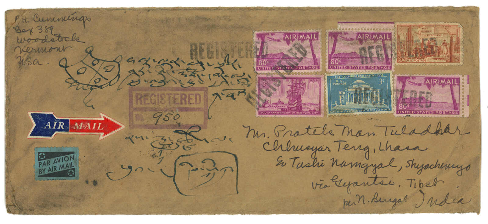 1953 United Nations, New York to Lhasa, Tibet via Pharijong. Franked with United Nationsstamps tie by United Nations, New Yrok cds (29 Jul), arrived Pharijong (18 Sep). Privately carried to Lhasa.