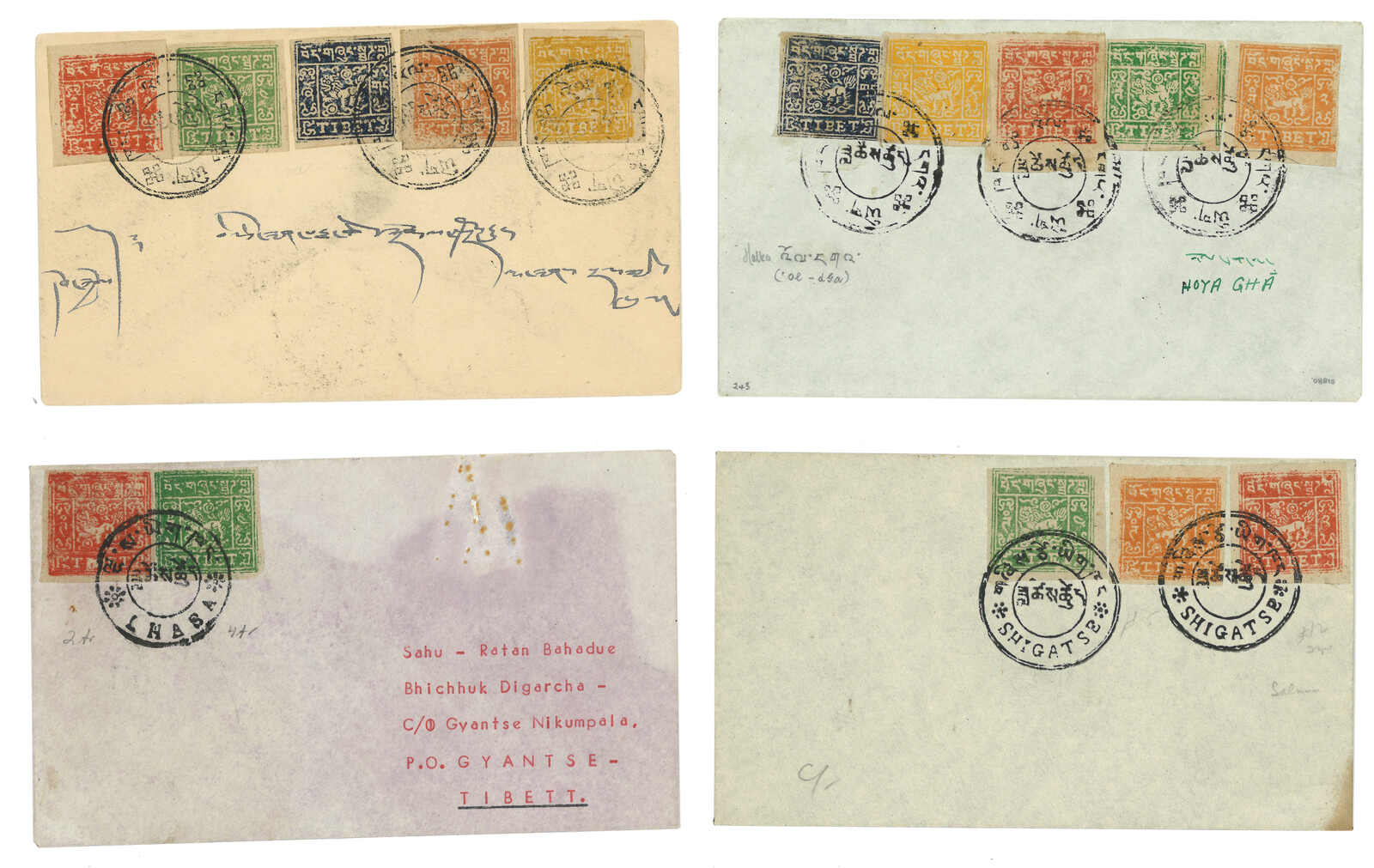 一組四件貼用西藏獅圖第三版票之集郵封,帶少見之沃卡宗、西格孜圓戳等。(Image 1)