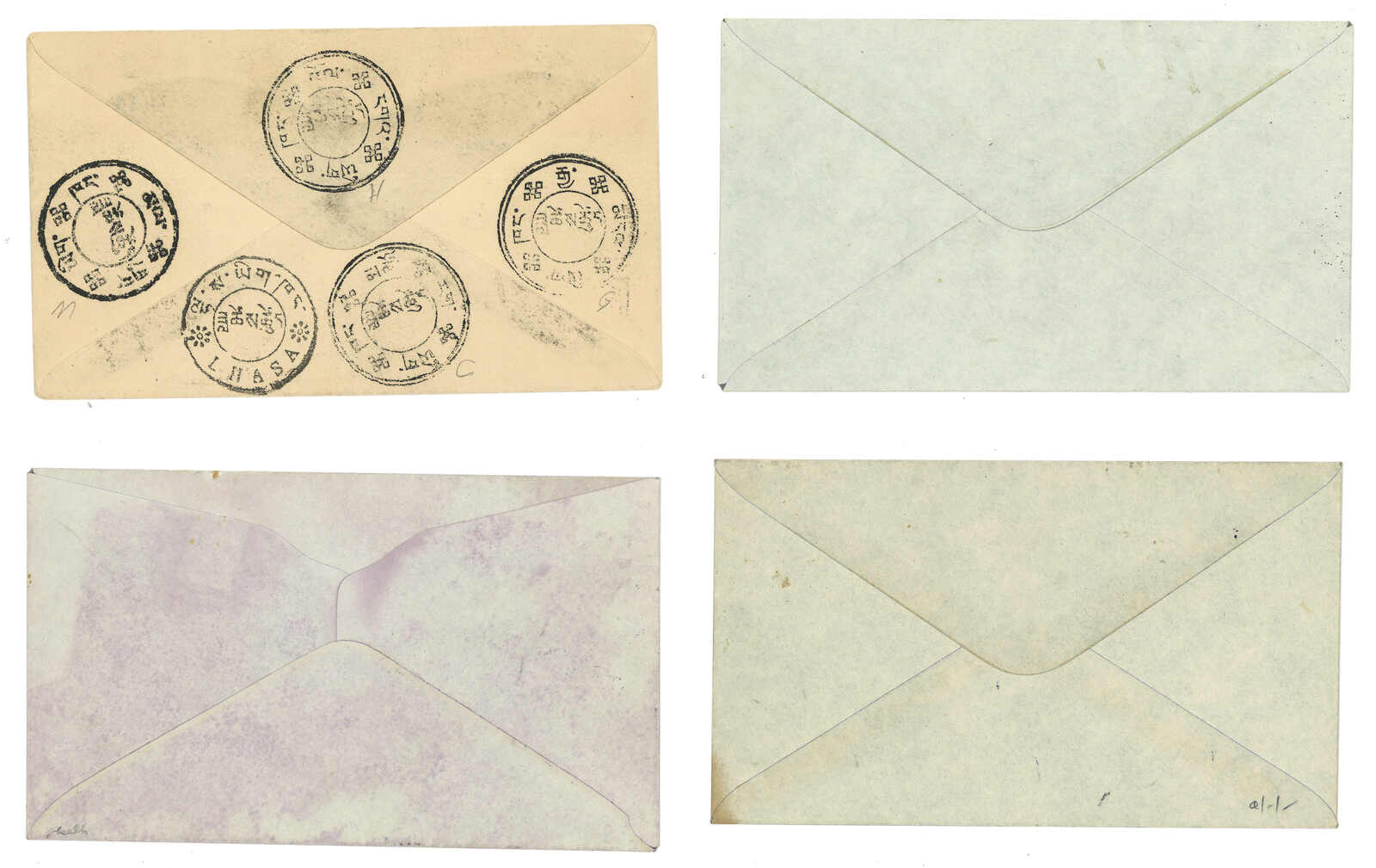 A group of 4 philatelic covers f.w. Tibet 3rd issues, featuring scarce Oga,Shigatse ciruclar h.s. etc.