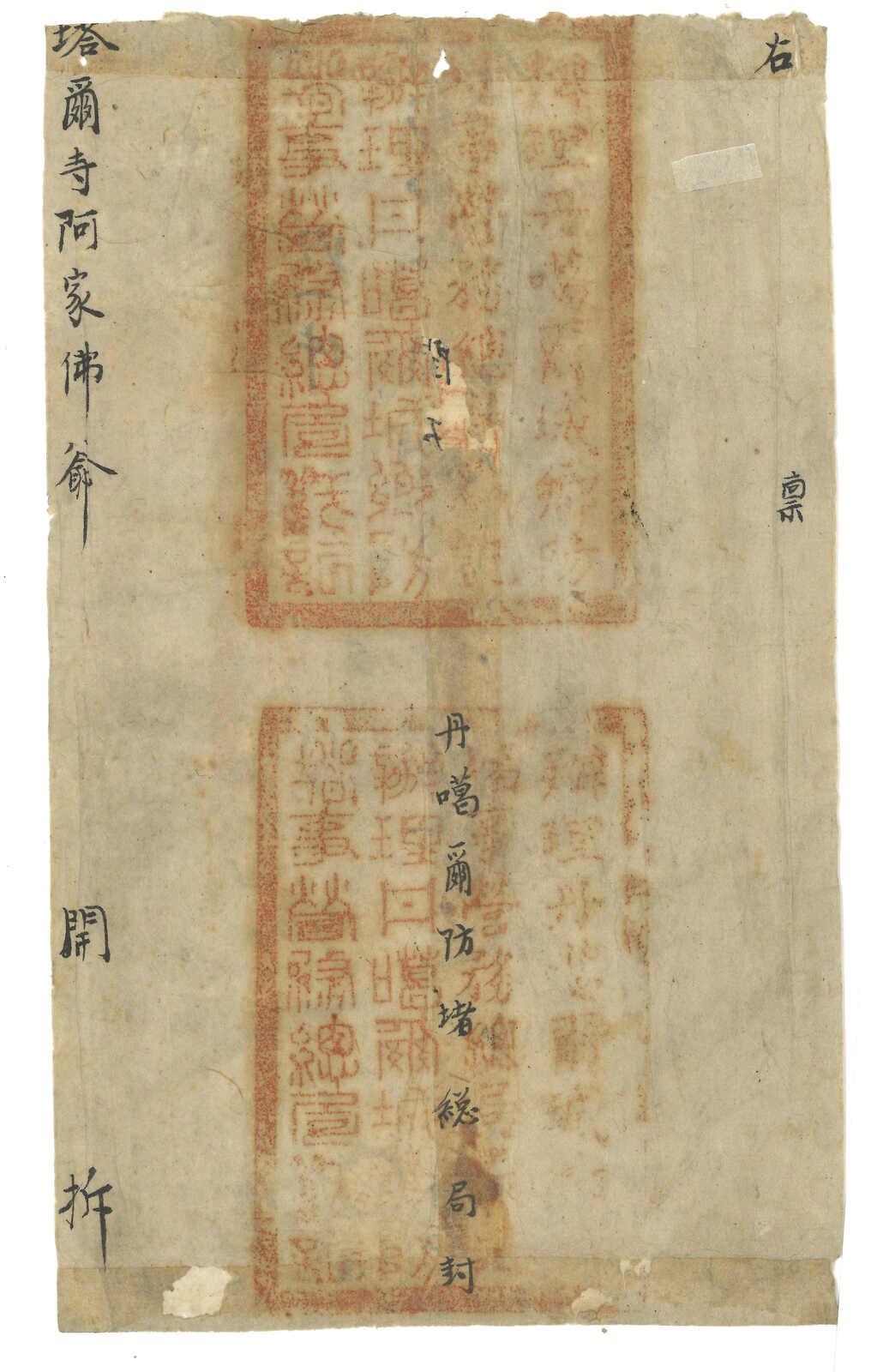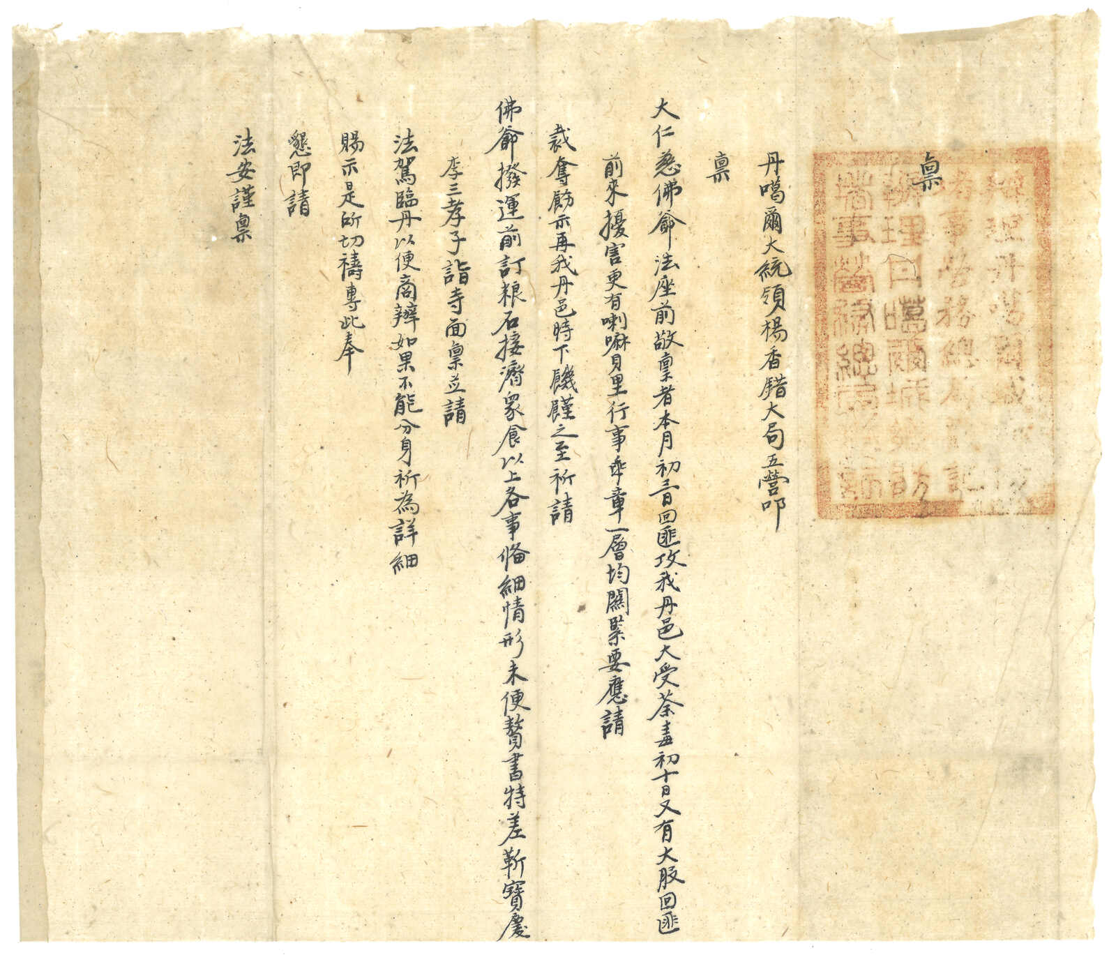 同治四年(1866)一件由丹噶爾大統領寄出之信件,鈐紅色官印,少見。(Image 1)
