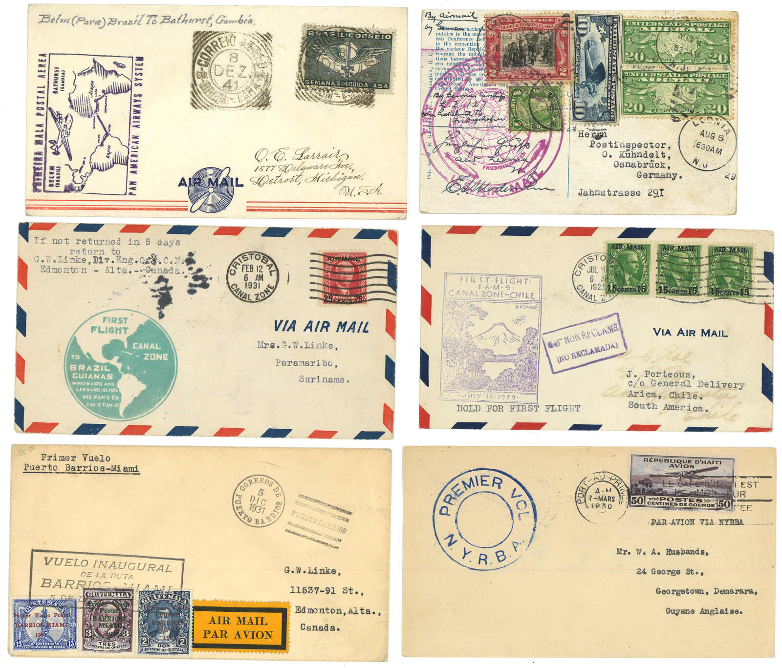 750 cover image1929 "Round the World" PPC sending from USA, plus a group of 8 South American commemorative airmail covers, Please view.