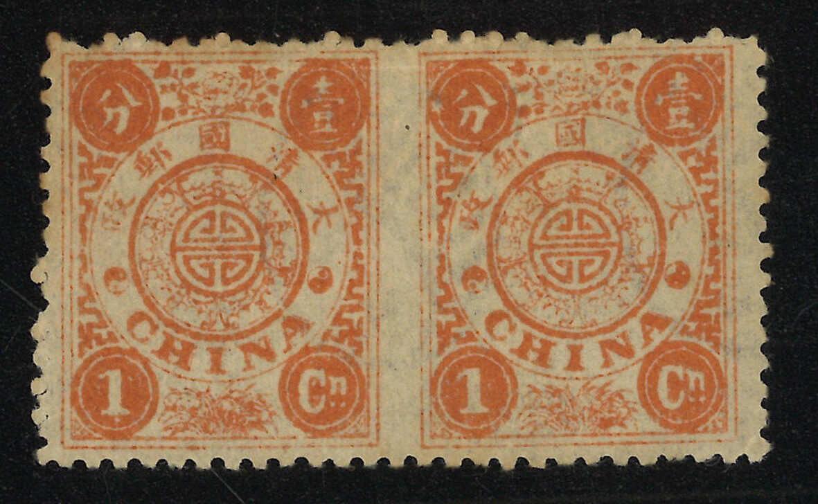 63 */pair image1894 Empress Dowager first printing 1ca horizontal pair, imperf between variety. Unused. Hinged. Very Fine.