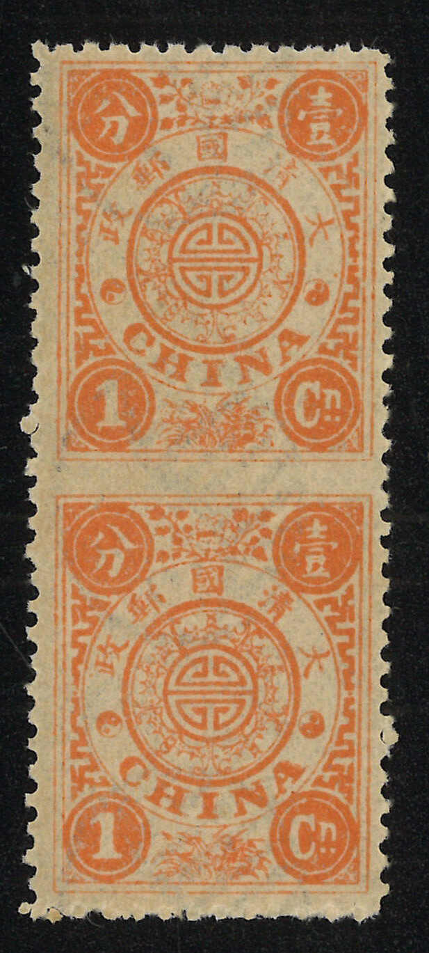 64 */pair image1894 Empress Dowager first printing 1ca vertical pair, imperf between variety. Unused. Never Hinged. Very Fine.