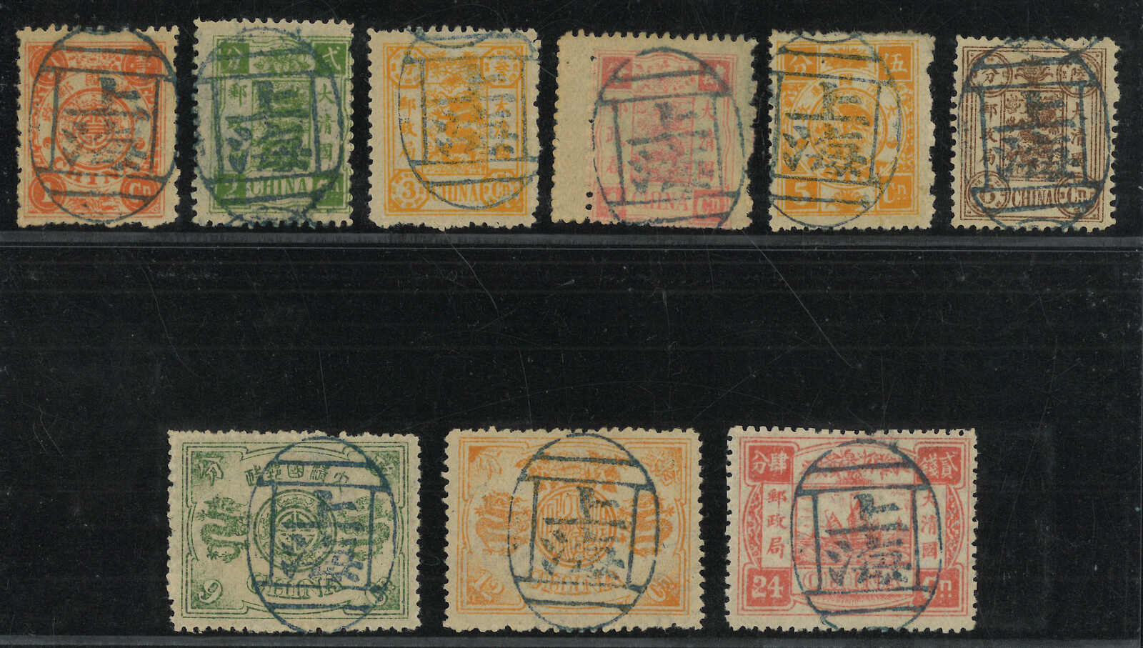 70 o image1894 Empress Dowager first printing 1ca to 24ca, cancelled by Shanghai seals, very fine central strikes. Chan 22-30.