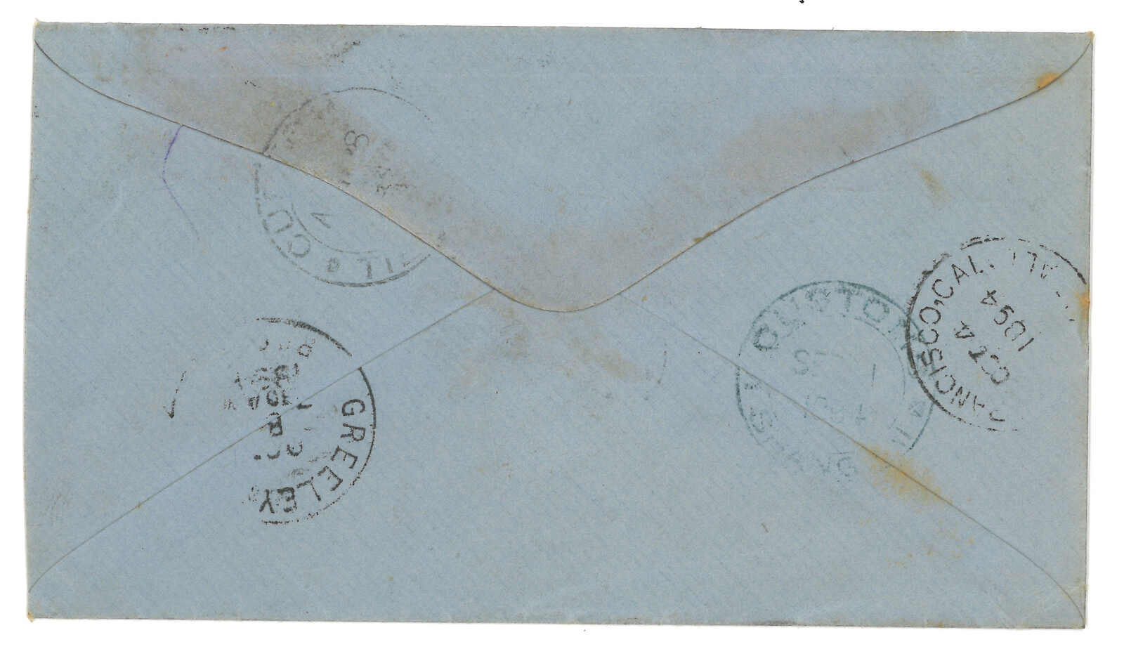 1894.8.28 美國駐天津領事館寄美國,背鈐天津海關始發日戳。9.1經上海海關。貼美國票5分,銷上海美國郵政代理IV型雙聯日戳。10.4經三藩市。抵Greeley。(Image 1) (Image 2)