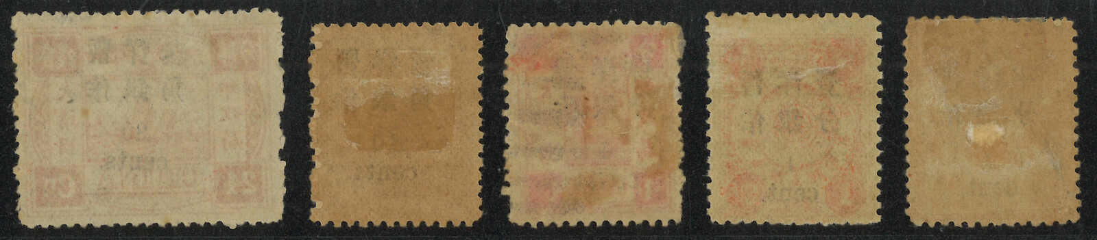 104 */o image1897 Empress Dowager small figures surcharges ½c on 3ca, 1c on 1ca, 4c on 4ca, 10c on 6ca, and 30c on 24ca, all without watermark,