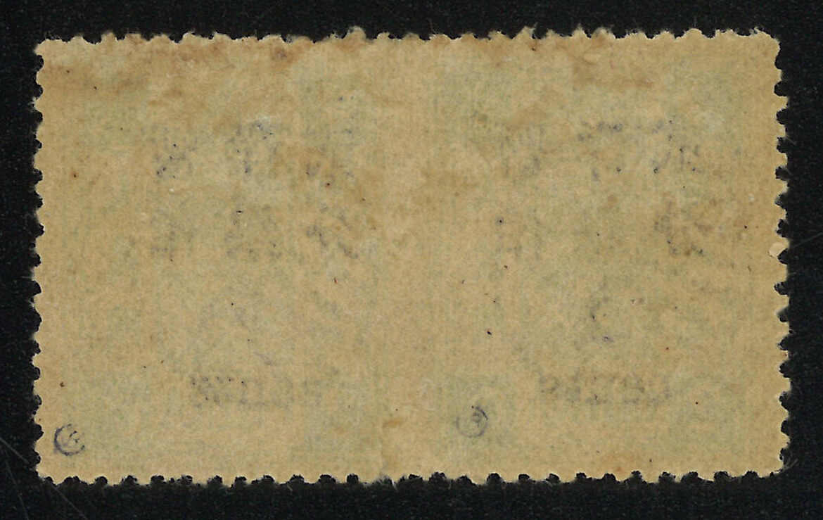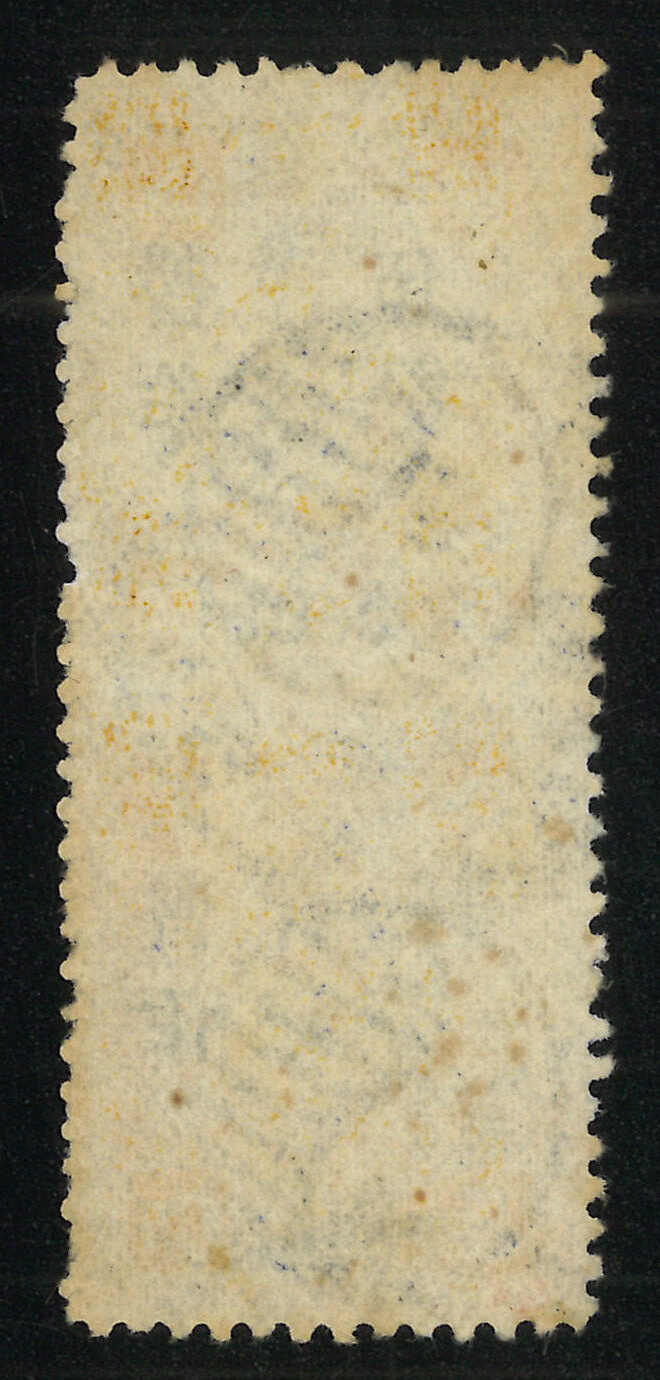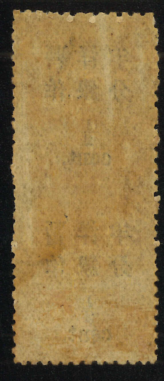 1897年5分蓋5分銀直雙連,小字加蓋,中縫漏齒,銷汕頭海關日戳。漏齒變異之雙連記錄中僅見少於十件,極為難得。(Image 1) (Image 2)