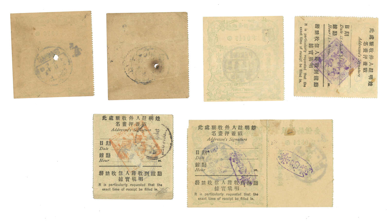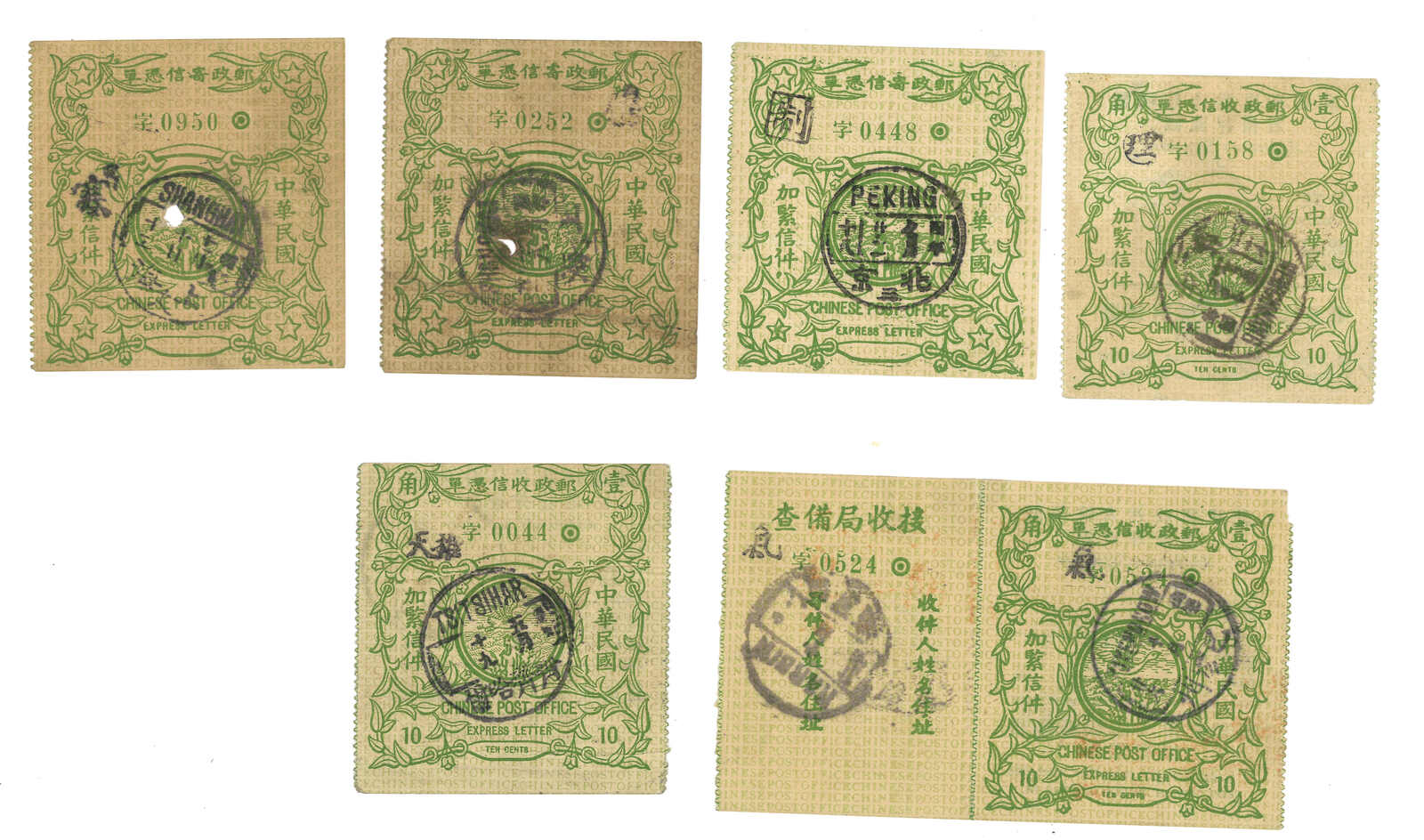 382 o image1913-1914 a group of 5 used ROC express letter stamps. One applied with Tsitsihar cds which is rather scarce.