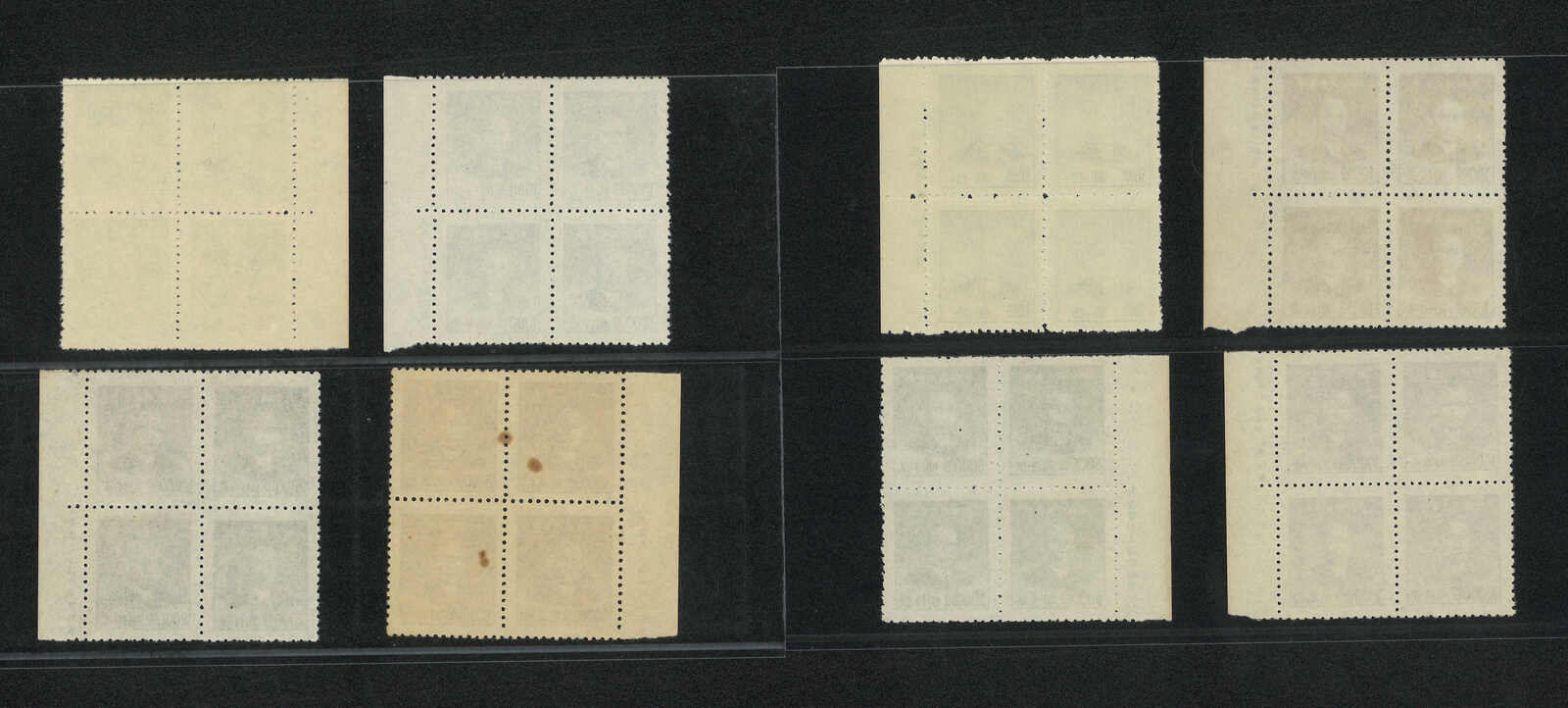 500 */bof image1949 Shanghai Central print and Dah Tung flat plate print SYS Gold Yuan block of 4 in a group of 8, all with imprint margin. MNH.