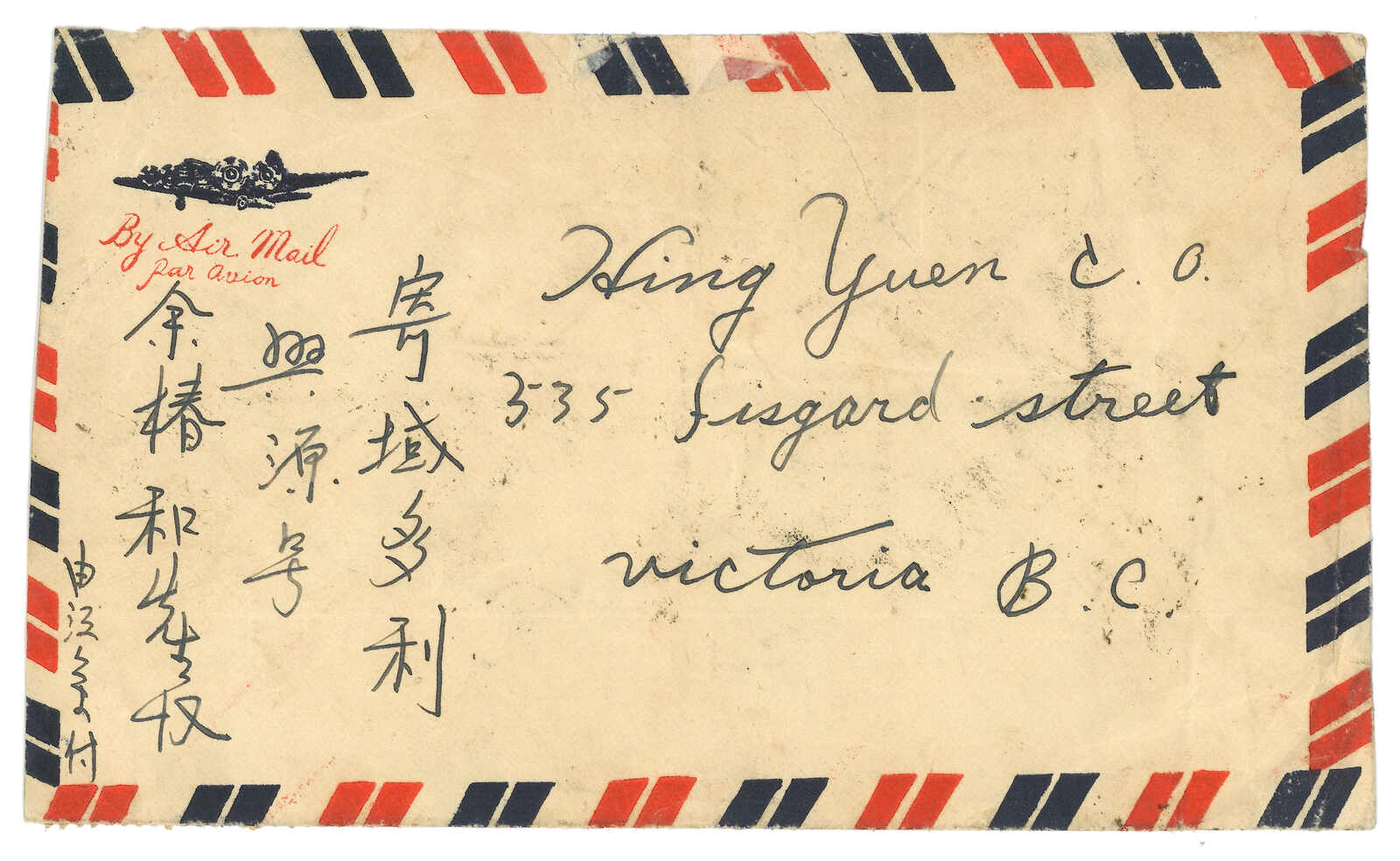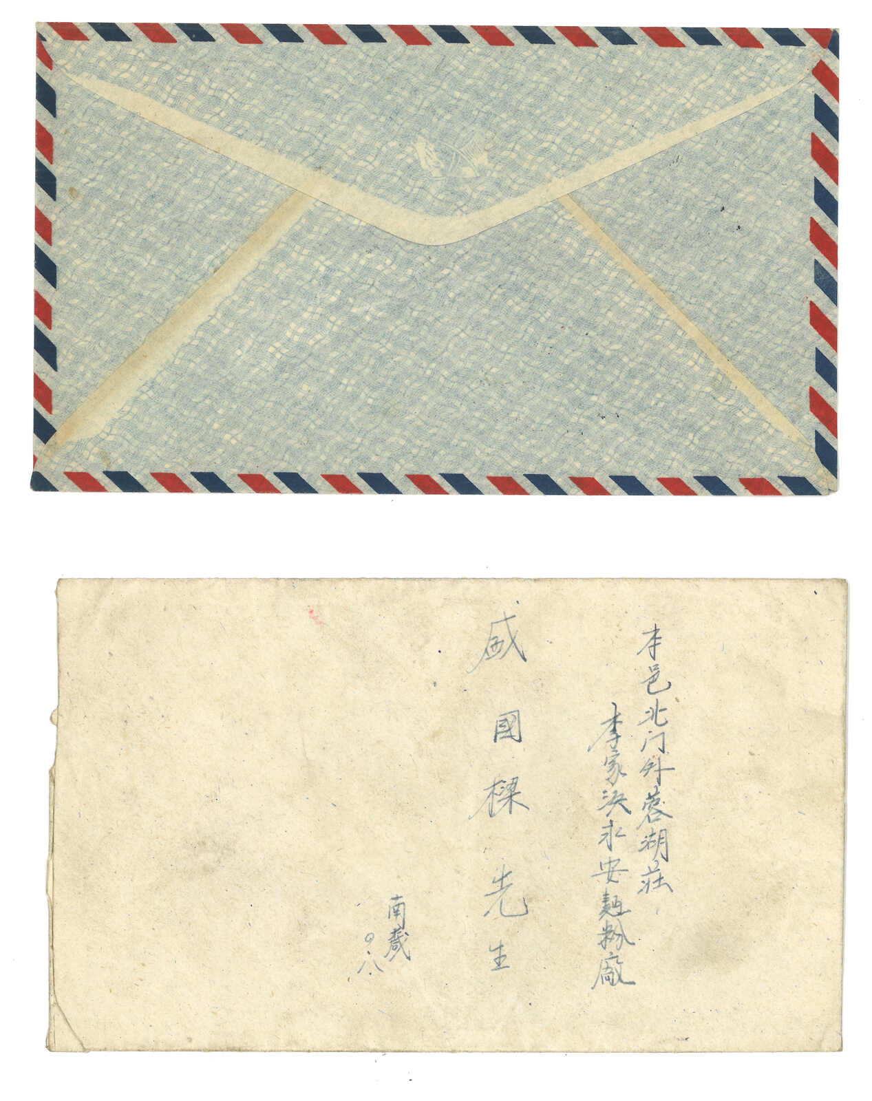 511 cover image1949 Headquarter of the Combined Logistics Command from Canton (16 May) to Taipeh, f.w. Domestic Letter unit stamp on reverse, tied by Canton bilingual cds. On front showing “Letter of Military Family” circular seal in red. Arrived Taipeh (18 May). Cover opened at top.