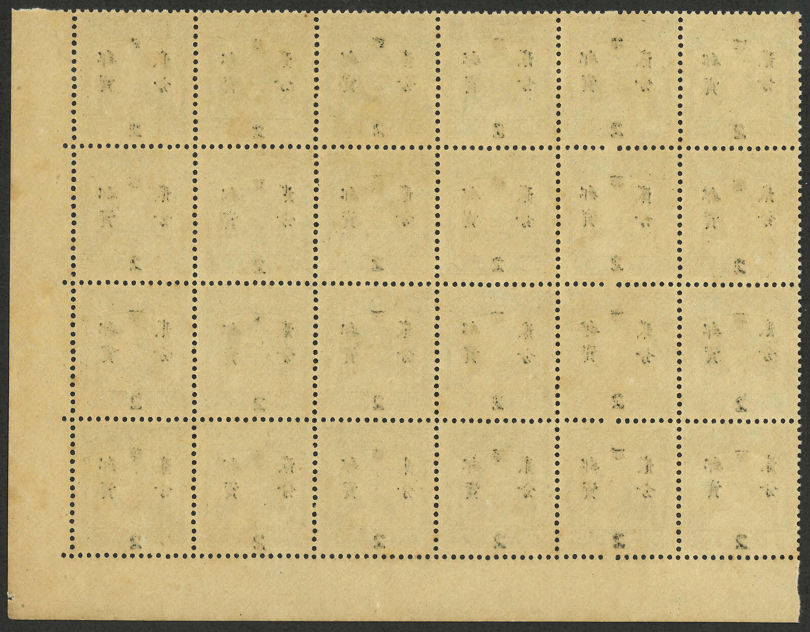 510 */bof image1949 West Szechuan machine surch Silver Yuan 2c on London 4th Print SYS $500 in block of 24, with bottom rigth corner margin (Chan S139), MNH with original gum. Very Fine.