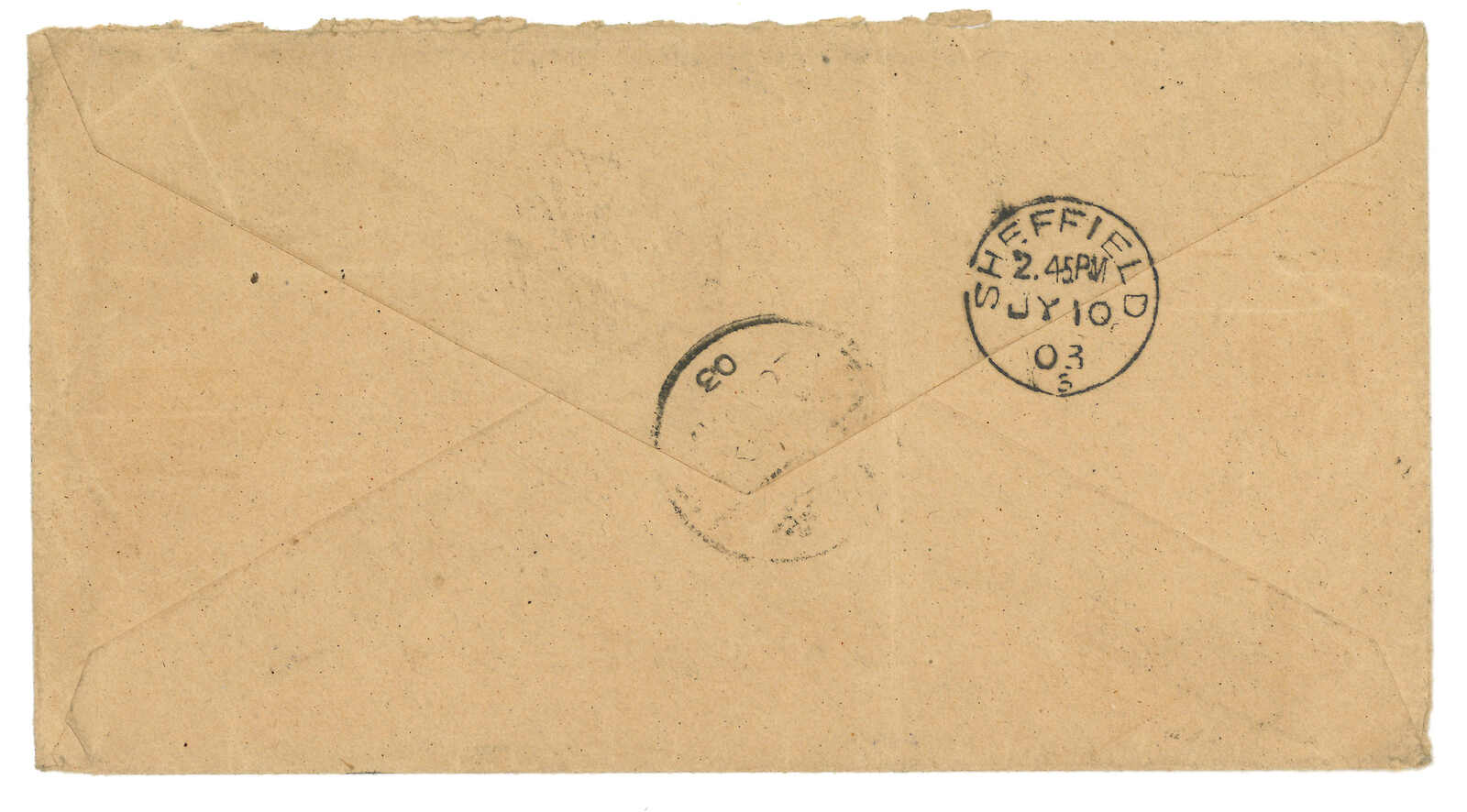 1903.6.18 天津經西伯利亞寄英國,貼蟠龍1角,銷天津半切漢英日戳。經牛莊。加貼軍徽圖加蓋KITAI 10戈比,銷營口(牛莊)俄軍13局T&S 1型日戳(6.7)。7.10抵Sheffield。(Image 1) (Image 2)