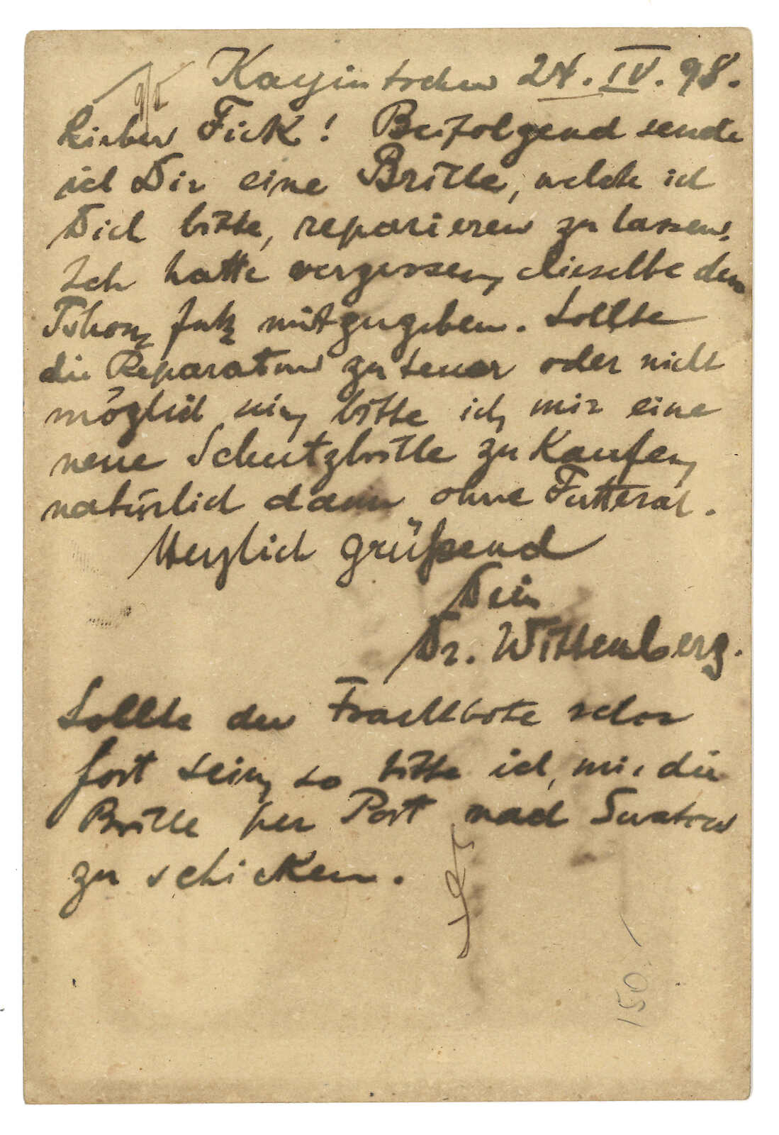 1898 Swatow (6 May) to Mr. W Fic of Basel Mission, Hong Kong. ICP 1st print PSC, tied by Swatow Dollar cds (dated intercalary 3rd month). Arrived Hong Kong (7 May). 2019 (Jun) Interasia, lot 2303. Ex- Steve Chazen. Dr. Sam Chiu