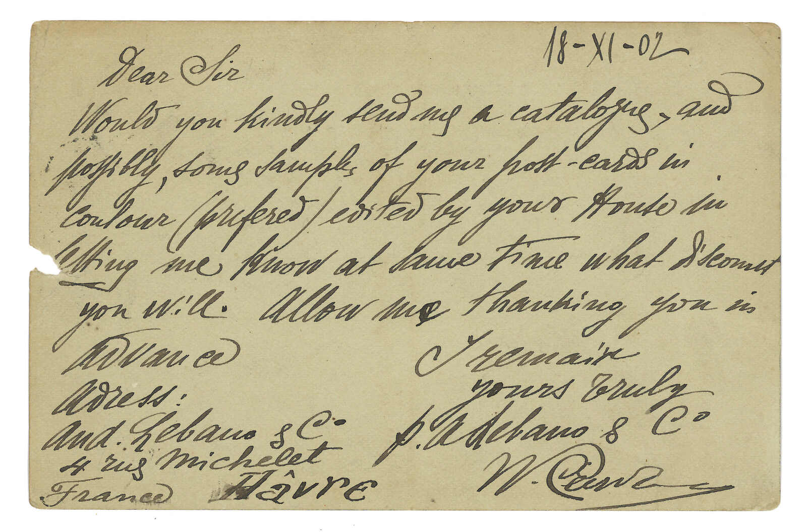 法國寄上海。法國10生丁郵資片,銷Le Havre日戳。12.23經上海法局落地。12.24抵上海工部郵局。右邊帶一小缺損,但不影響郵戳。(Image 1)