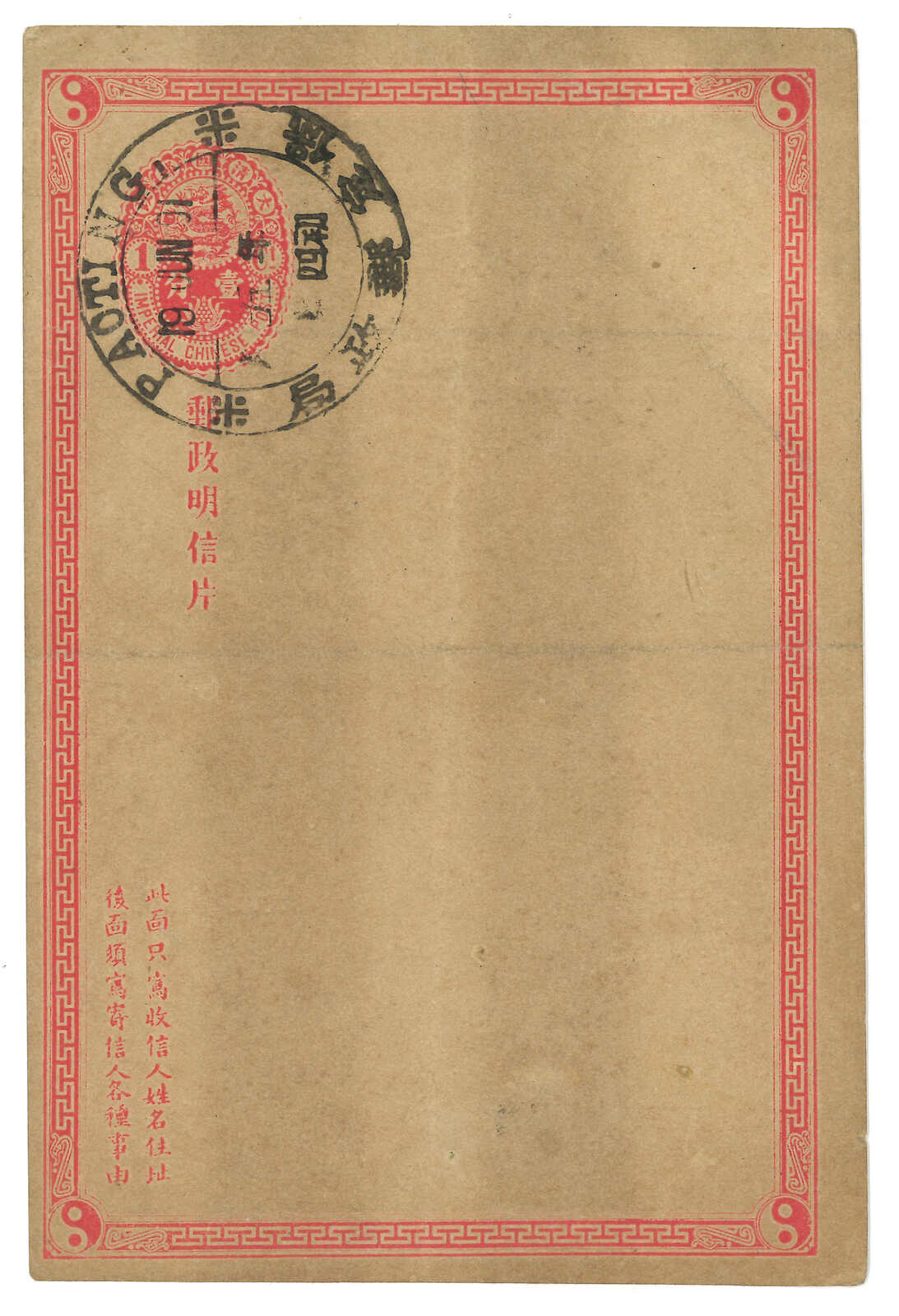 1901.6.19 大清第一版郵資片,銷保定大圓戳。(Image 1)