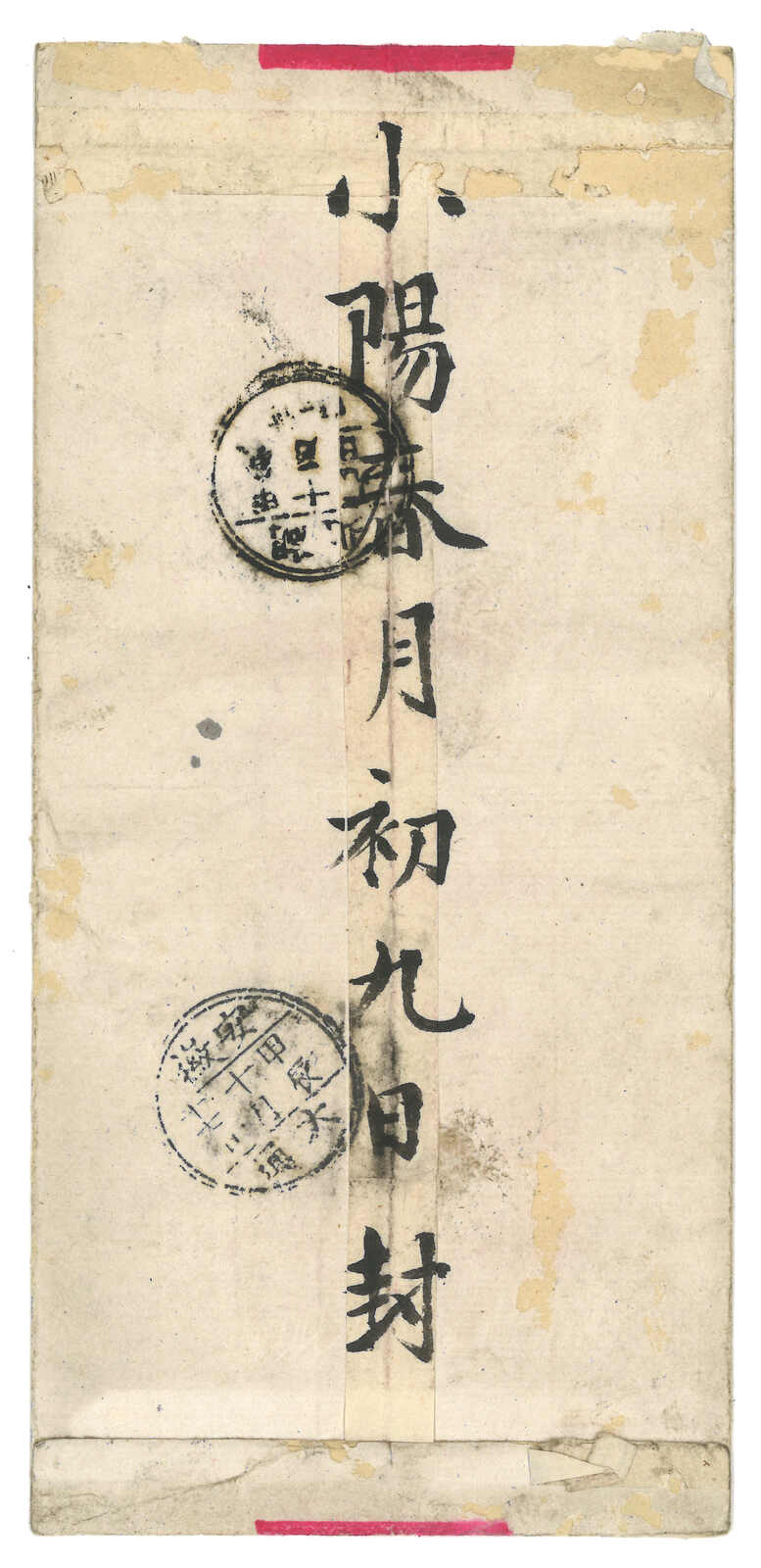 234 cover image1898 Customs Shanghai (17 Apr) to Customs Peking, returned to sender, f.w. Coiling Dragon 2x 5c, tied by Shanghai Dollar cds. Showing manuscrpt "Deceased" and "RETURNED TO WRITER" bilingual cachet. Returned to Shanghai LPO (28 Apr). Cover made of notebook paper. Scarce returned example.