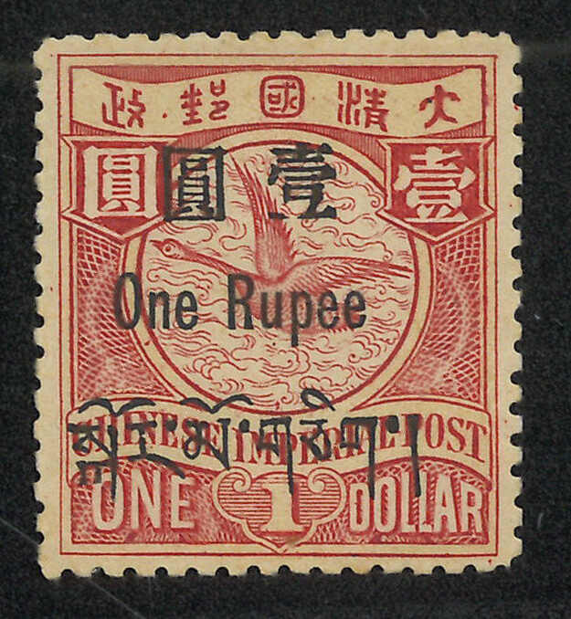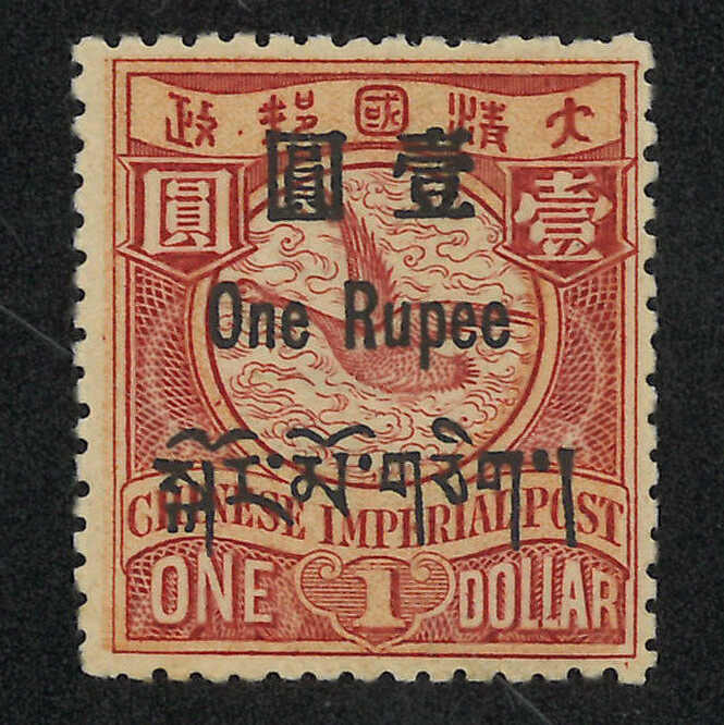1045 * image1911 Tibet surch 1r on Coiling Dragon $1, with retouched Chinese character "One" variety (Chan T10a). MH with dry gum.