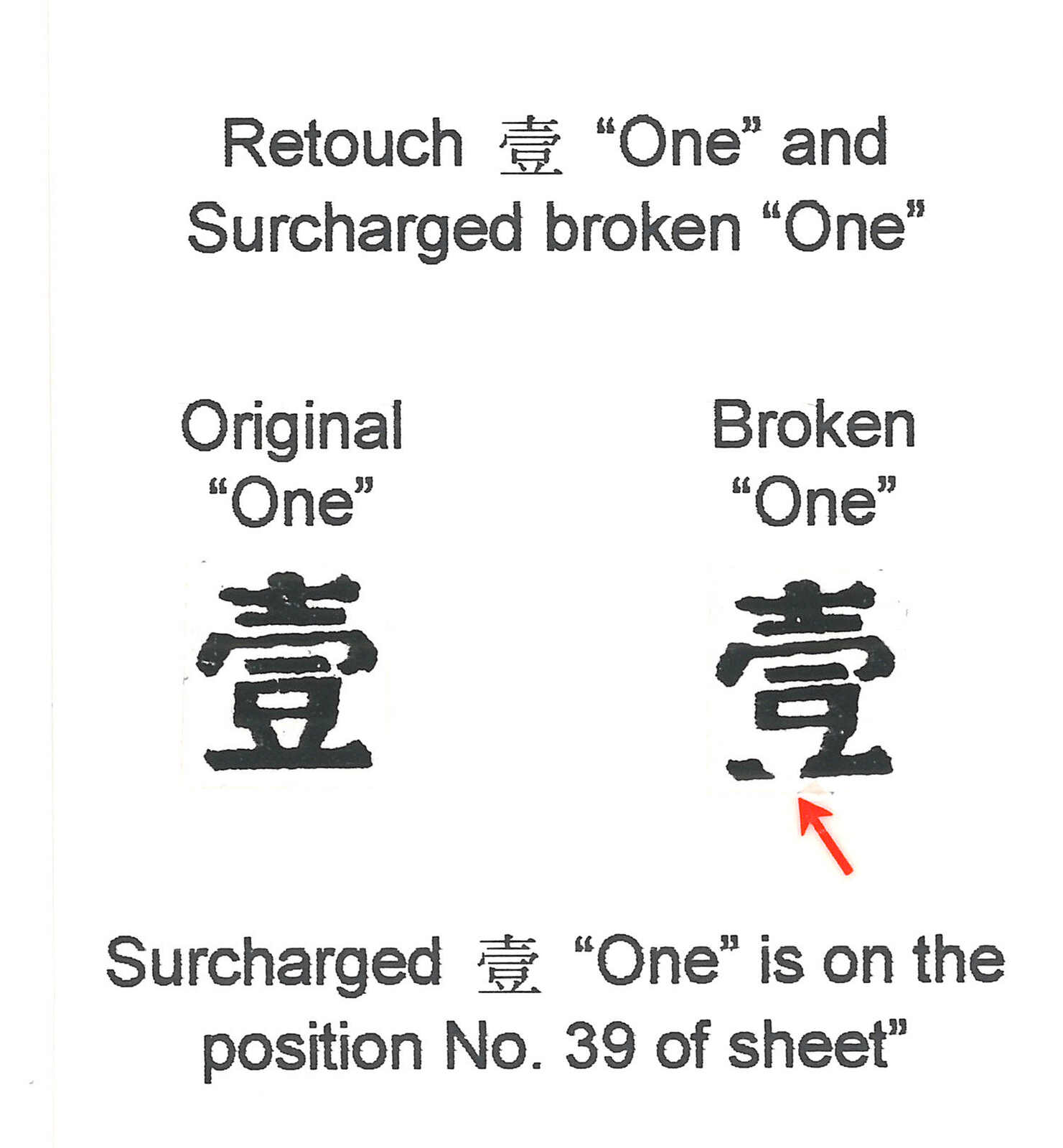 1911年西藏蟠龍改值1圓新,加蓋“壹”字破版。原膠無貼。(Image 1) (Image 2) (Image 3)