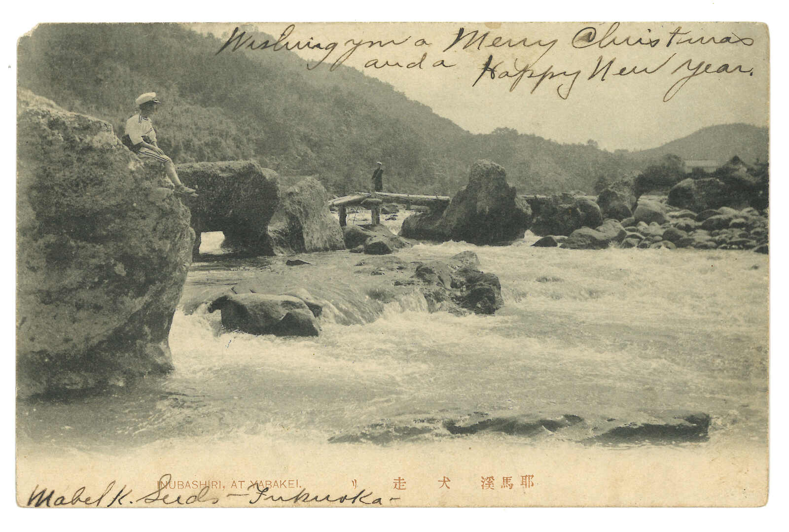 1905.12.15 日本寄興化Mary Thomas。圖片明信片,貼日本票1錢5厘,銷筑前日戳。12.15經長崎。12.19經上海清郵,12.23經福州。12.25抵涵江。(Image 1) (Image 2)