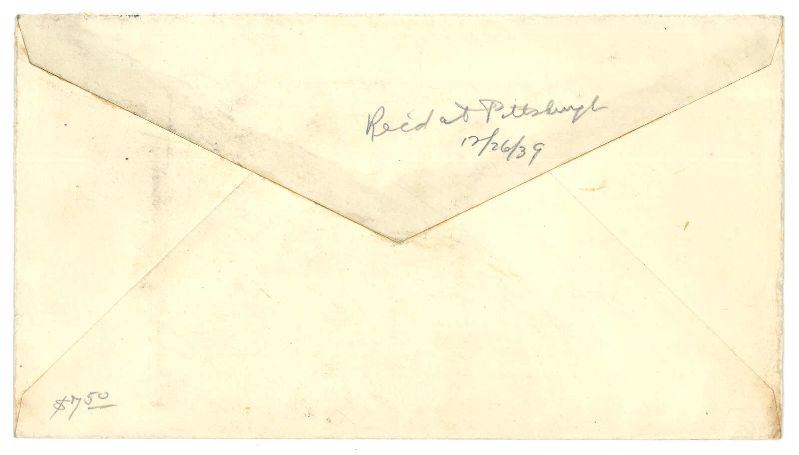422 cover image1939 Peiping (24 Nov) to USA, f.w. London Print SYS 25c, tied by Peking bilingual cds (showing date with Arabic numerals). Peking post office under Japanese occupation used cds dated with Arabic numerals, unlike the post offices in Free China.