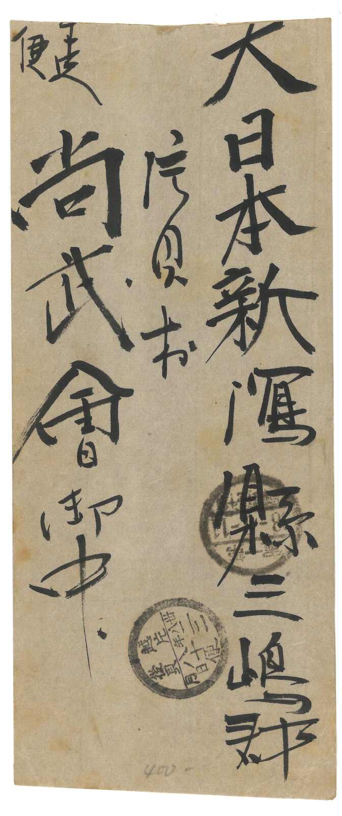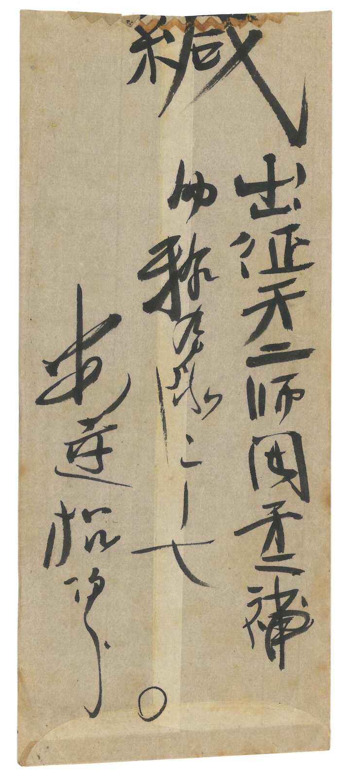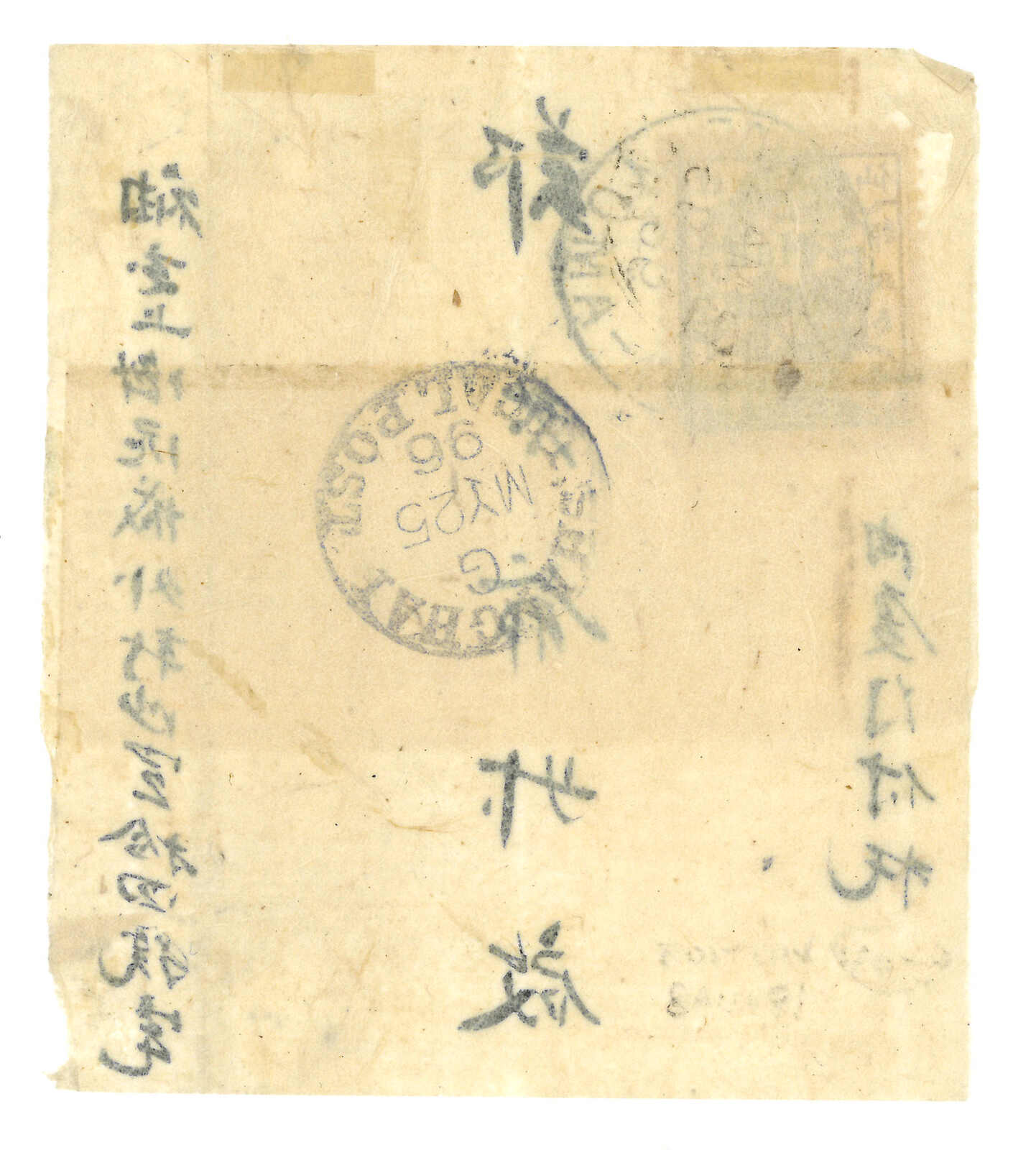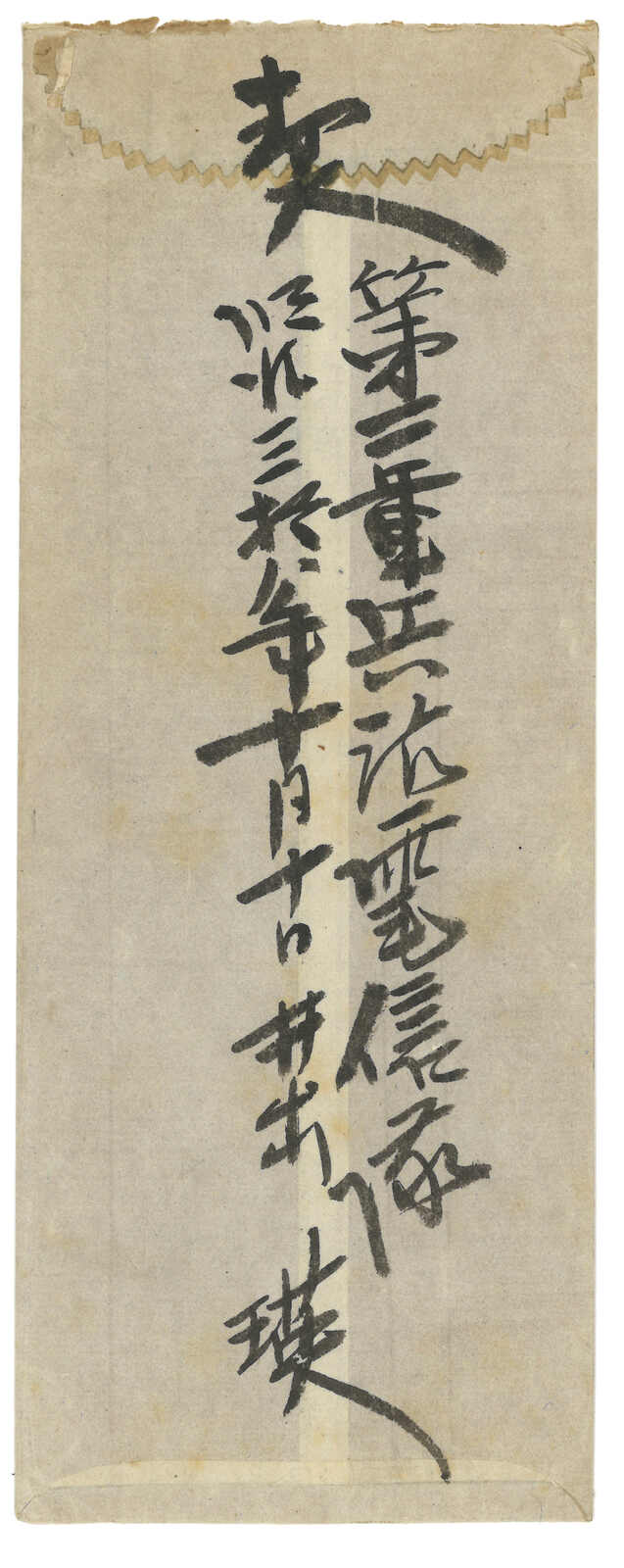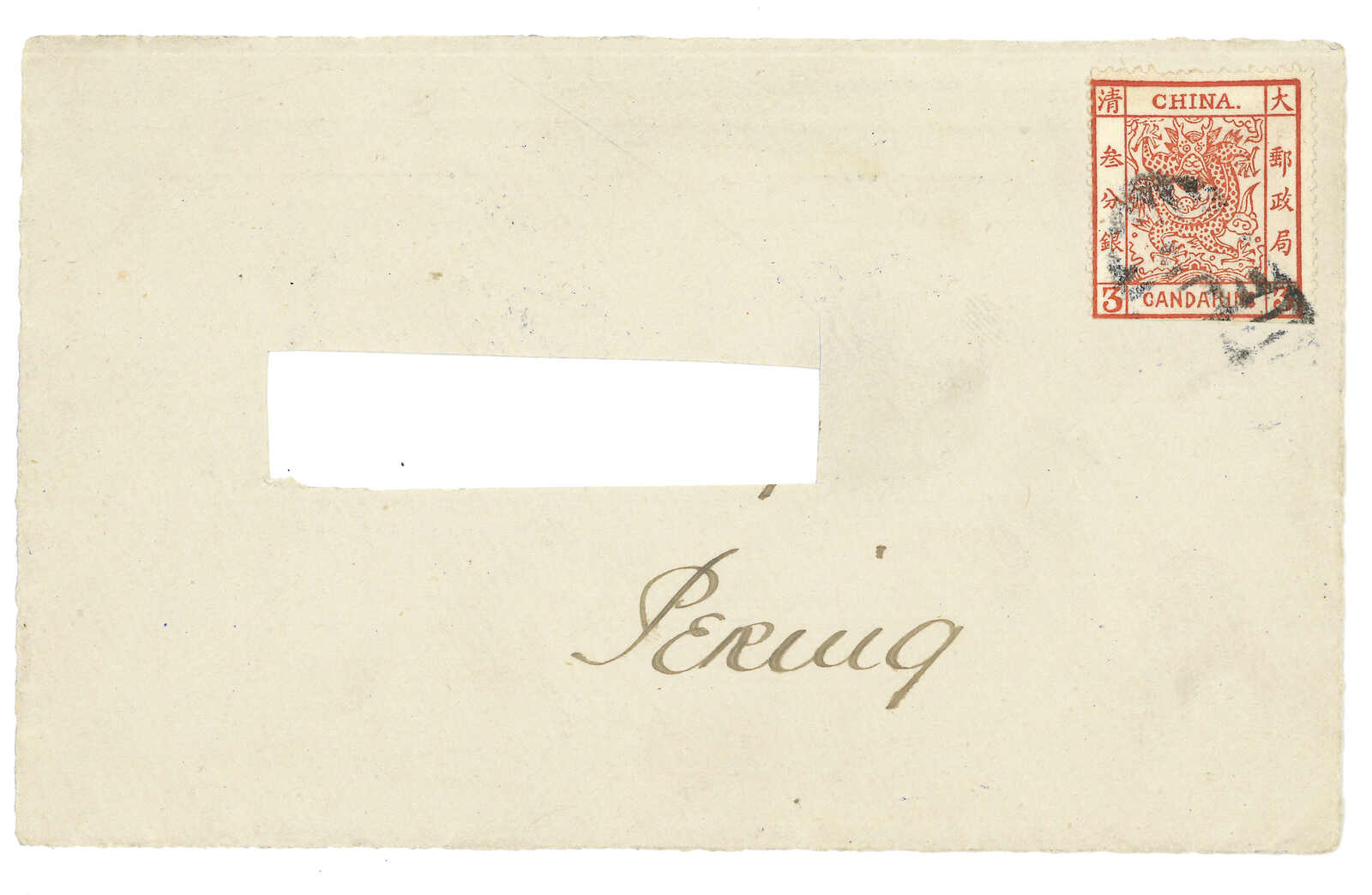 一件貼有厚紙大龍3分銀之封面,銷黑色漢文戳記。(Image 1) (Image 2)