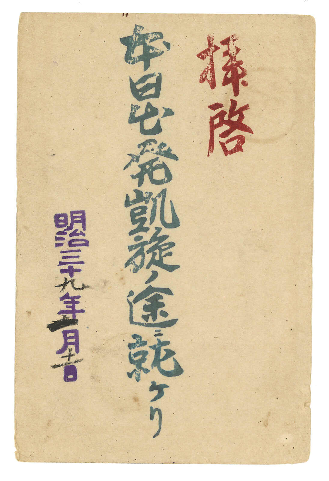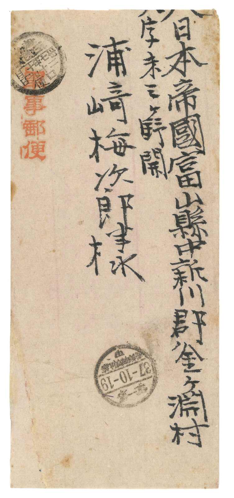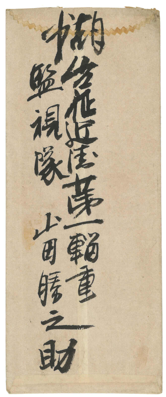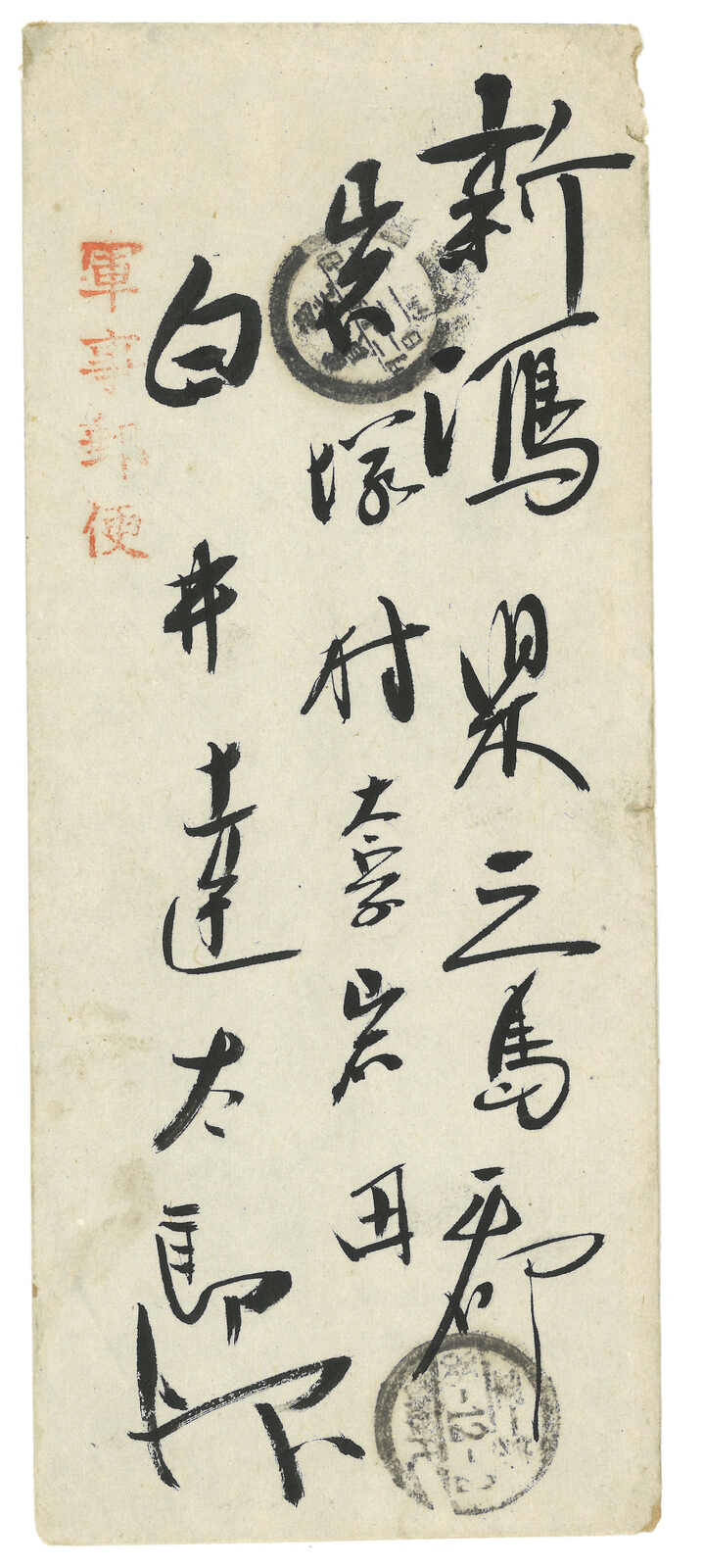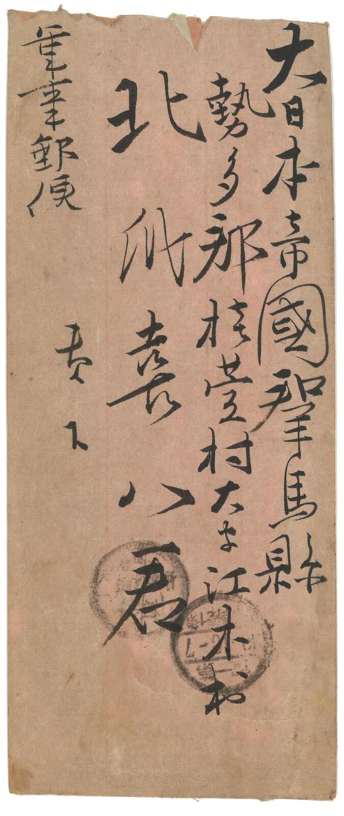 一件貼有厚紙大龍3分銀之封面,銷黑色漢文戳記。(Image 1) (Image 2)