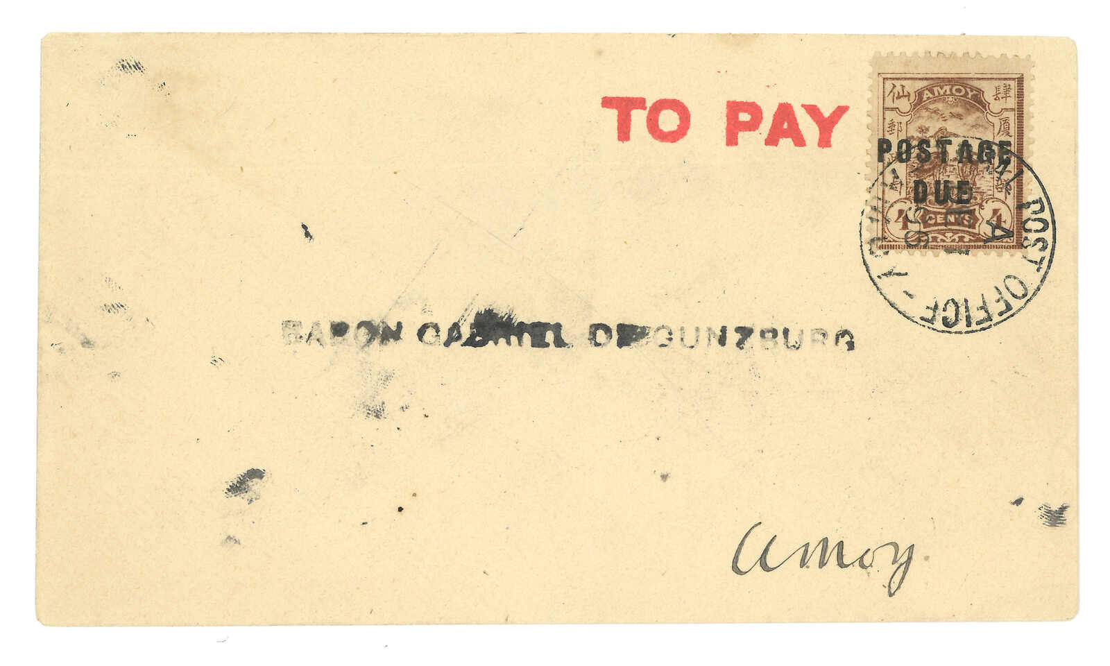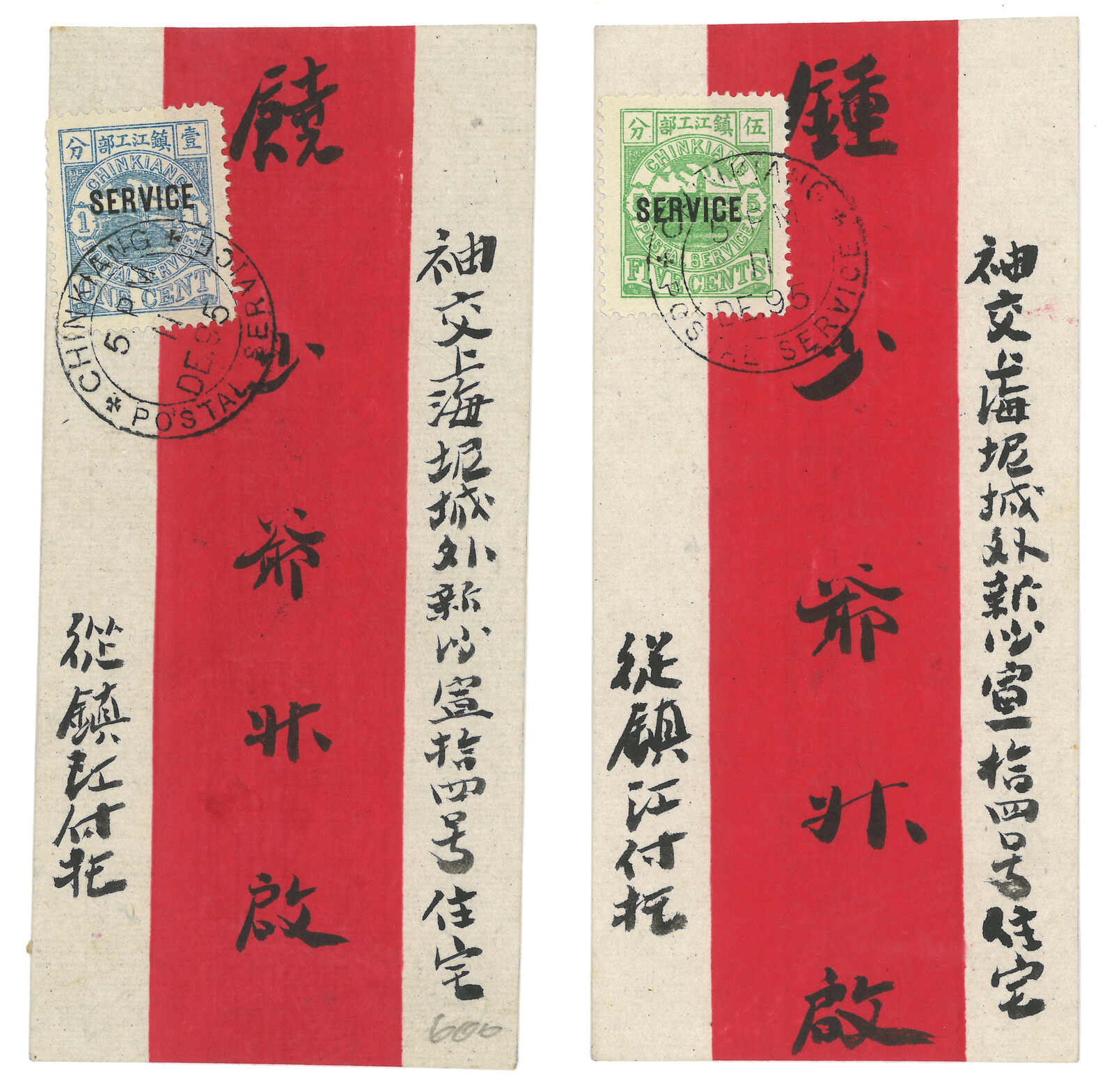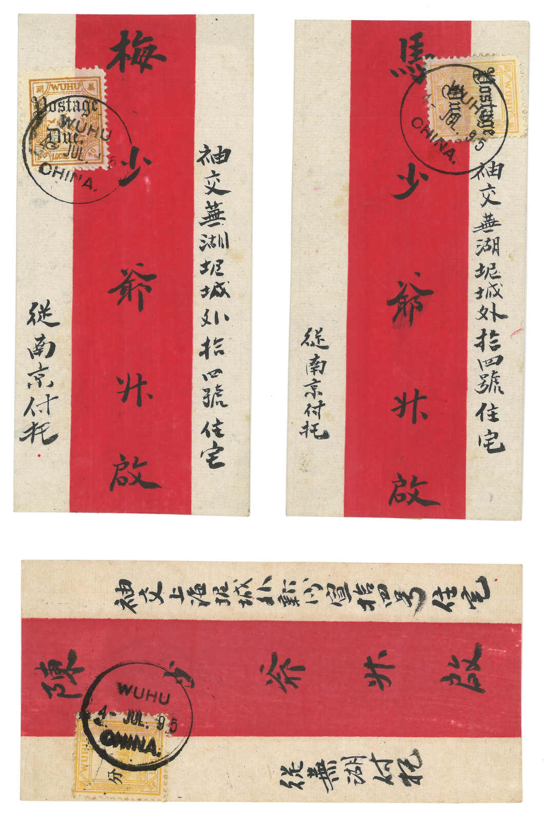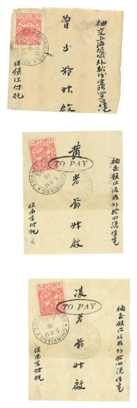 一組超過六十件廈門、煙台、鎮江、重慶、漢口、九江、南京及蕪湖書信館信封及報紙包裝紙,大多為Gabriel de Gunzburg書信。展示了不同貼票及郵戳,部分頗為珍罕,請預覽。(Image 1) (Image 2) (Image 3) (Image 4) (Image 5) (Image 6) (Image 7) (Image 8) (Image 9) (Image 10) (Image 11) (Image 12) (Image 13) (Image 14) (Image 15) (Image 16) (Image 17) (Image 18) (Image 19) (Image 20) (Image 21) (Image 22) (Image 23) (Image 24) (Image 25) (Image 26) (Image 27) (Image 28) (Image 29) (Image 30) (Image 31) (Image 32) (Image 33) (Image 34) (Image 35) (Image 36) (Image 37) (Image 38) (Image 39) (Image 40) (Image 41) (Image 42) (Image 43) (Image 44) (Image 45) (Image 46) (Image 47) (Image 48) (Image 49) (Image 50)